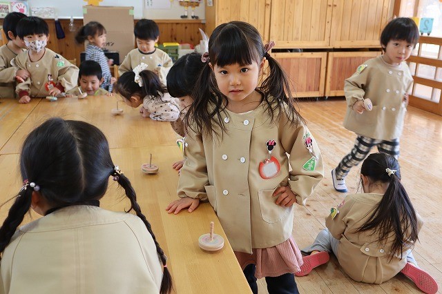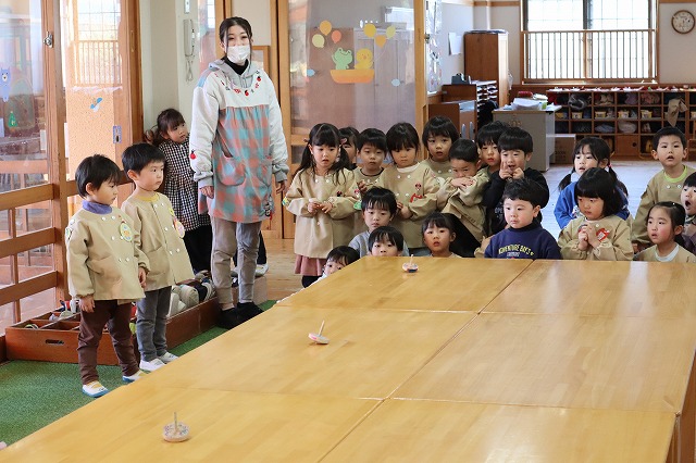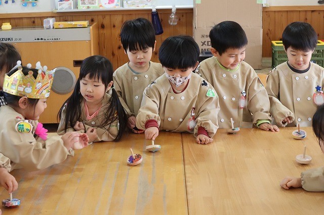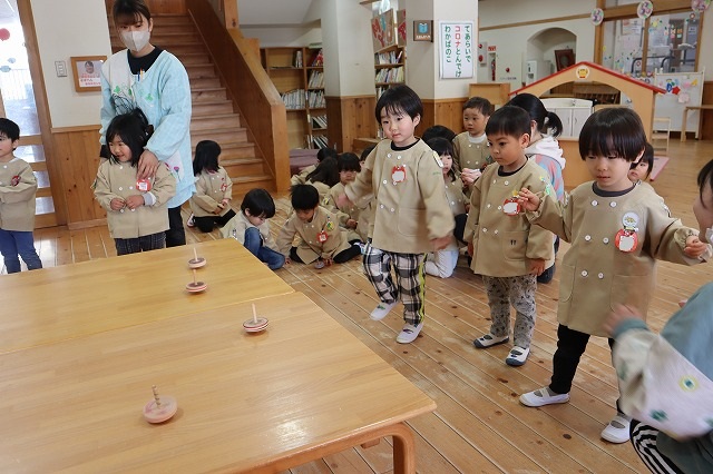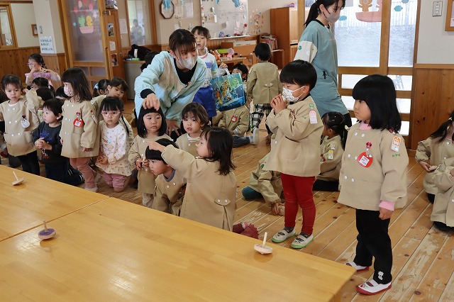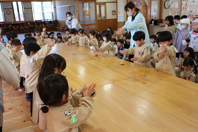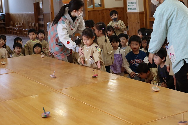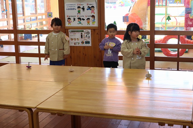 先生たちが思っていた以上に年少のみんながかっこよくこまを回せて驚きました。