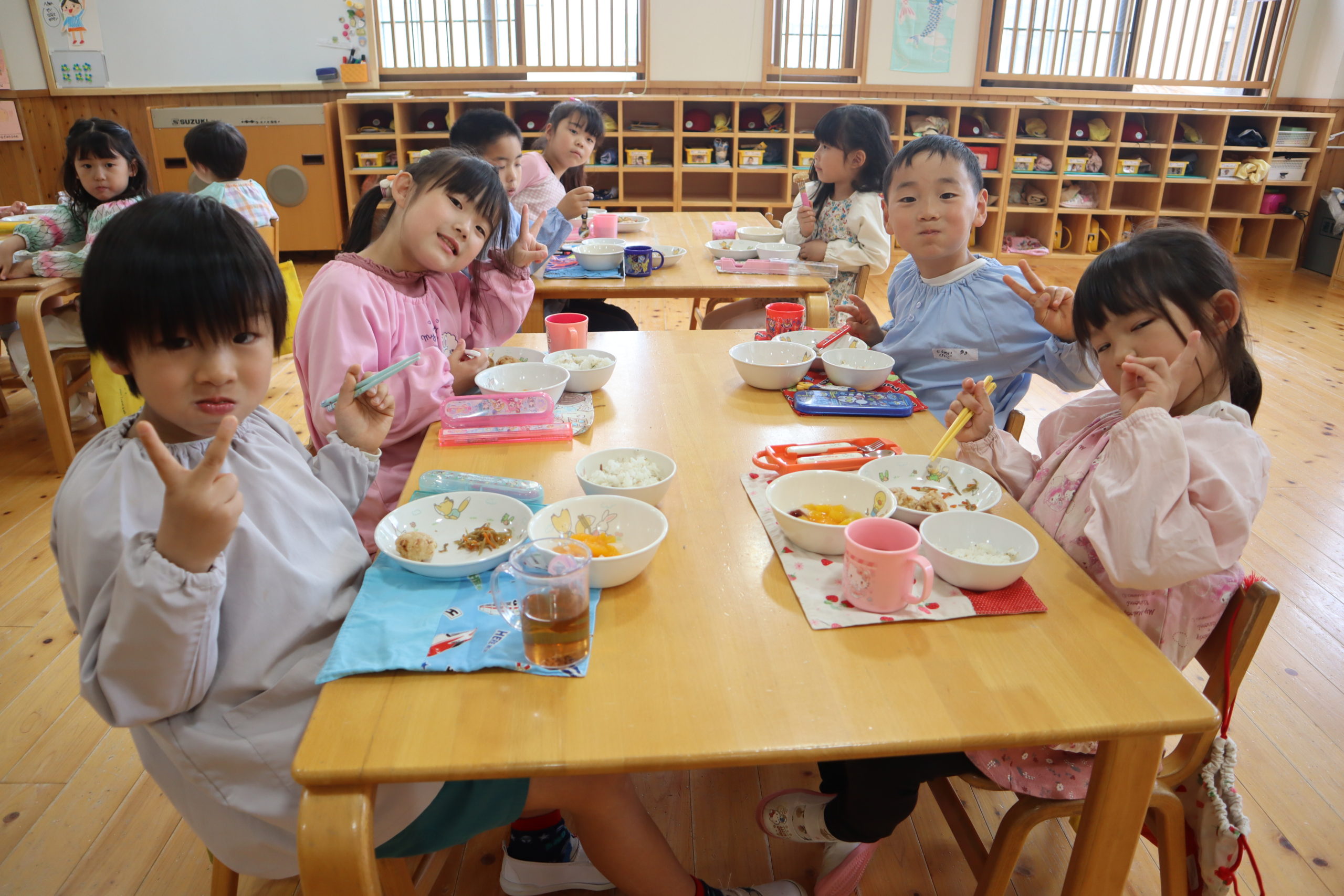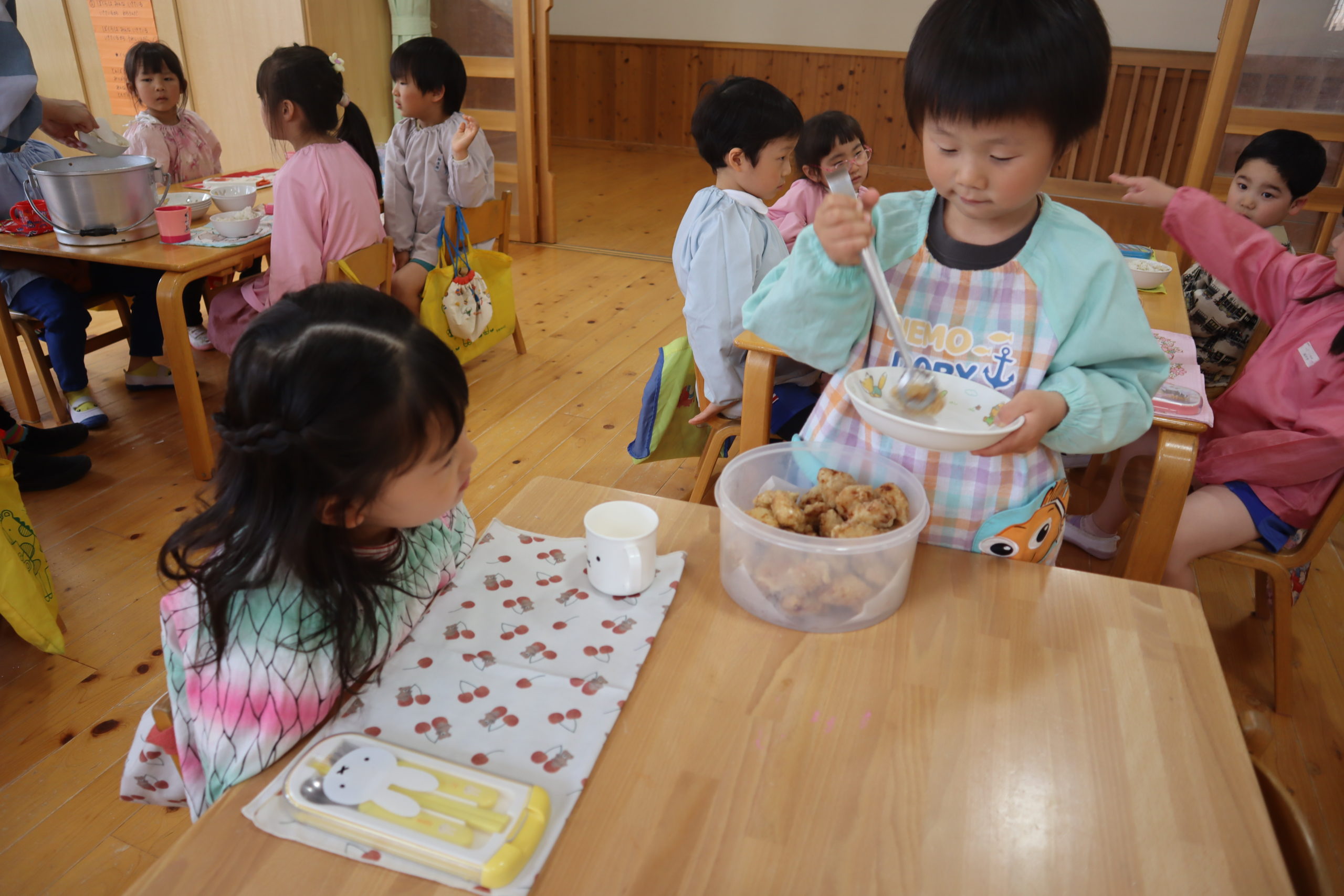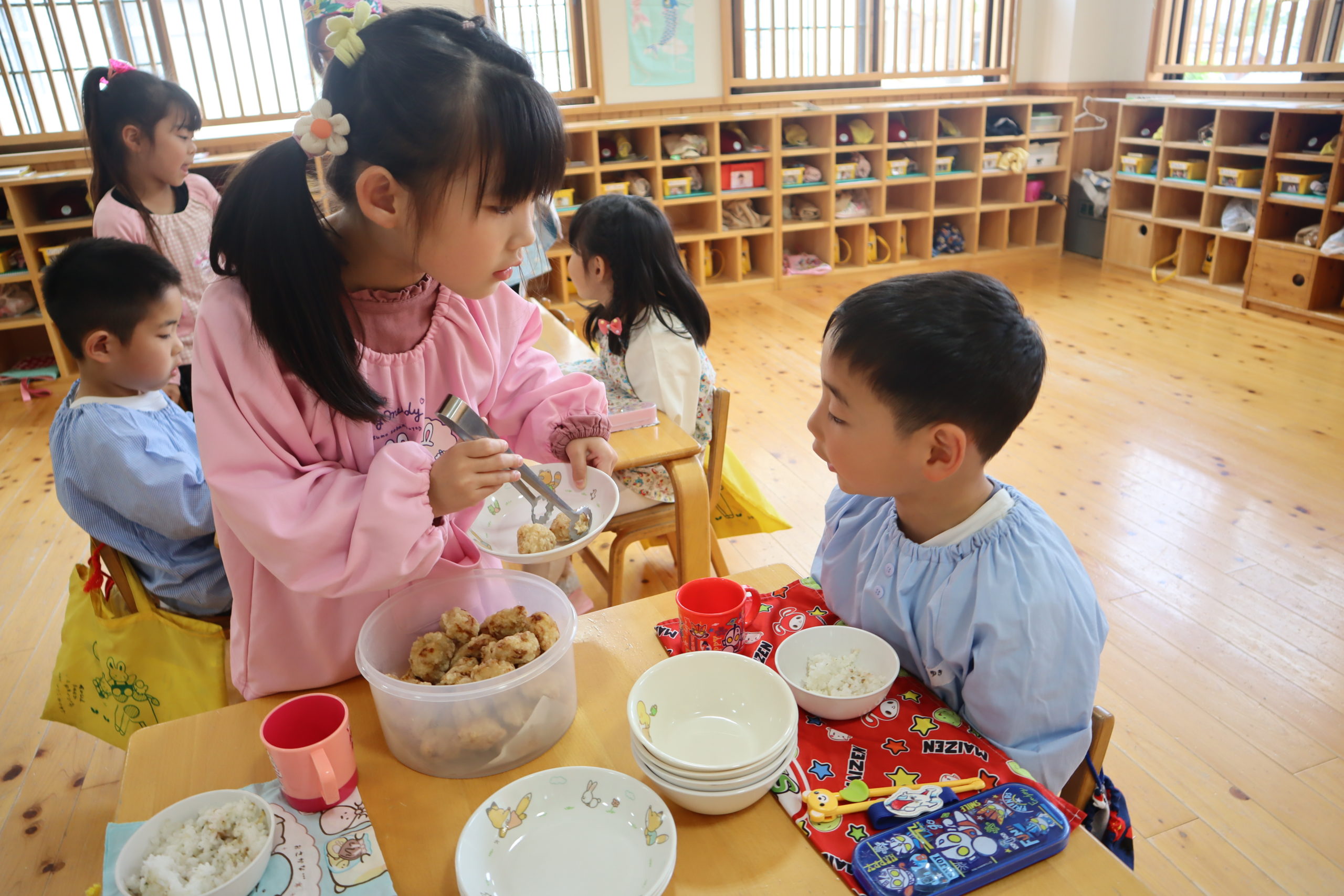 新しいクラスになって第1回目のランチタイムの様子です。