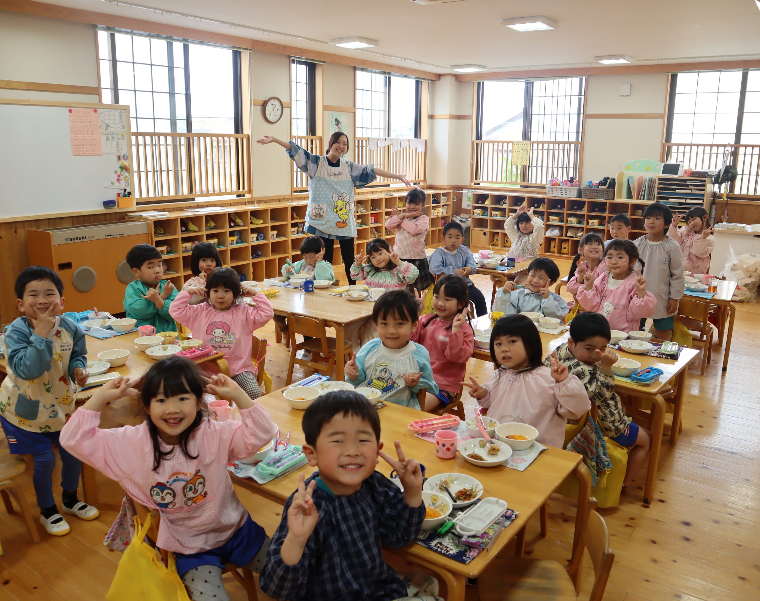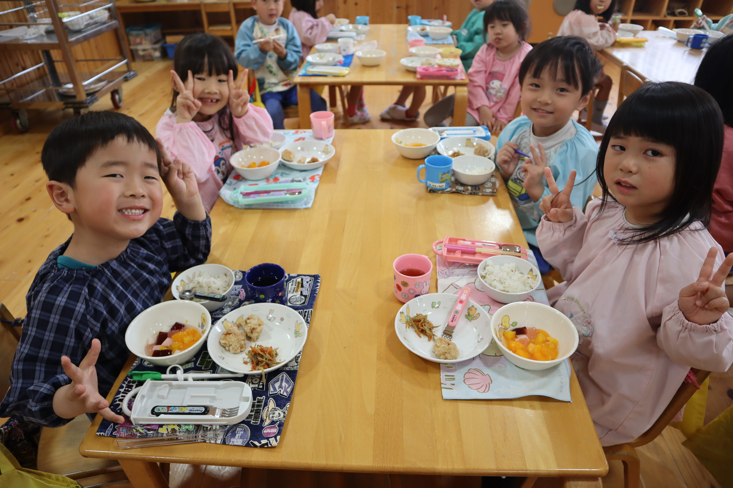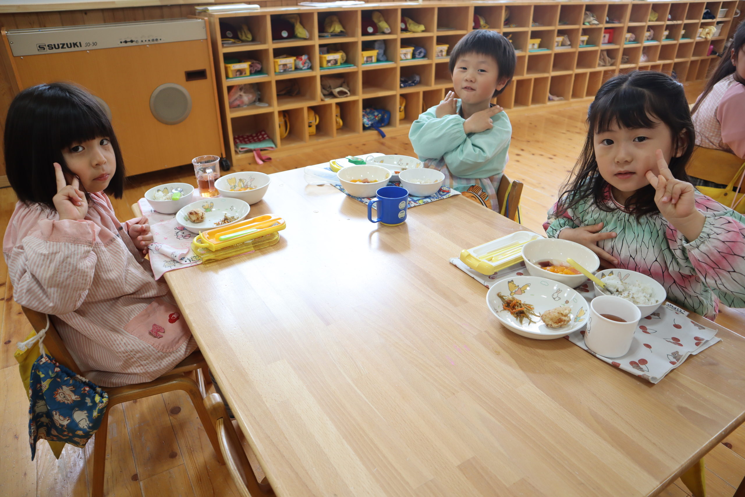 新しいクラスになって第1回目のランチタイムの様子です。
