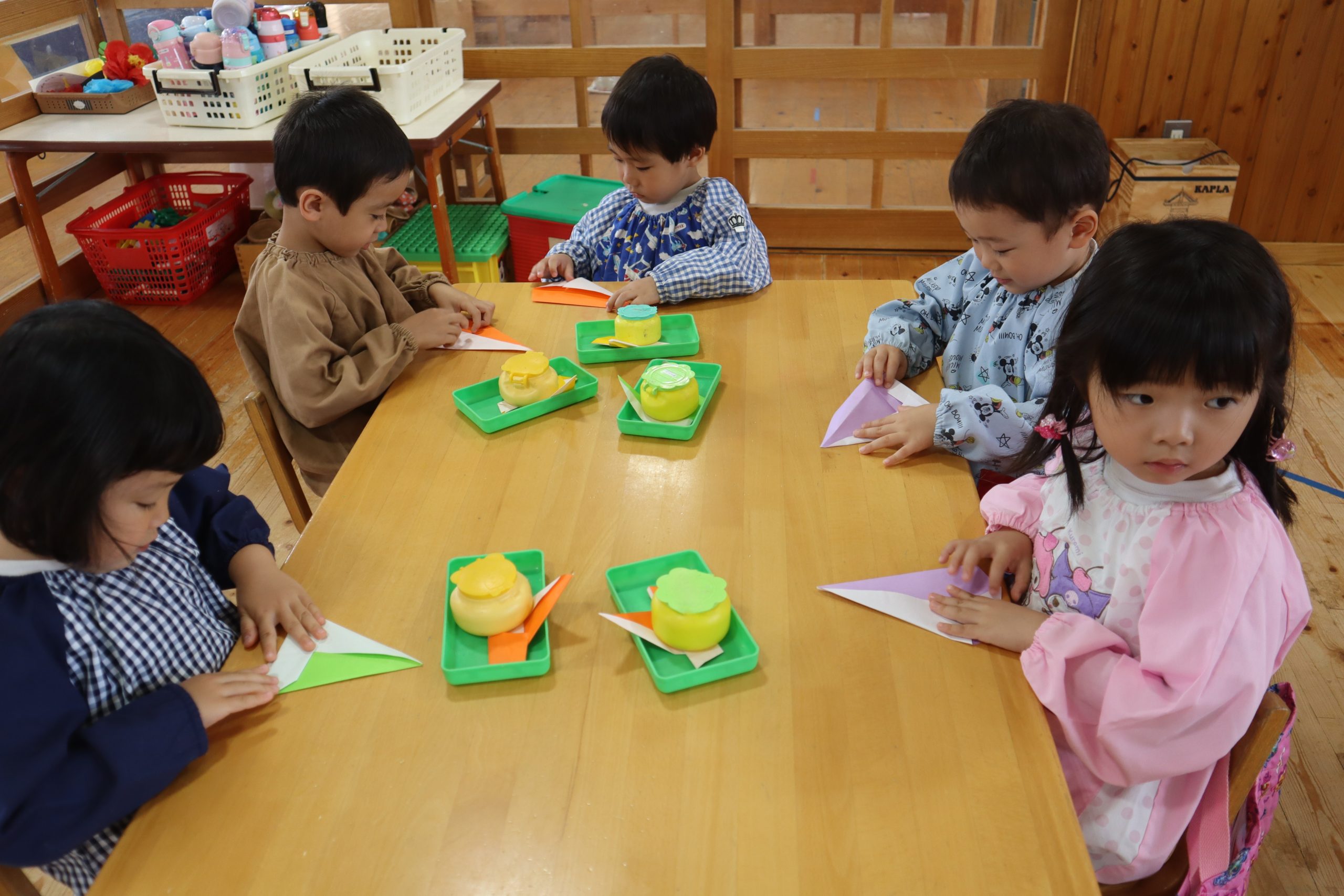 午前中はハロークリス♪を行い、終わってからは折り紙あそびをしました。