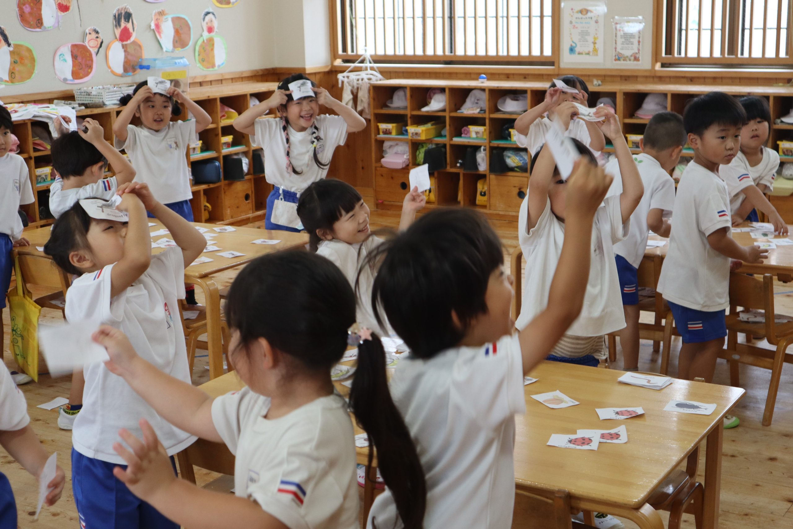 クリスが発音した英語と同じ絵のカードを見つけると、「イエーイ!!」「とれたー」と大喜び!!