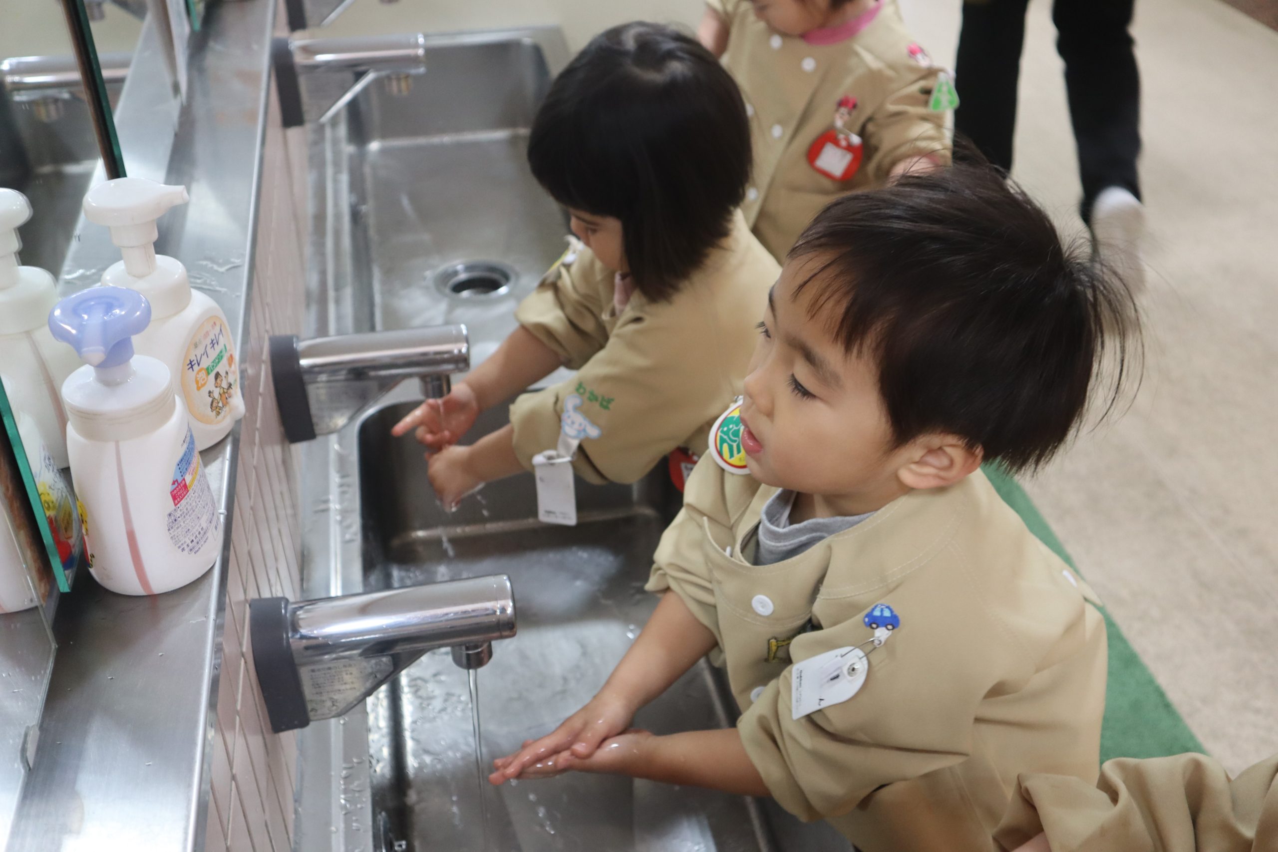 ちゅうりっぷぐみさんもトイレに行き、手を洗い、ハンカチで手を拭くという事も自分でできるようになってきました。