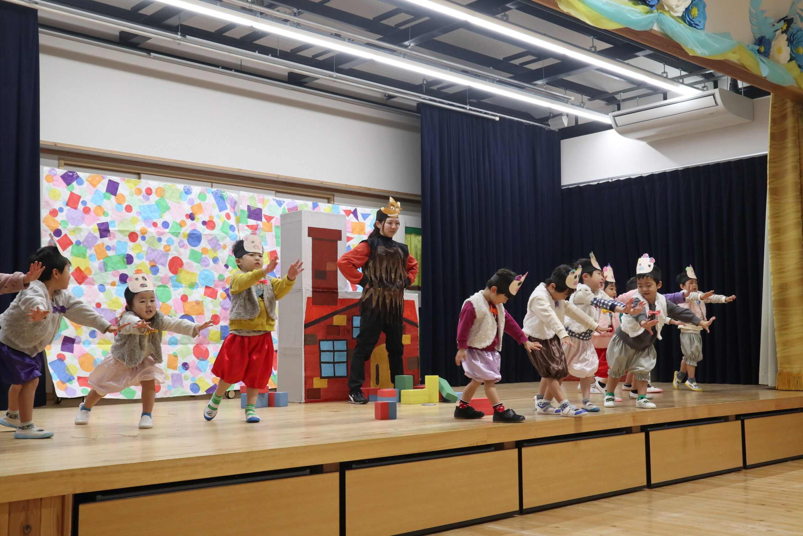 スタンバイ中はリラックスモードのお友だちでしたが、幕が開くと一生懸命踊り、とても素敵な劇あそびを披露してくれました。