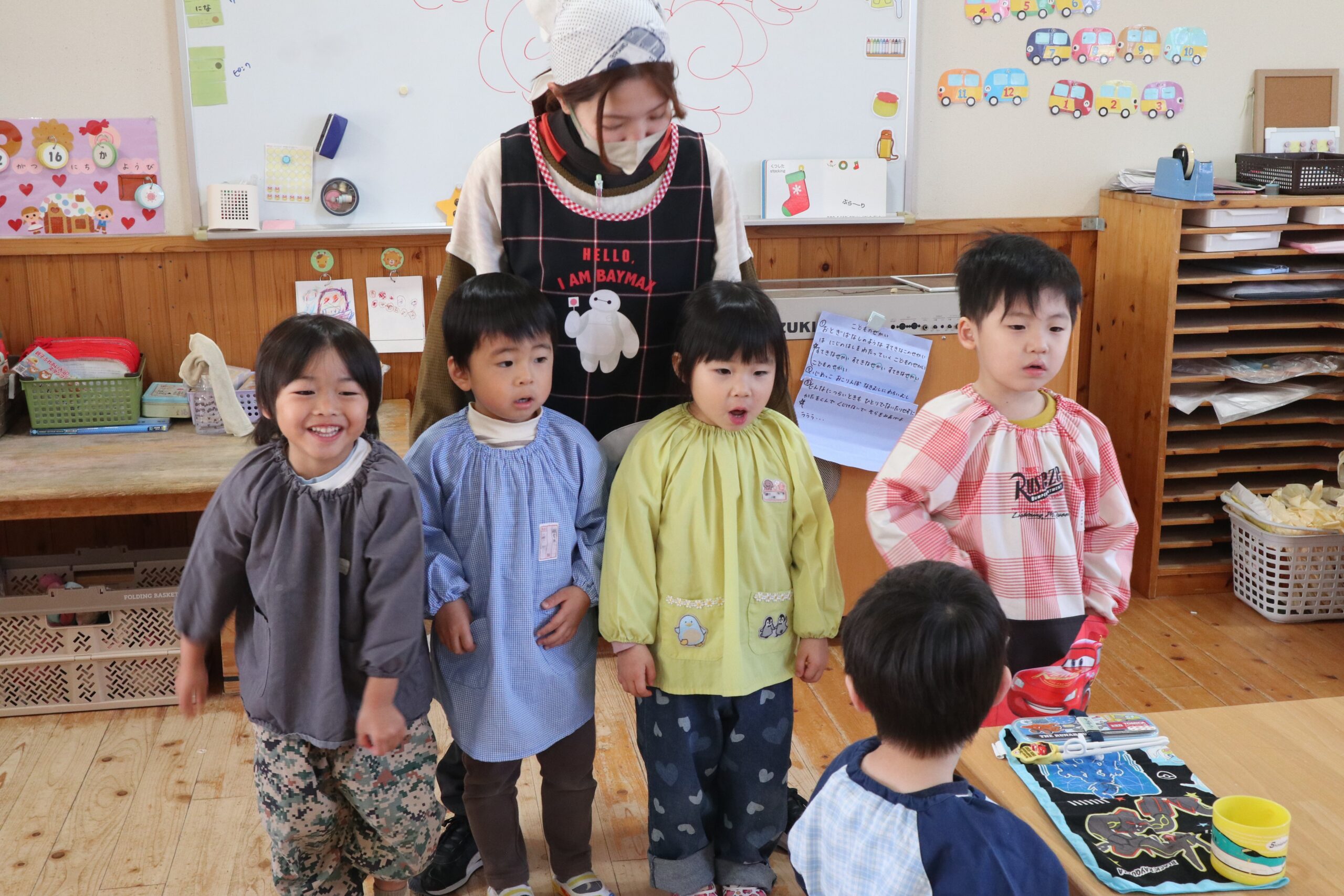 少し緊張気味のお当番さんたちでしたが、ひな先生と一緒にご挨拶をしてくれました。