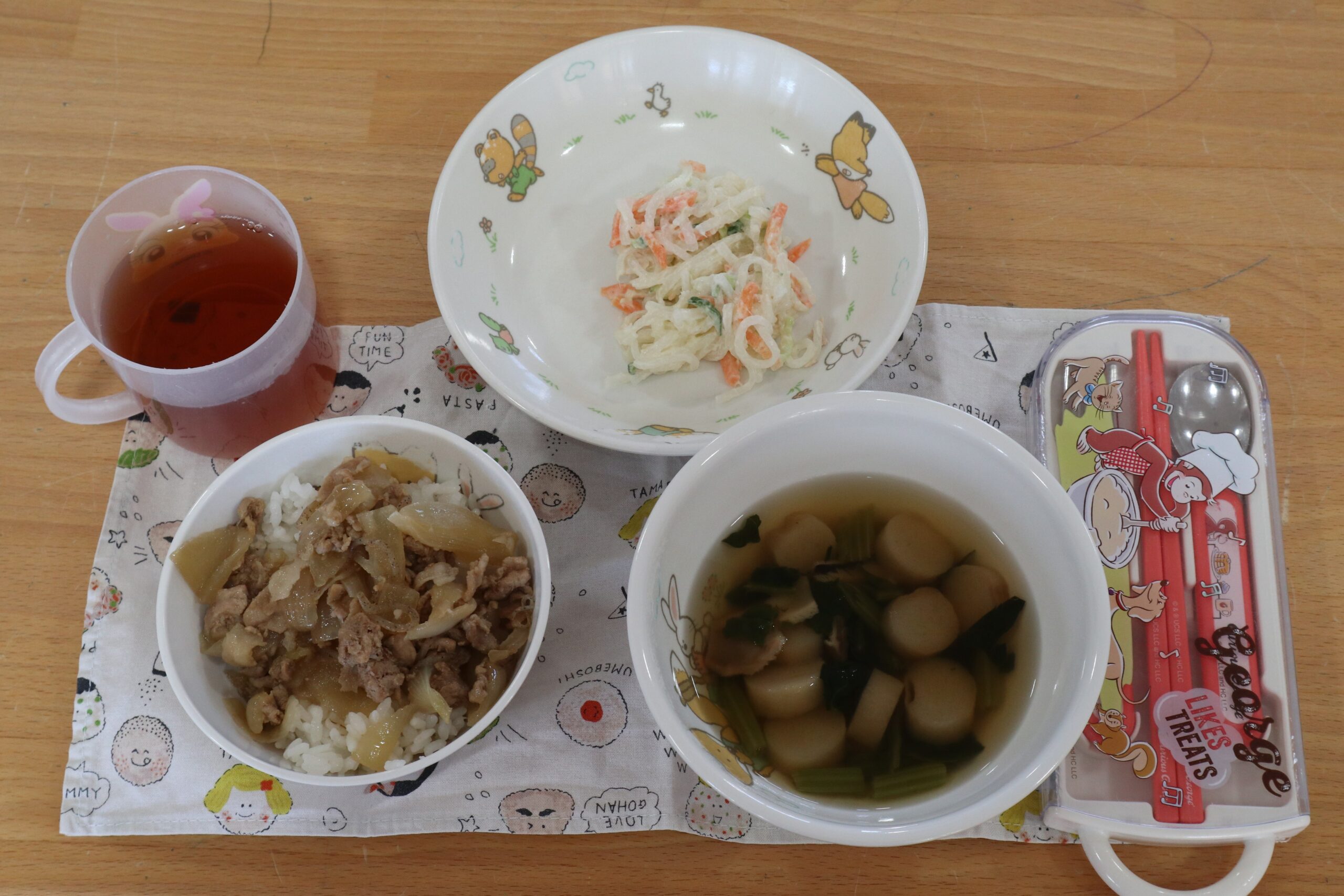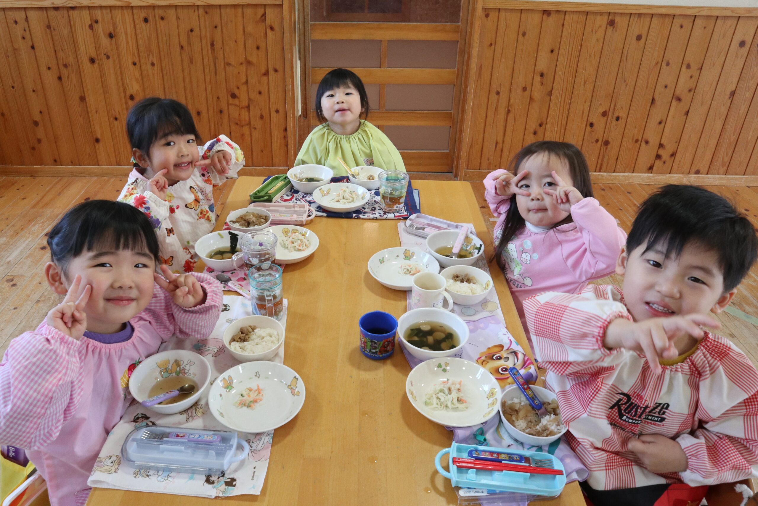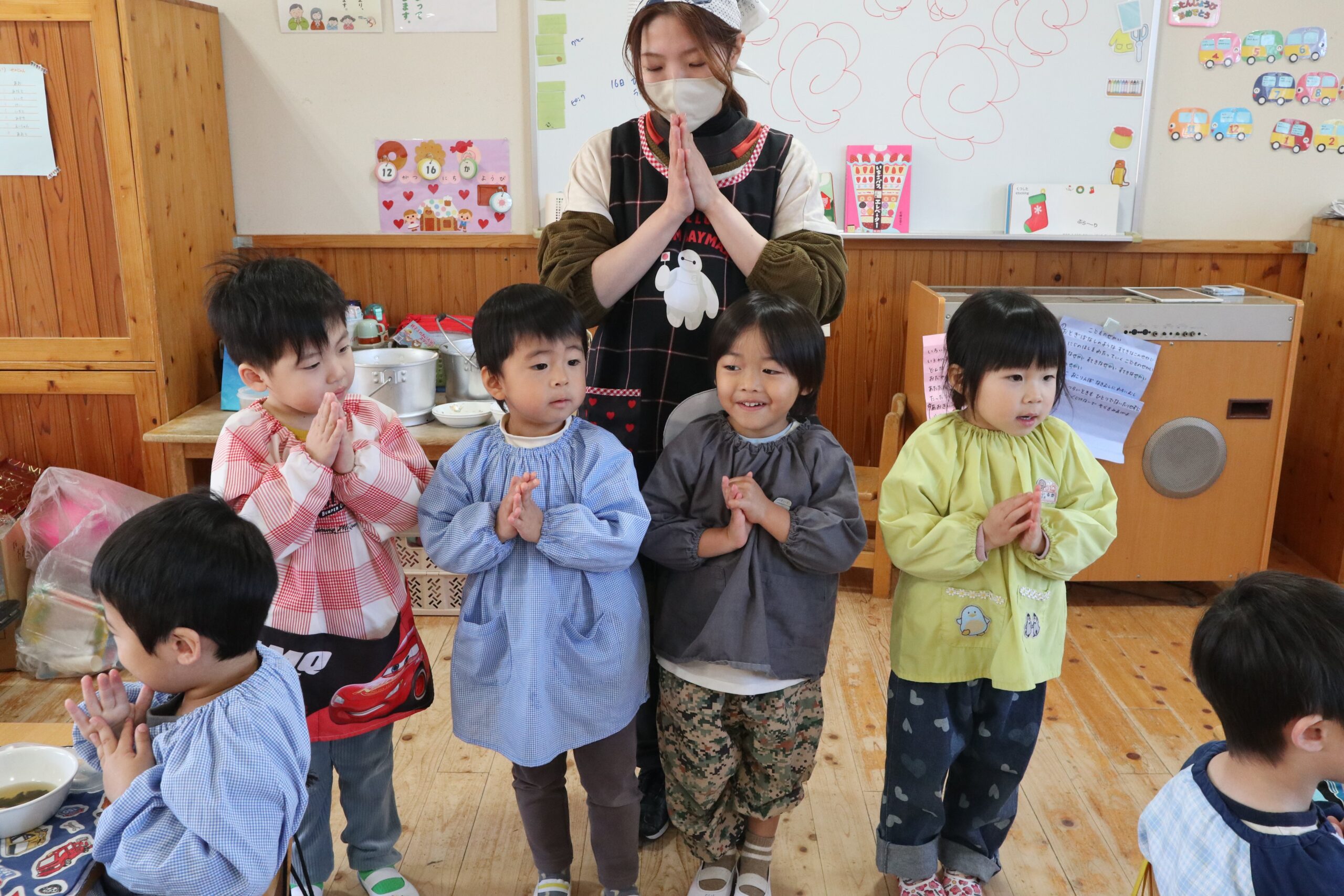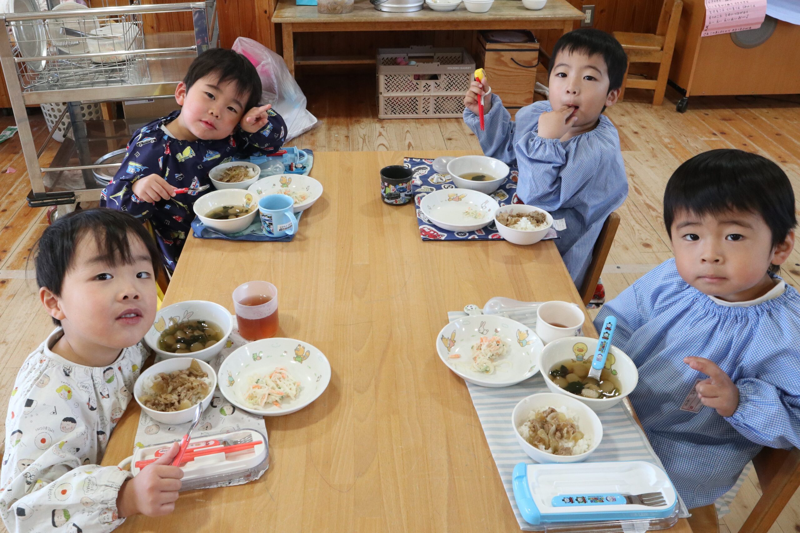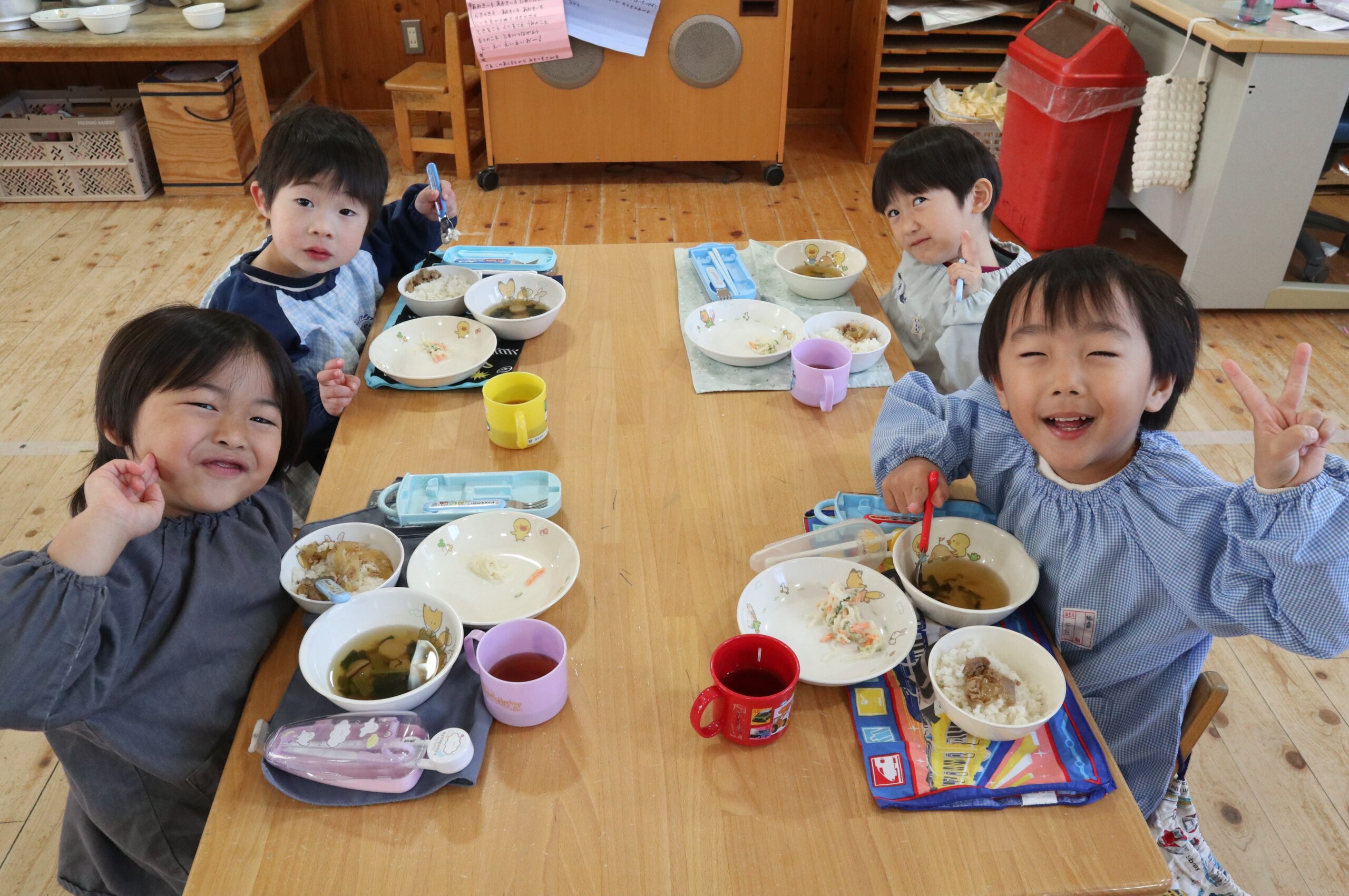 給食が揃うと、お当番さんが前に並んで「いただきます」のご挨拶をしてくれました。