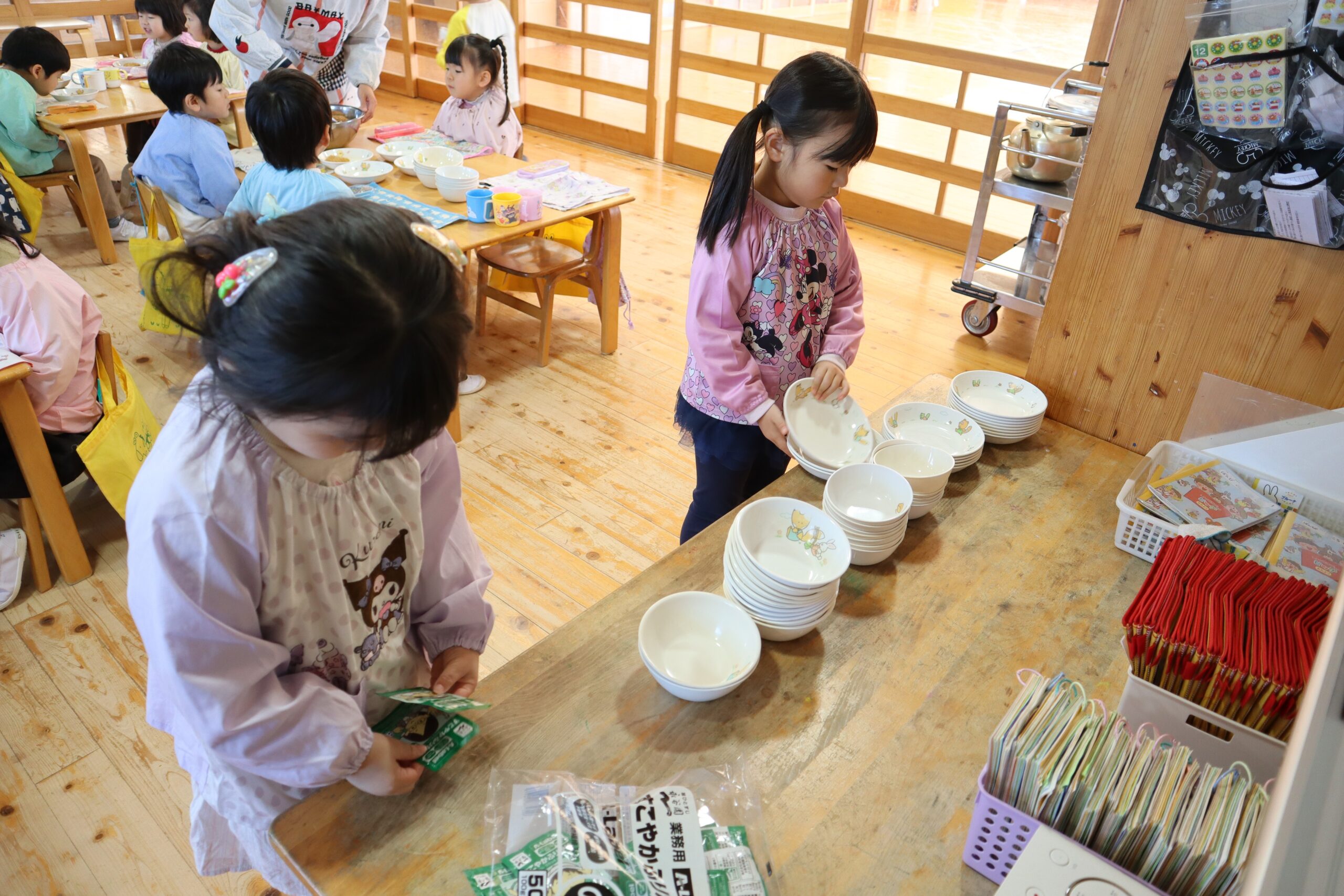 食器やふりかけをグループのお友だちの人数を確認して配ってくれました。