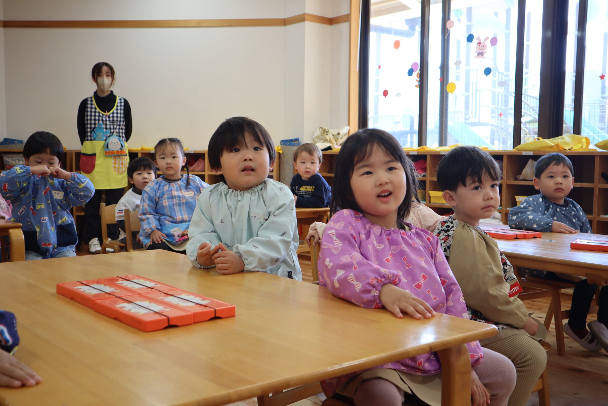 静かにお話を聞く姿は年少組さんのようで、とっても素敵なあかぐみのお友達でした!
