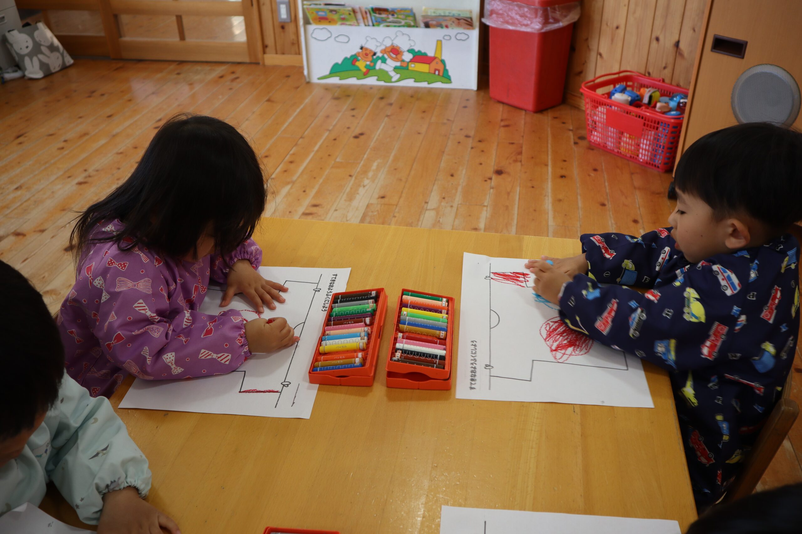 「赤色にする!」などと思いおもいに描き始めました。