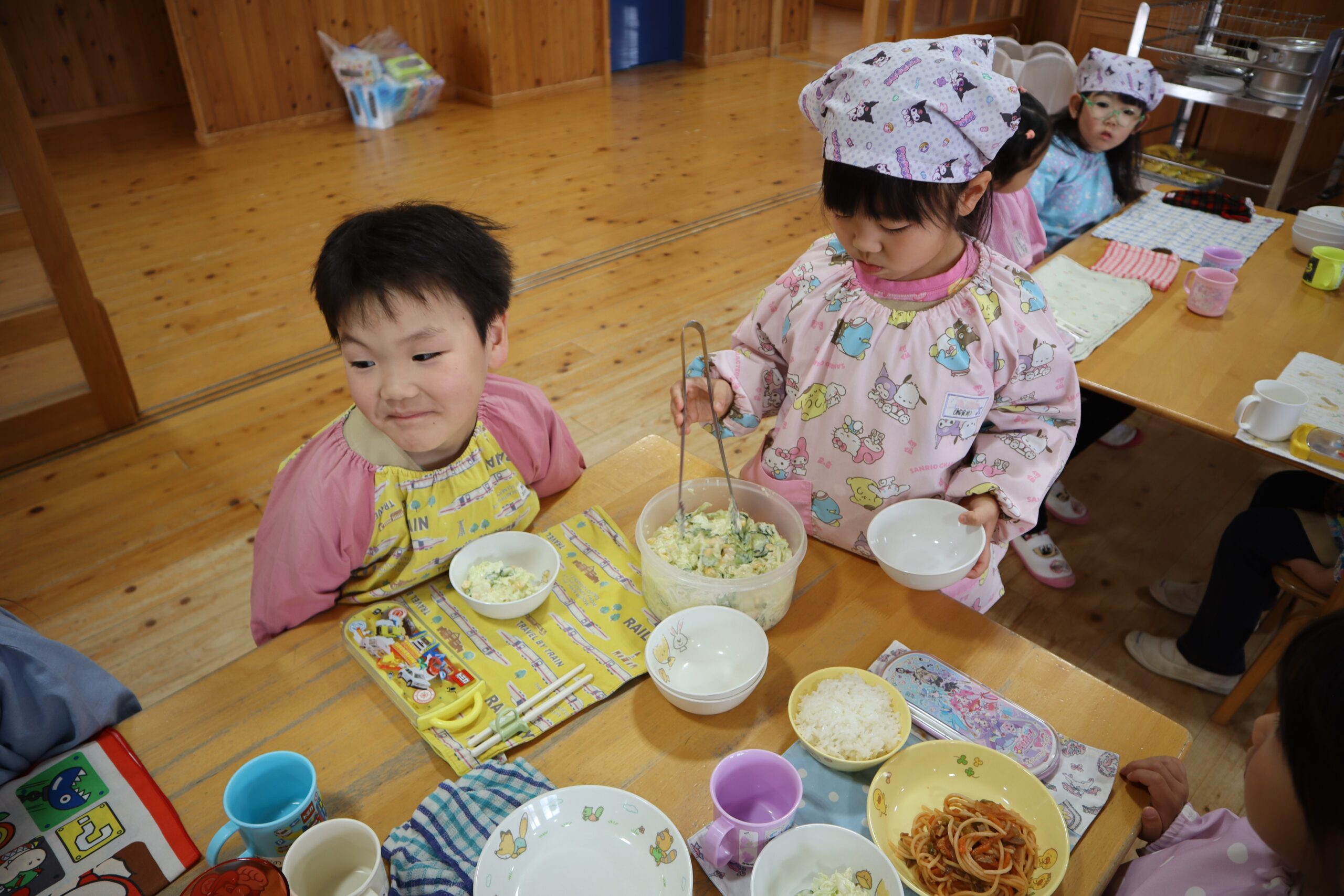 年長組ではリーダーさんが配膳をしてくれます。