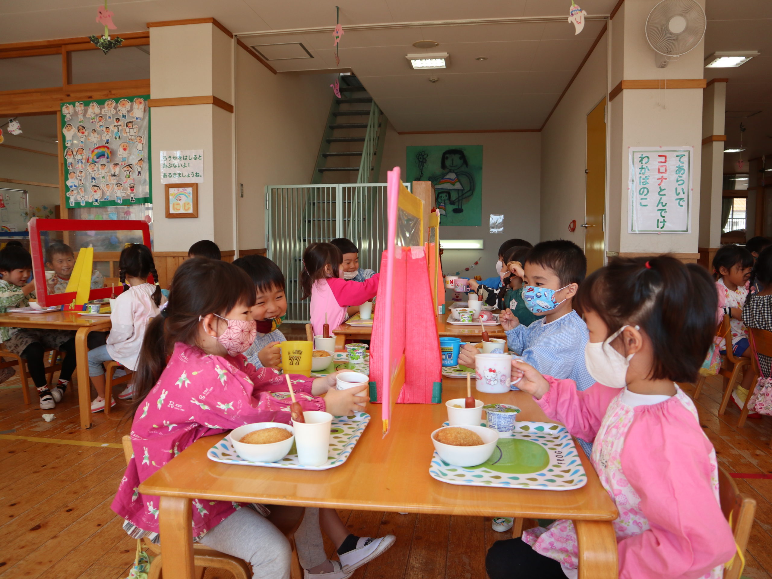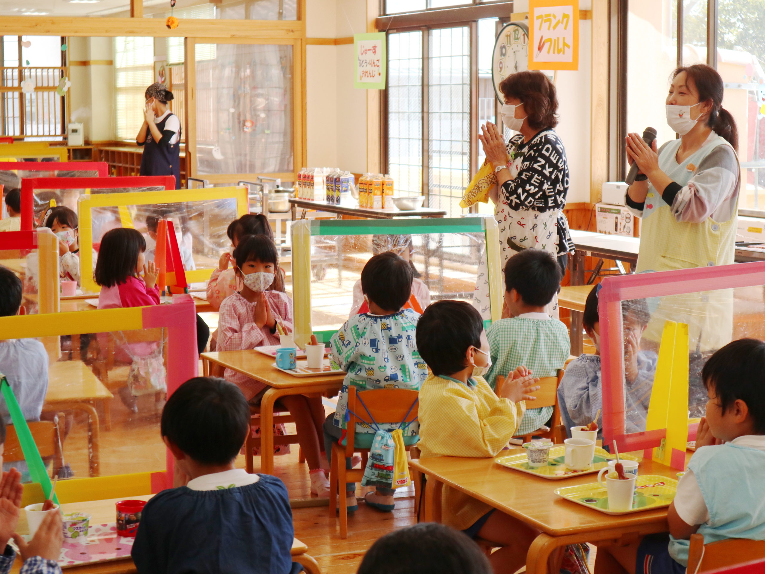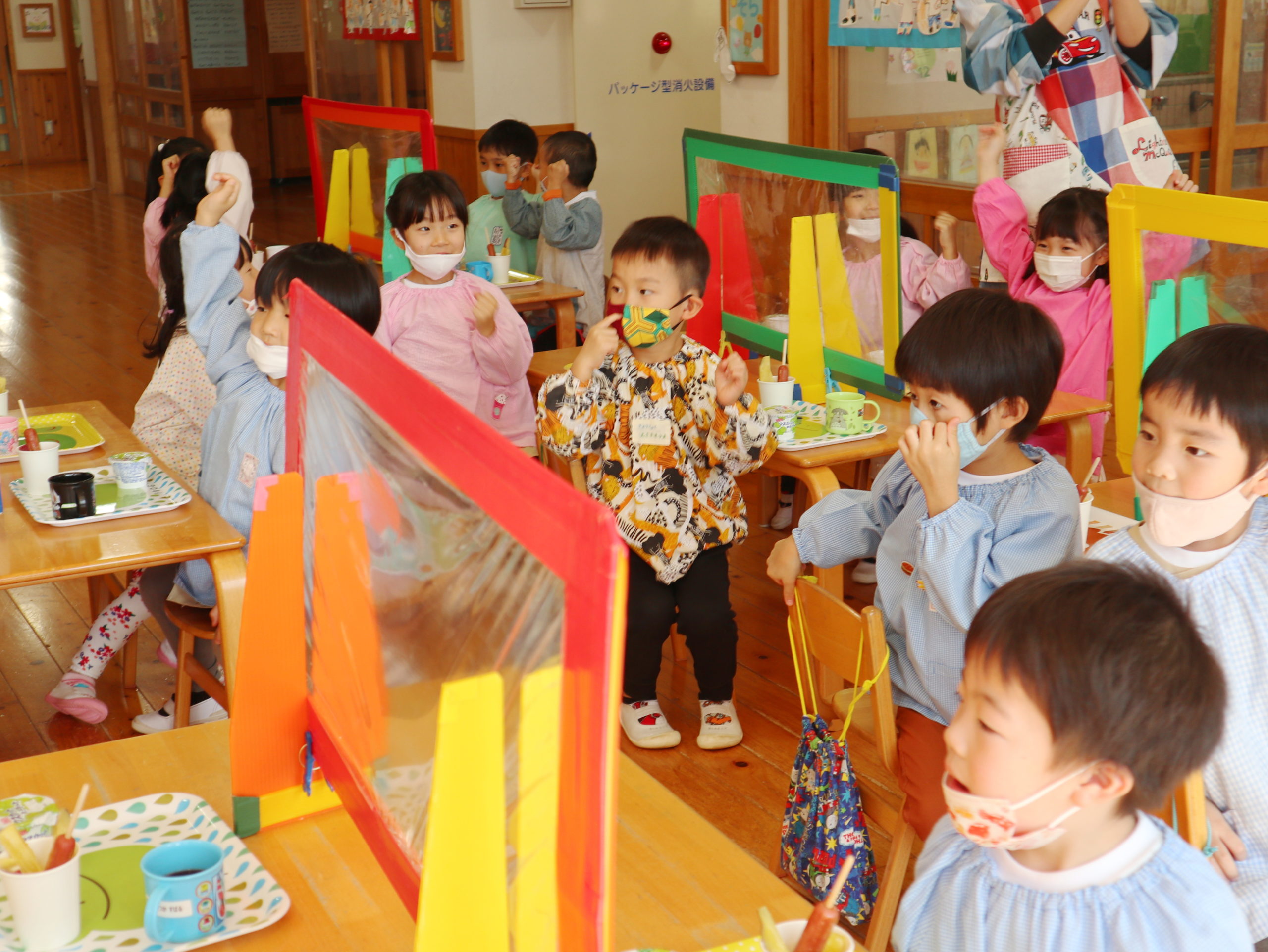 ジュースで「かんぱーい!」パーテーション越しでしたが、特別な感じがして楽しかったね。