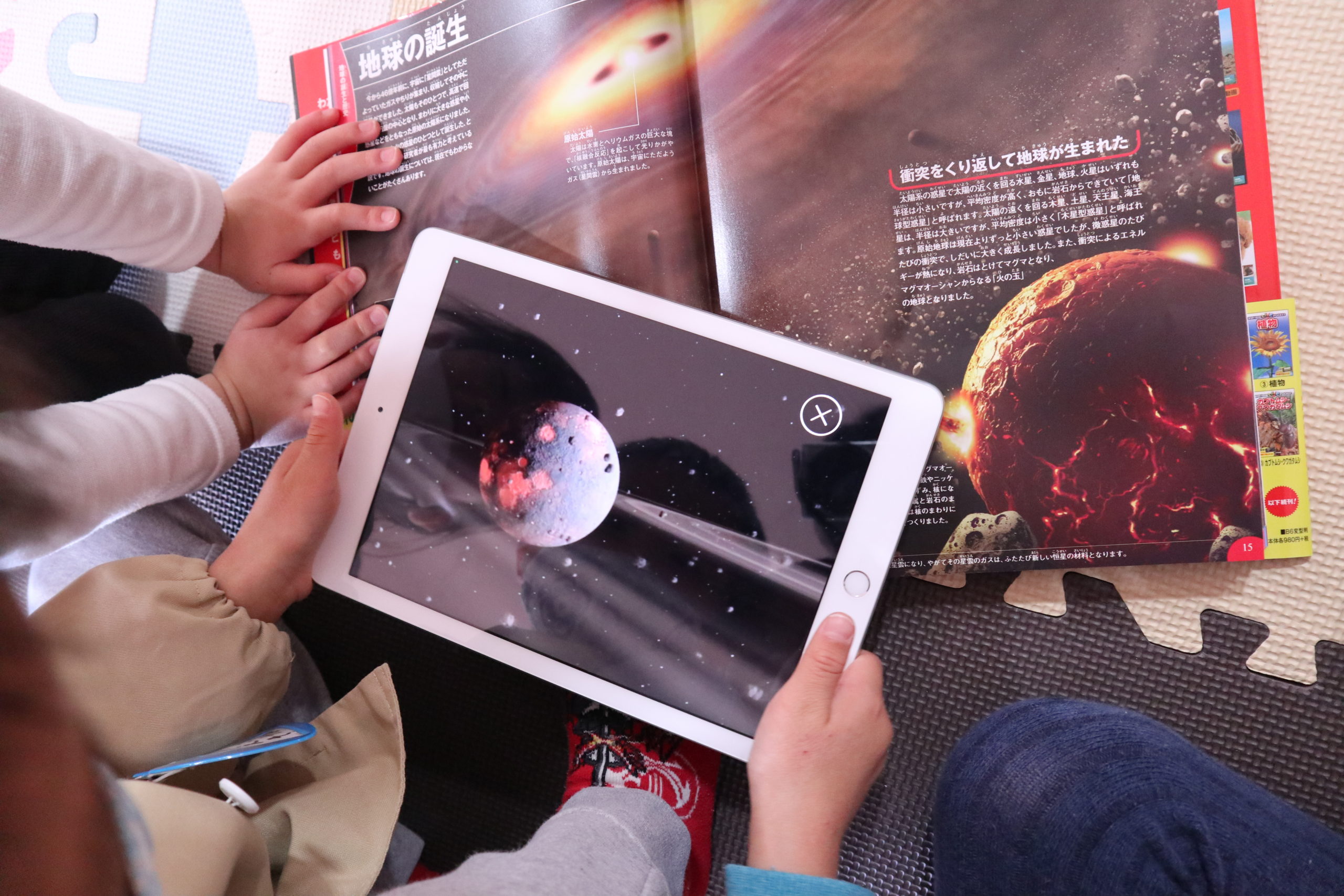 隕石が何度もぶつかって地球ができたのだって。図鑑を見ているだけでも、すごいな・なるほどと感じることがいっぱいなのに、今まで知らなかった世界が動画でより鮮明に映し出されます。