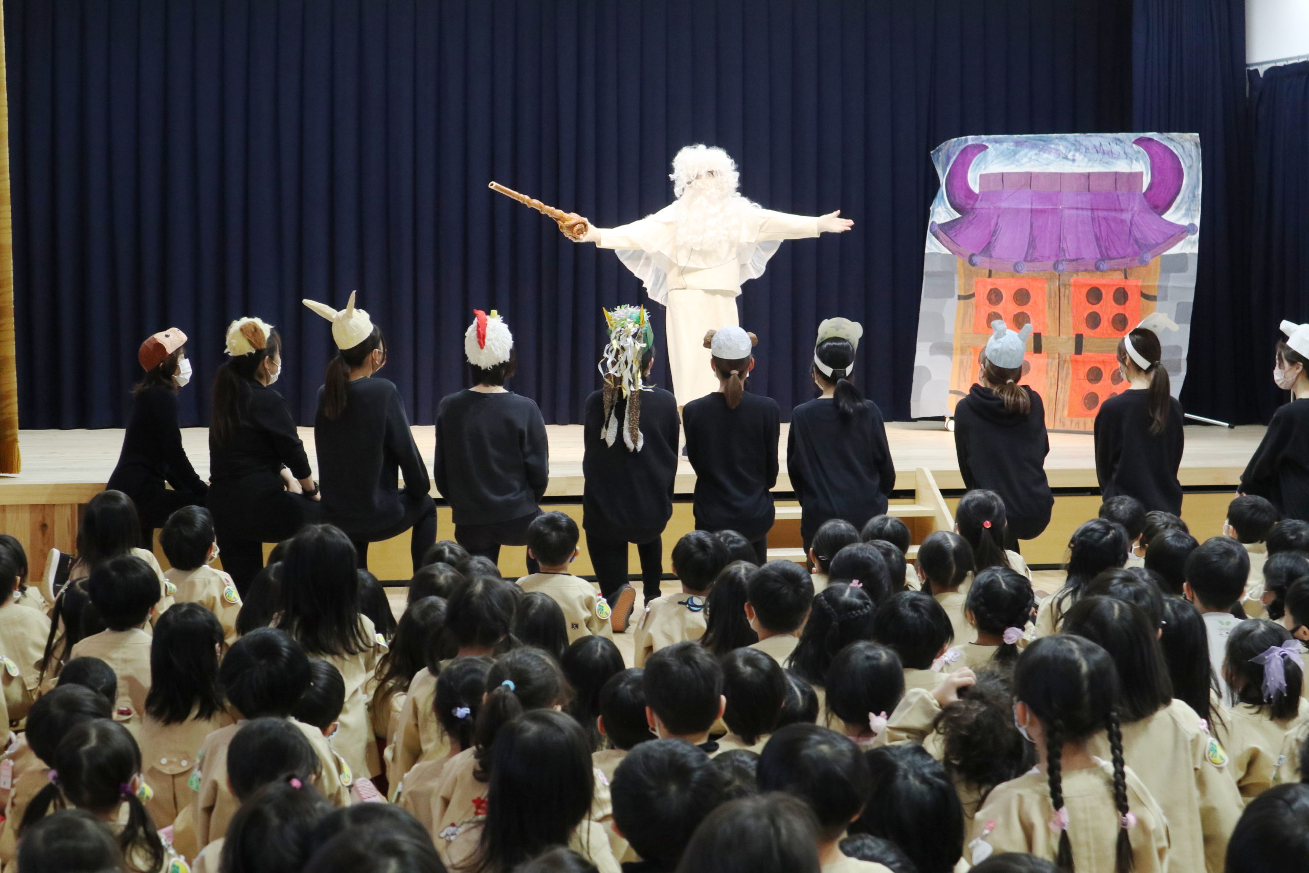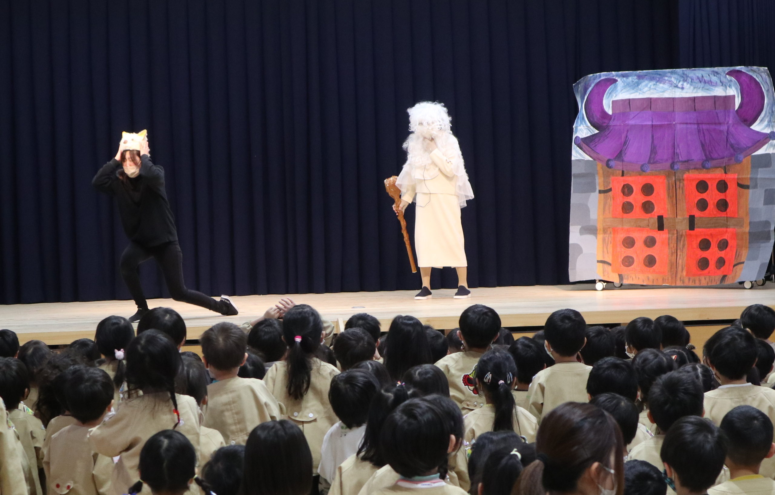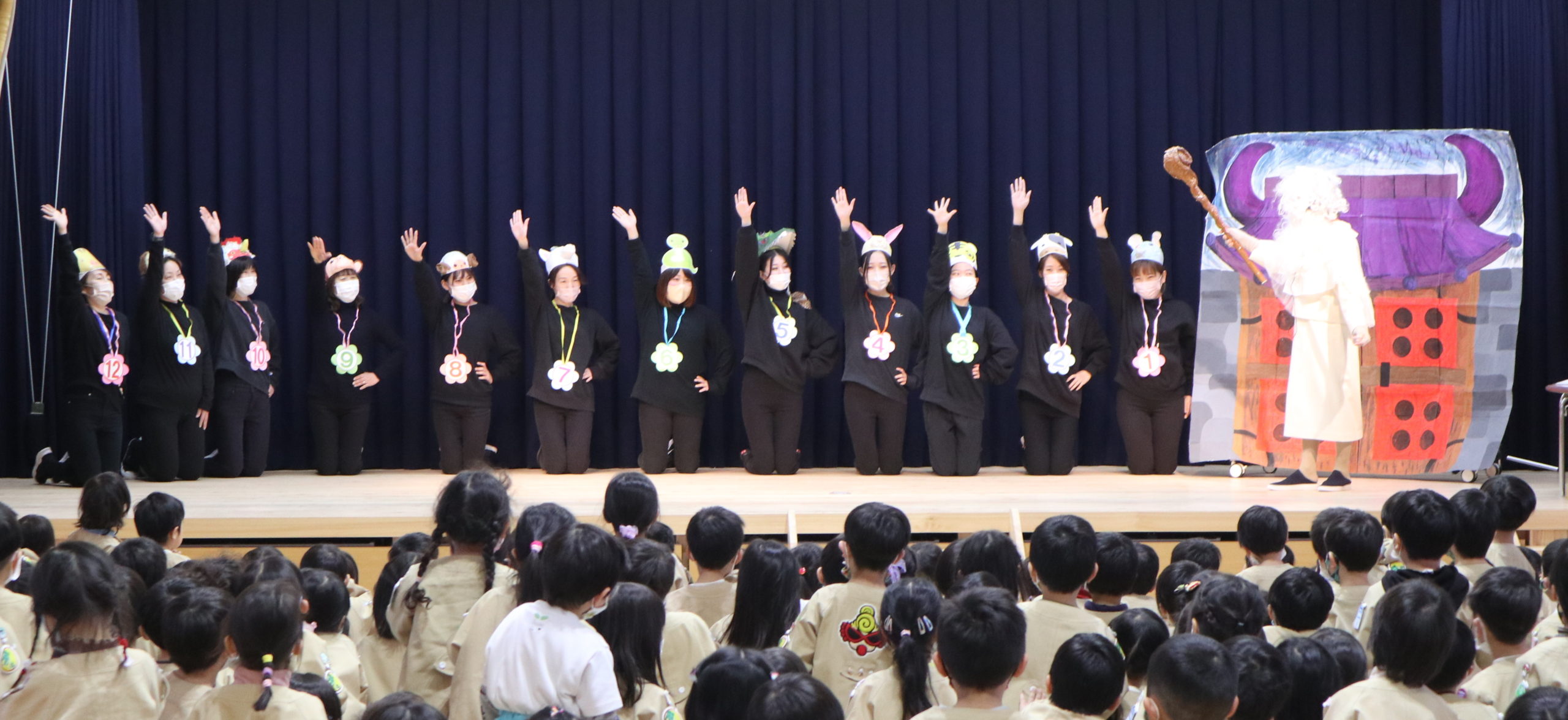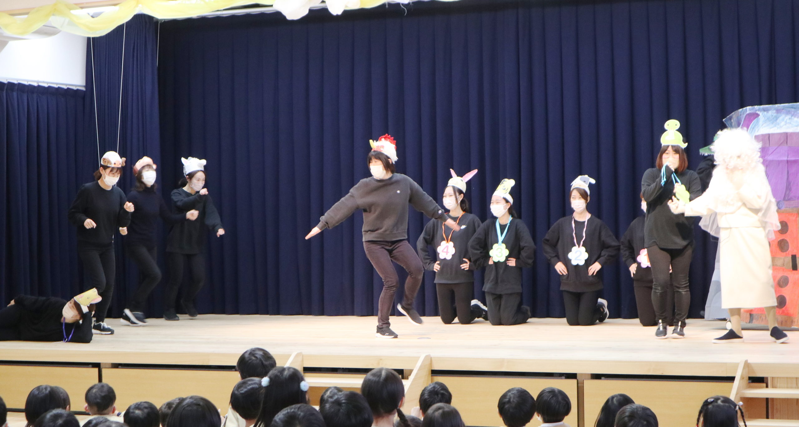 先生たちによる『十二支の始まり』の劇をみんなで楽しみました。