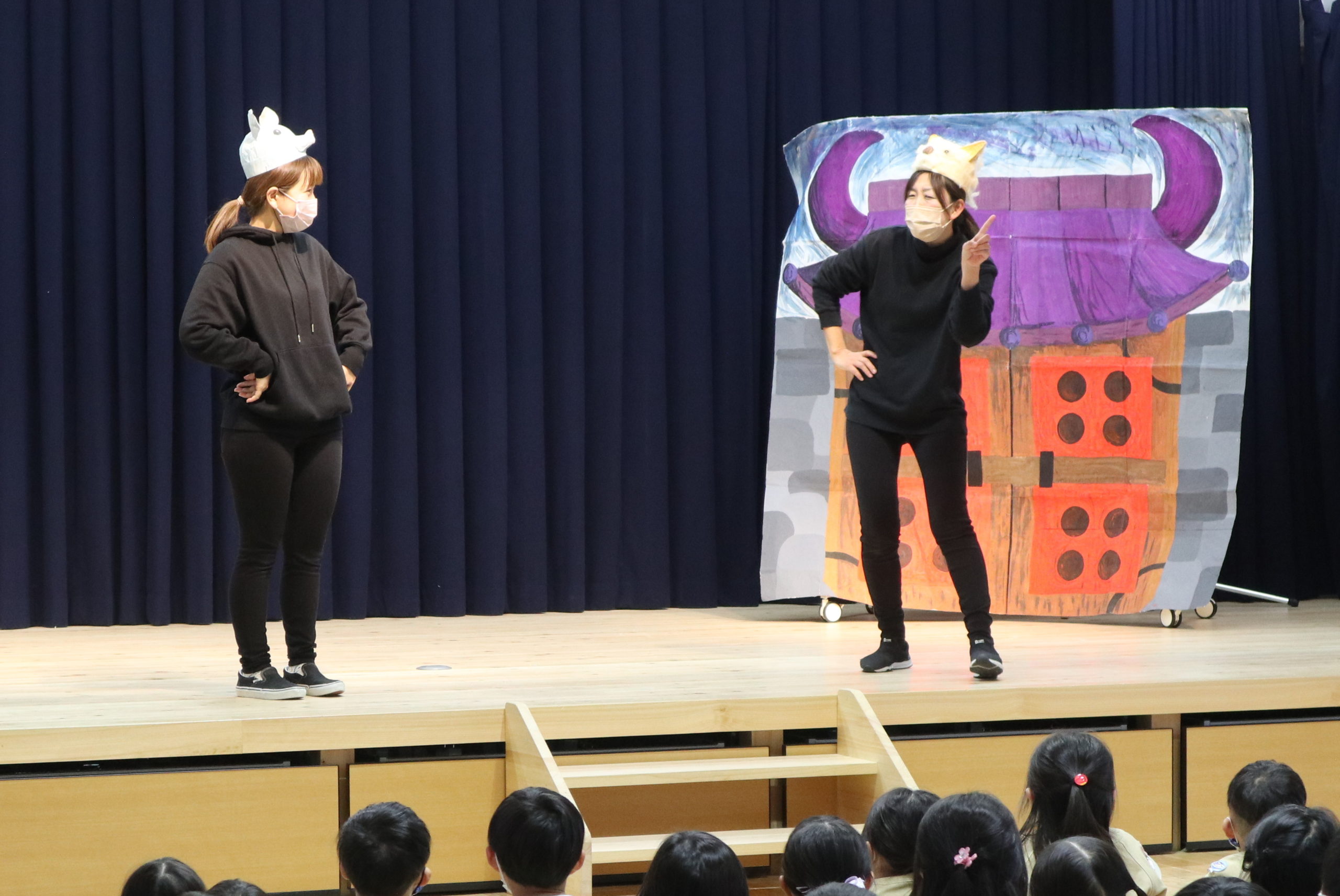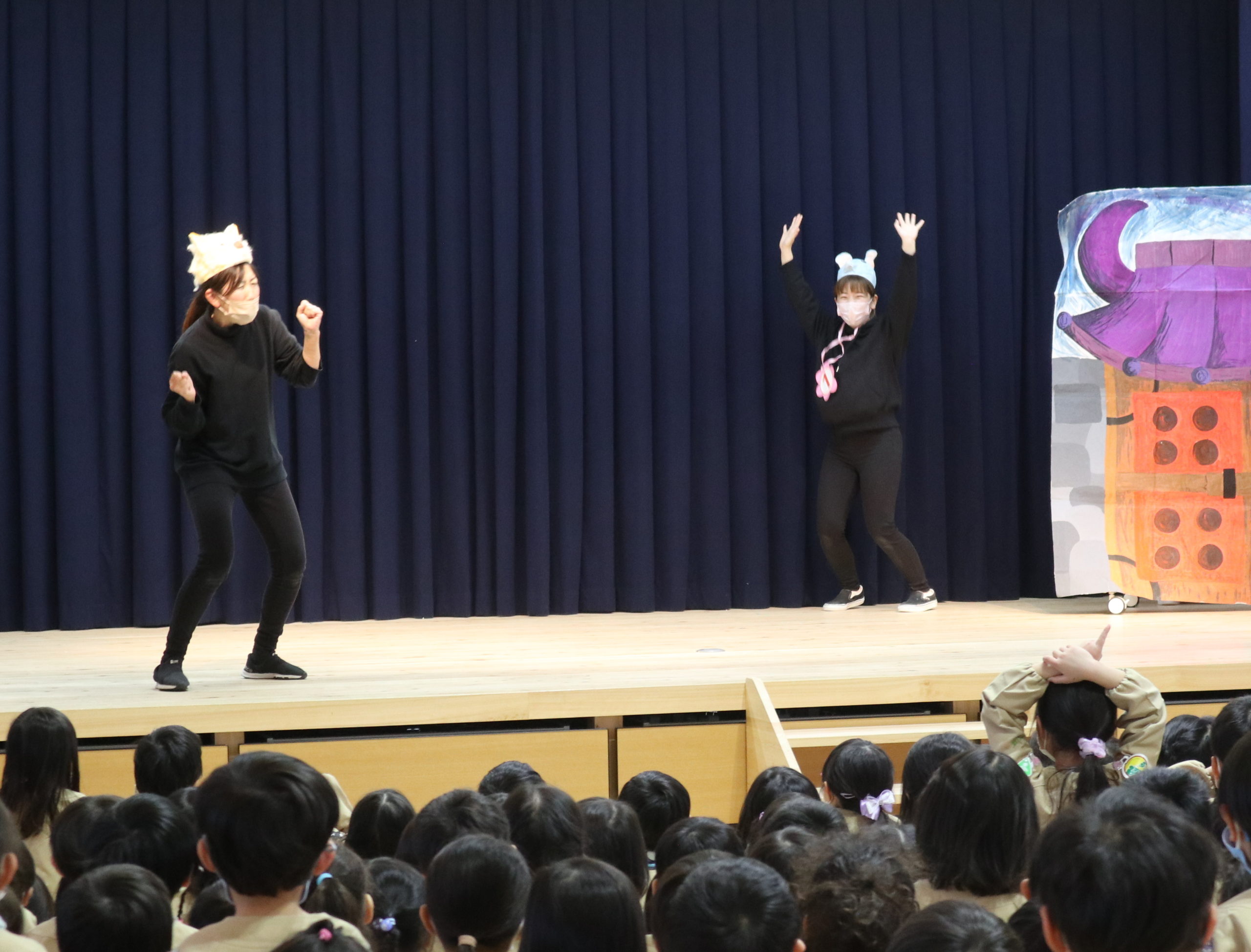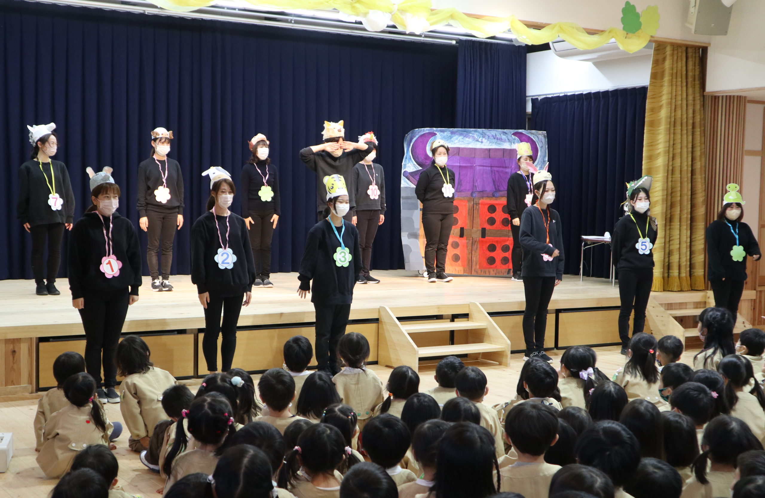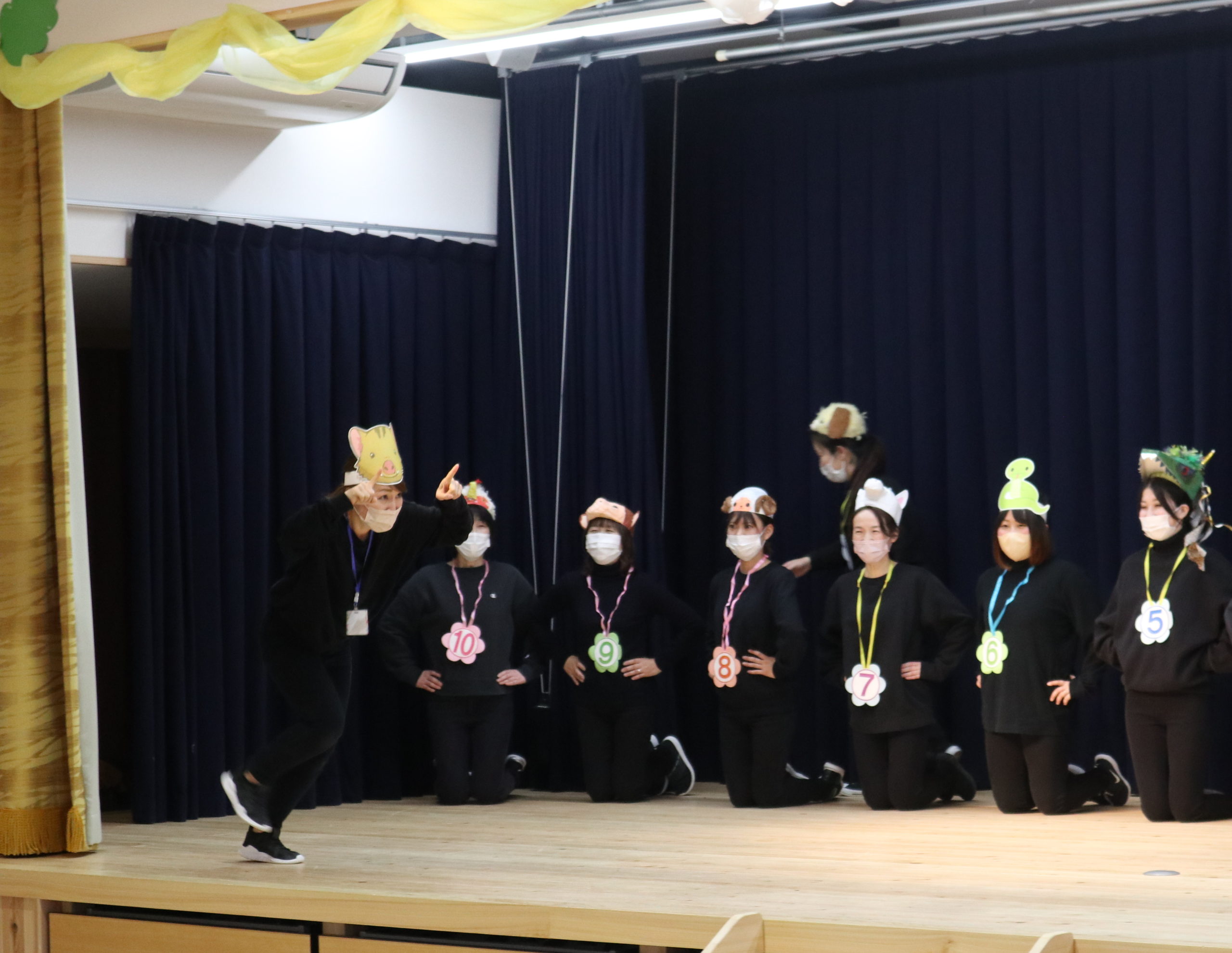 先生たちによる『十二支の始まり』の劇をみんなで楽しみました。
