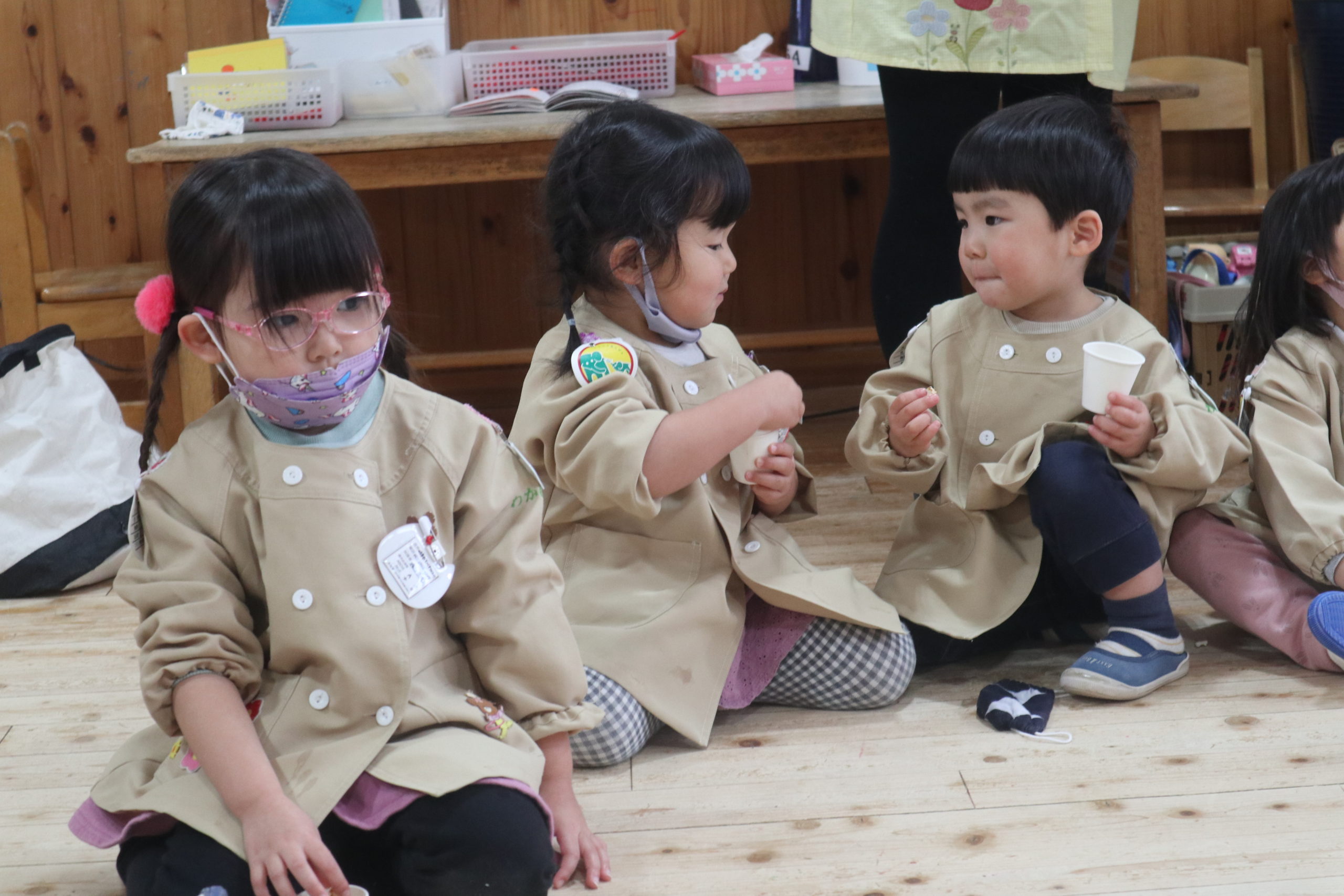 お部屋の先生のお話を聞いて、園長先生の「レッツ スタート!」の合図でさあ始まるよ。