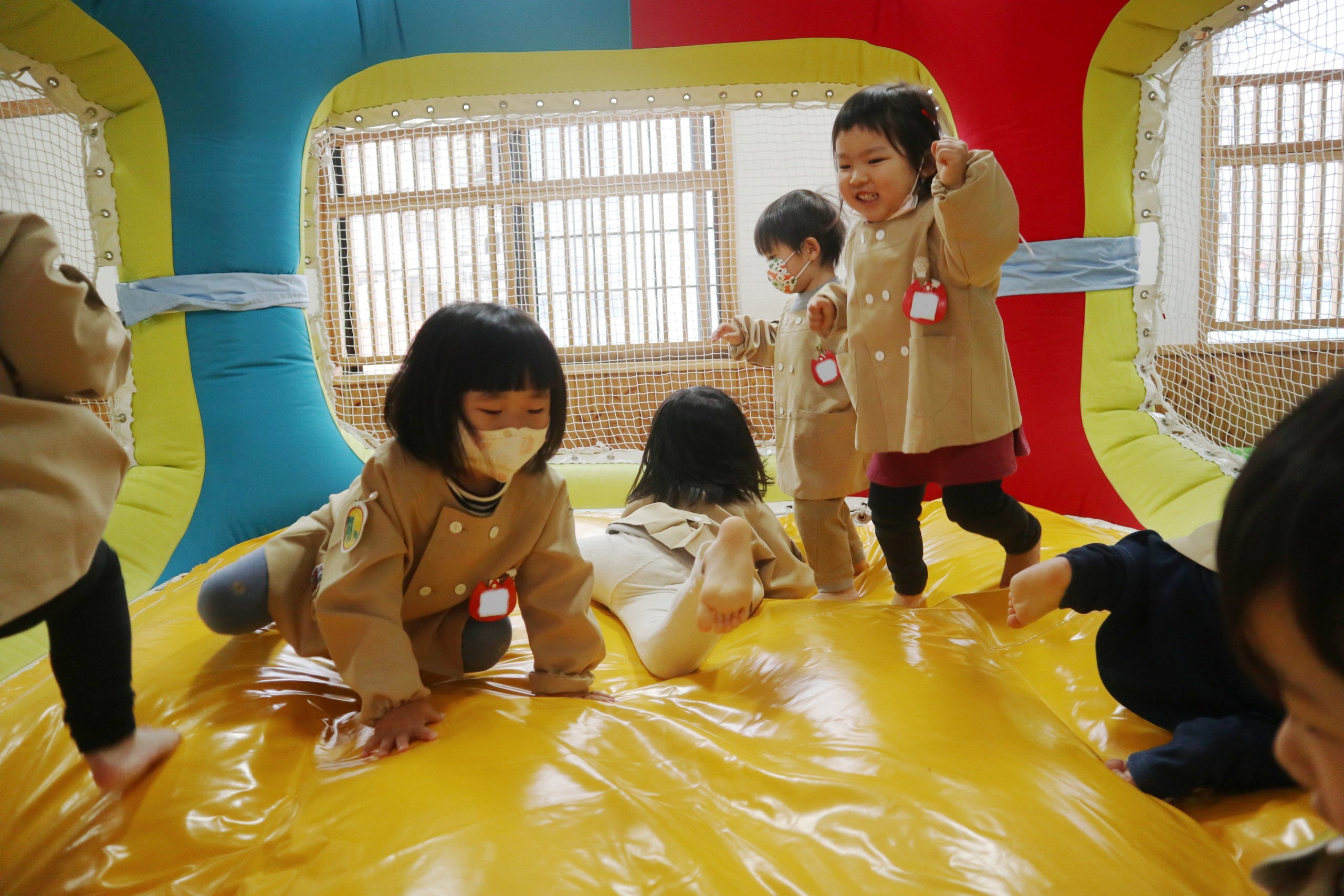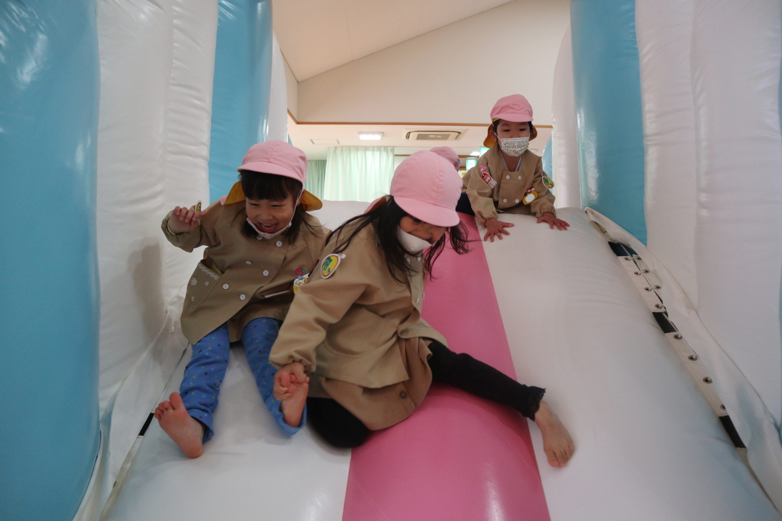 大きな滑り台やトランポリン、体めいいっぱい遊んだね。楽しくてキャッキャッとはしゃいでいたね。