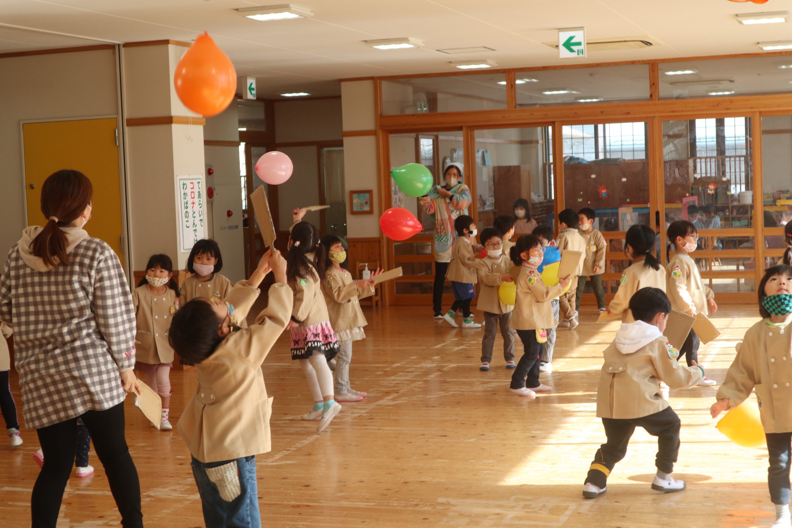 羽根に見立てた風船をポーンポーンと羽子板で打ち合ったよ。