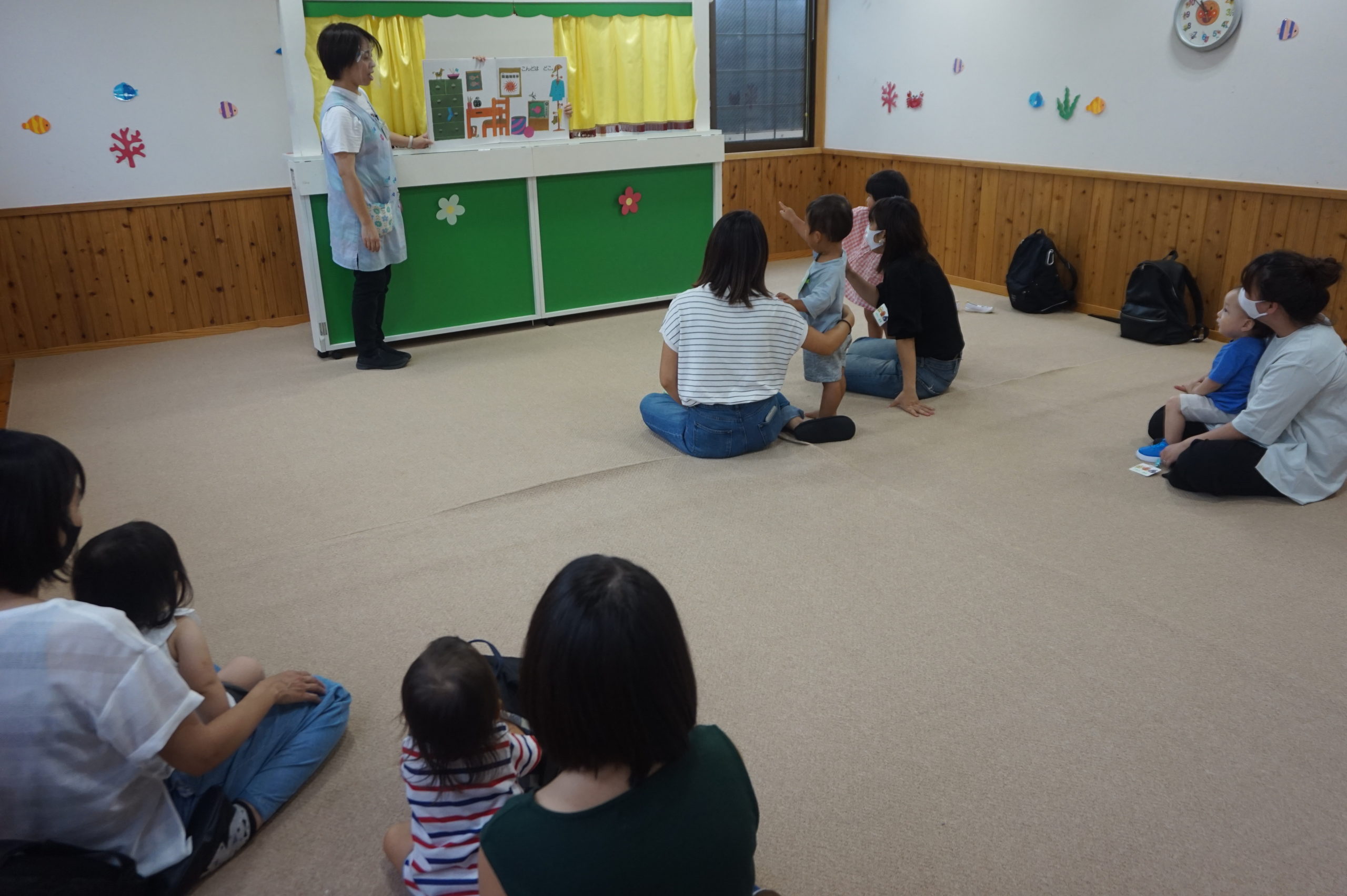 大型絵本「きんぎょがにげた」では指をさしてきんぎょを一生懸命見つけてくれたね。