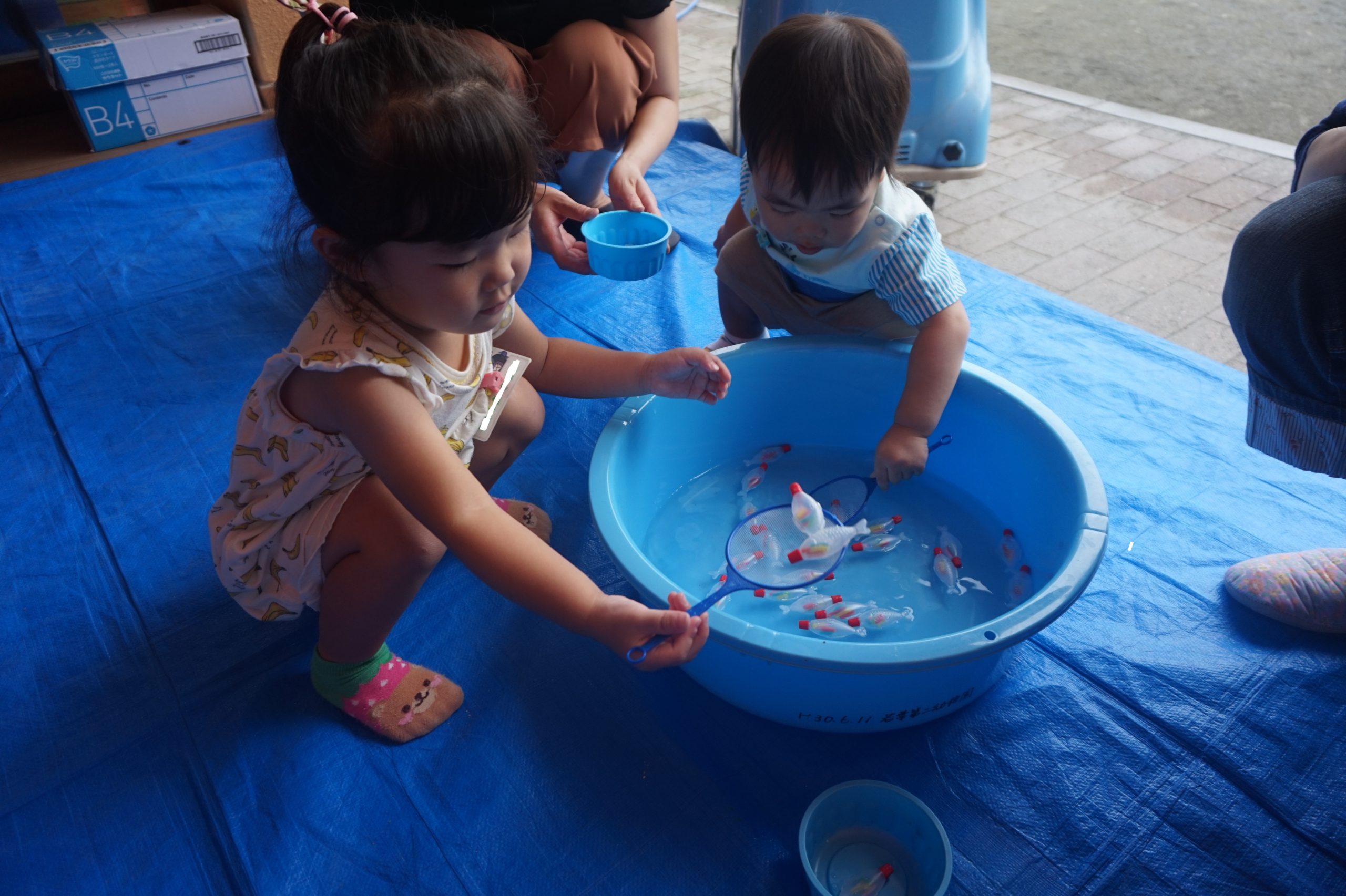 テラスでは金魚すくいをしたよ。