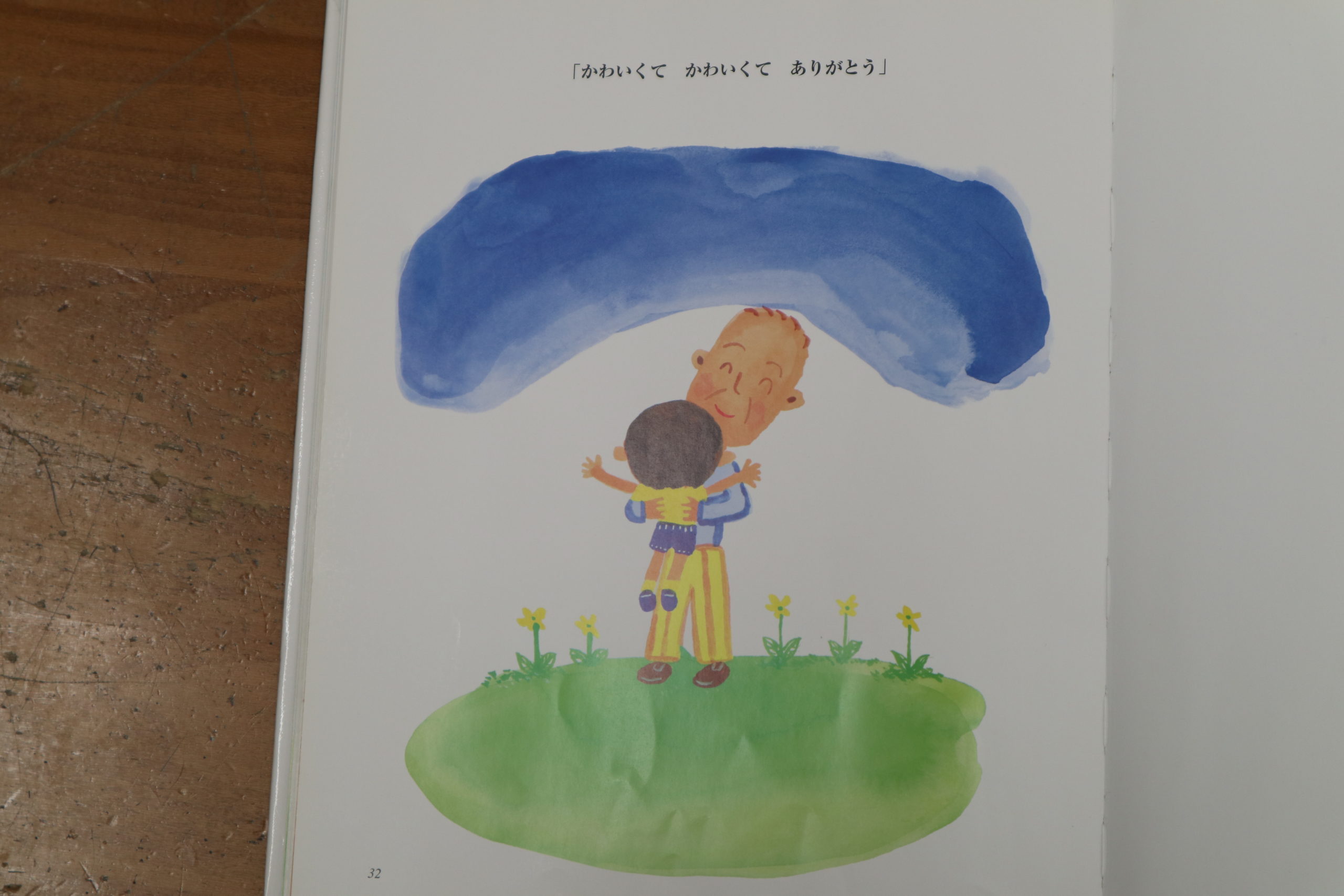 「かわいくて かわいくて ありがとう!」と言って、おじいちゃんが孫を満面の笑みでだっこをするシーンがあります。