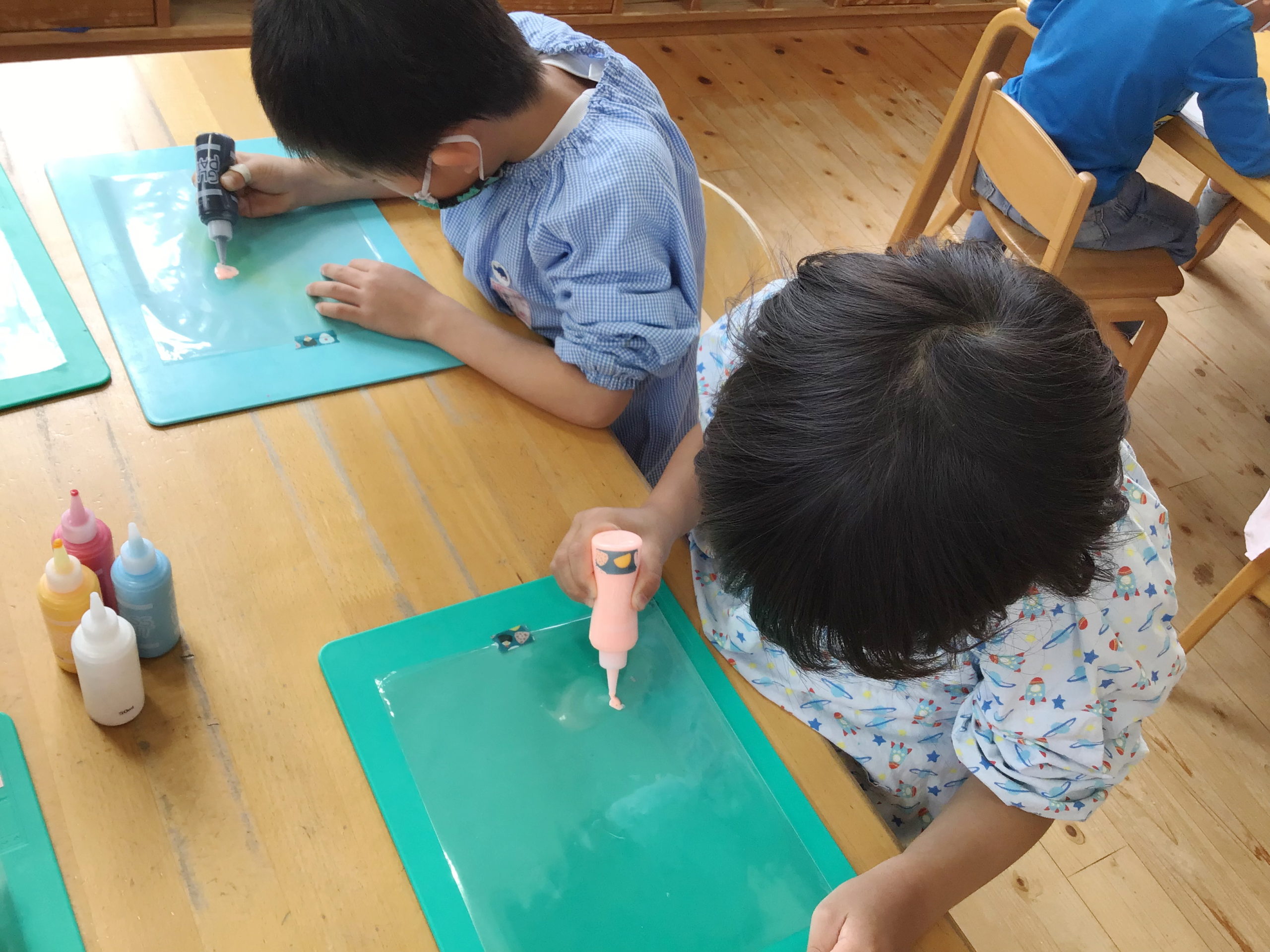 ご家族のことが頭中に広がってみんなが現在製作中です。新しいクラスになって初めての贈り物作り。