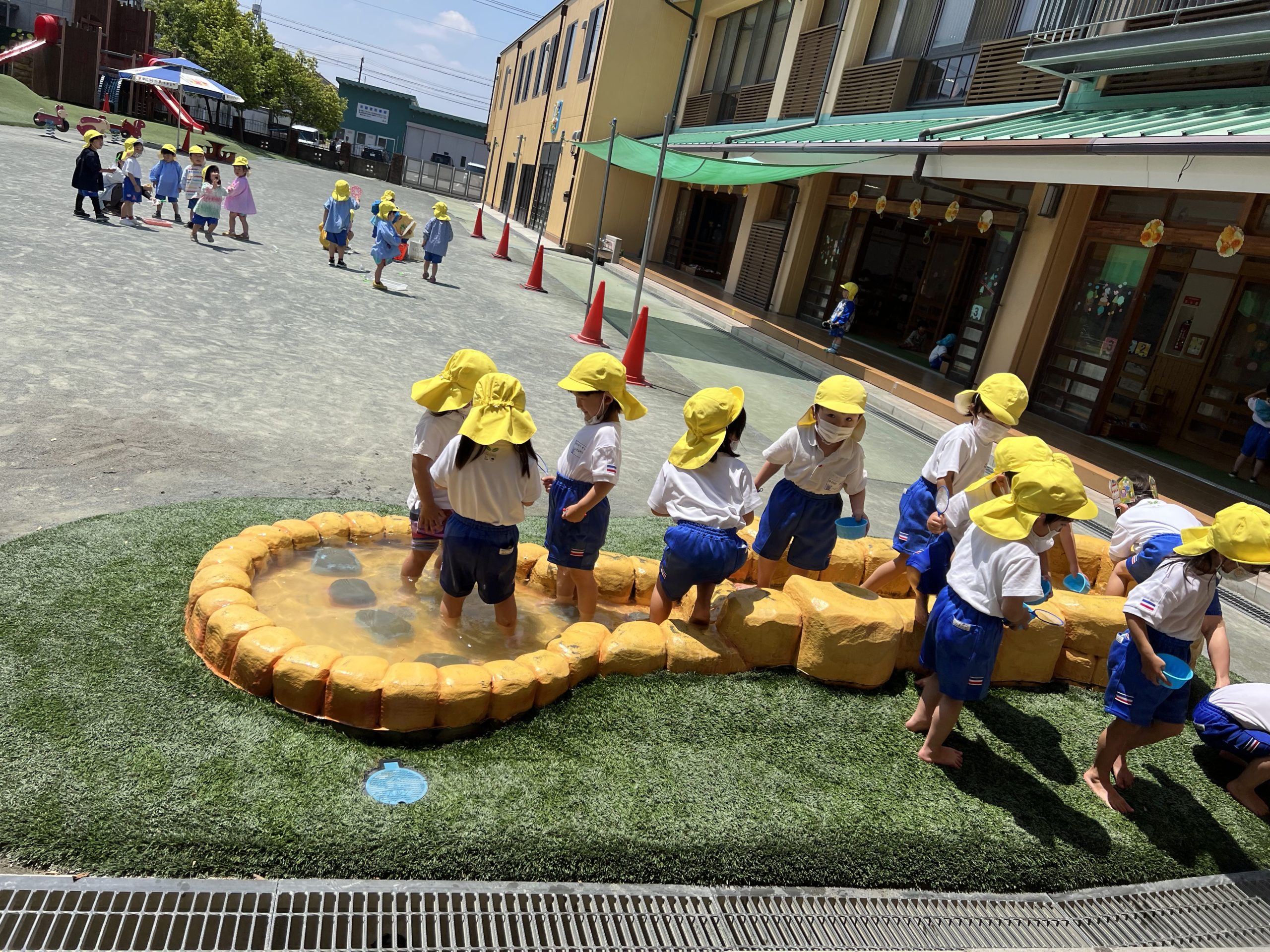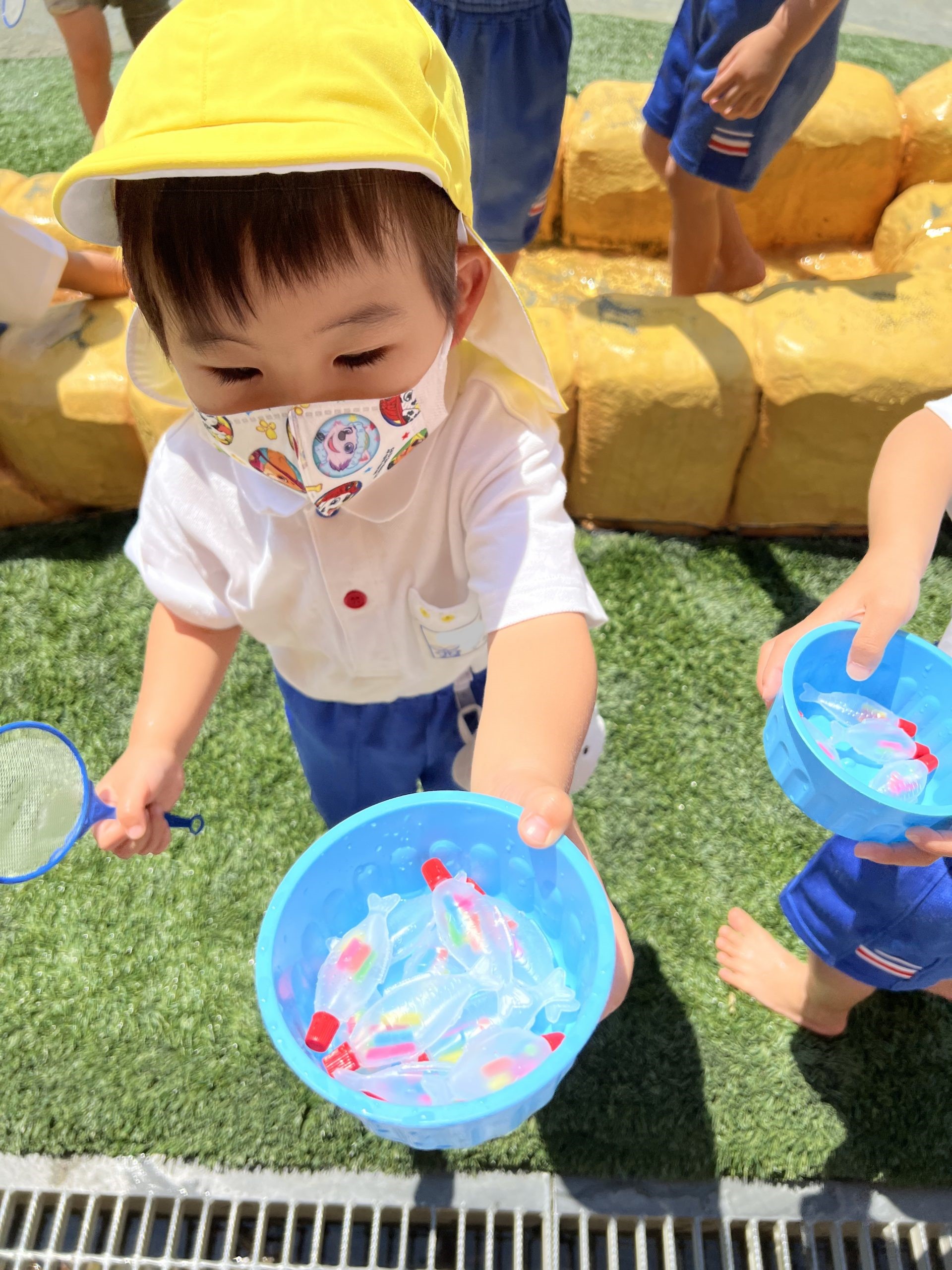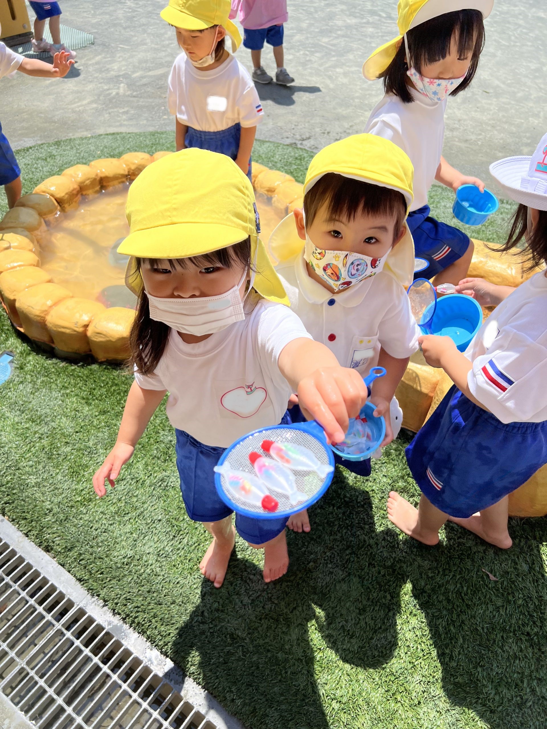 水遊びが大好きな子どもたちが「あそぼっと」で金魚すくいをしてあそびましたよ。