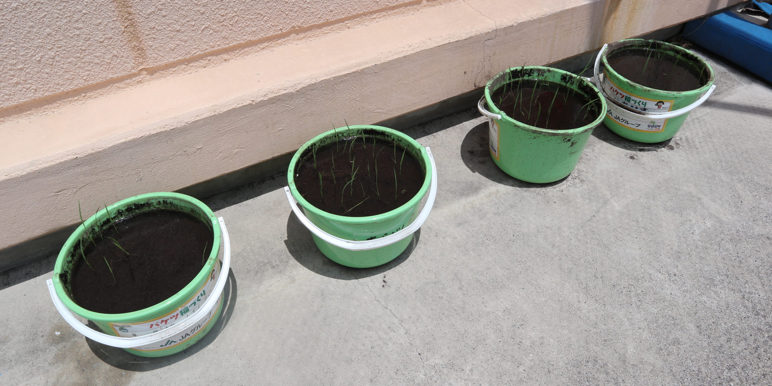 JAぎふさんから頂いた種もみで各クラス「バケツ稲づくり」です。