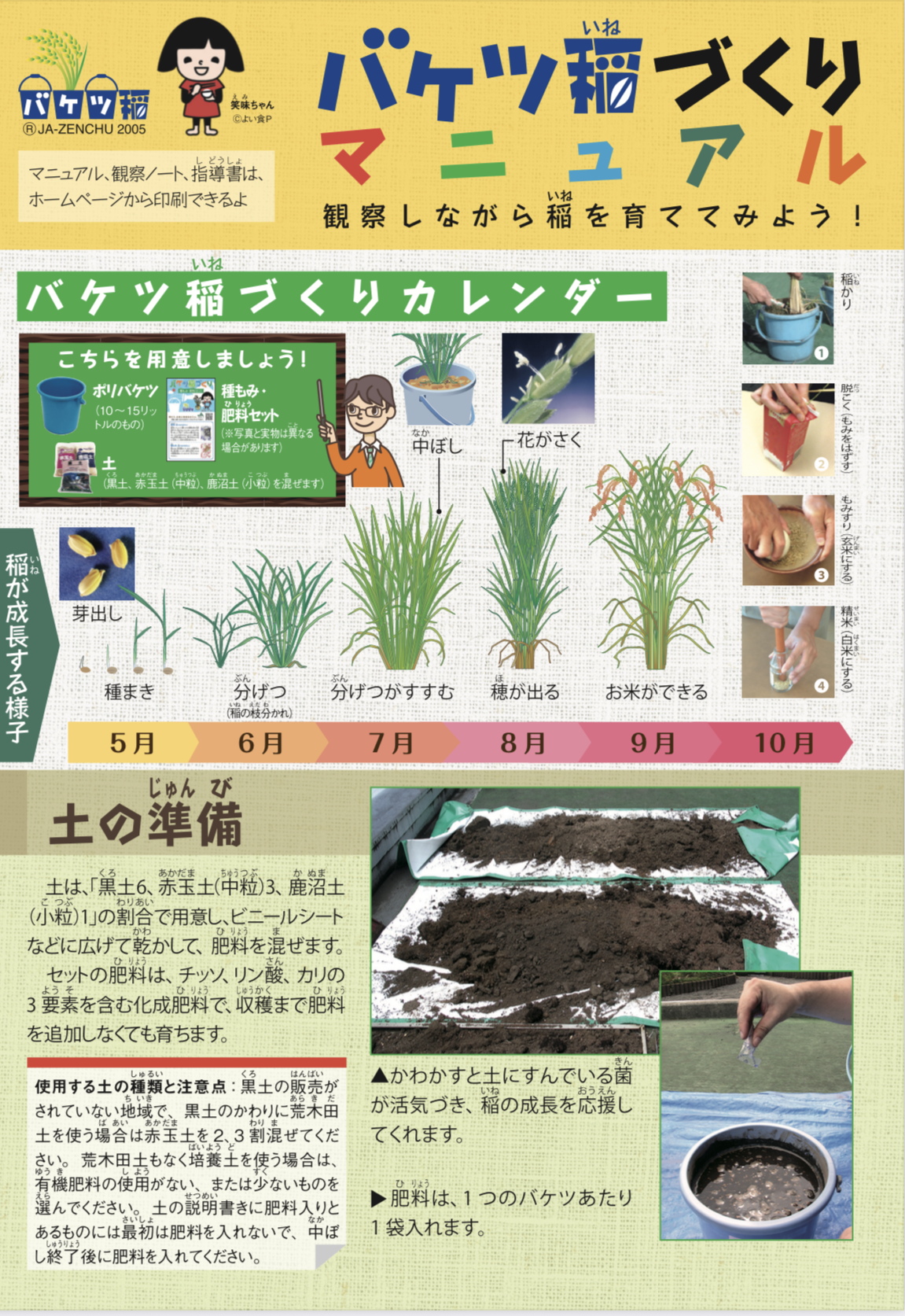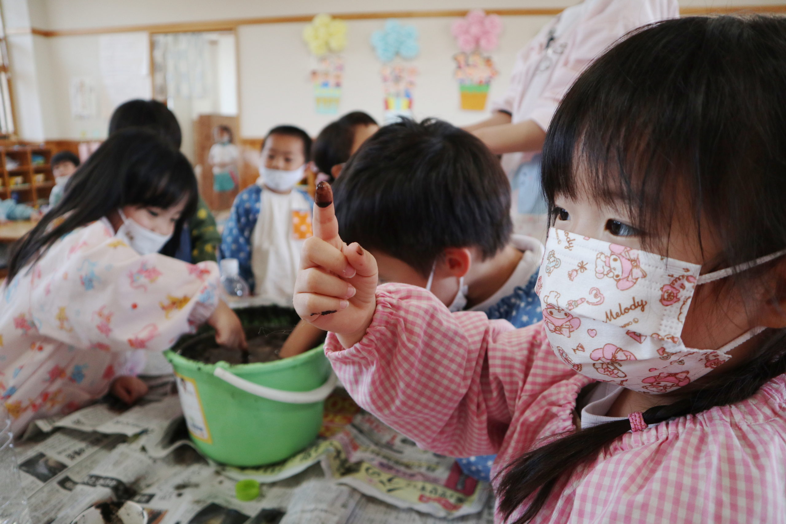 それと並行して、年中組のみなさんも「バケツ稲づくり」に初挑戦することにしました。