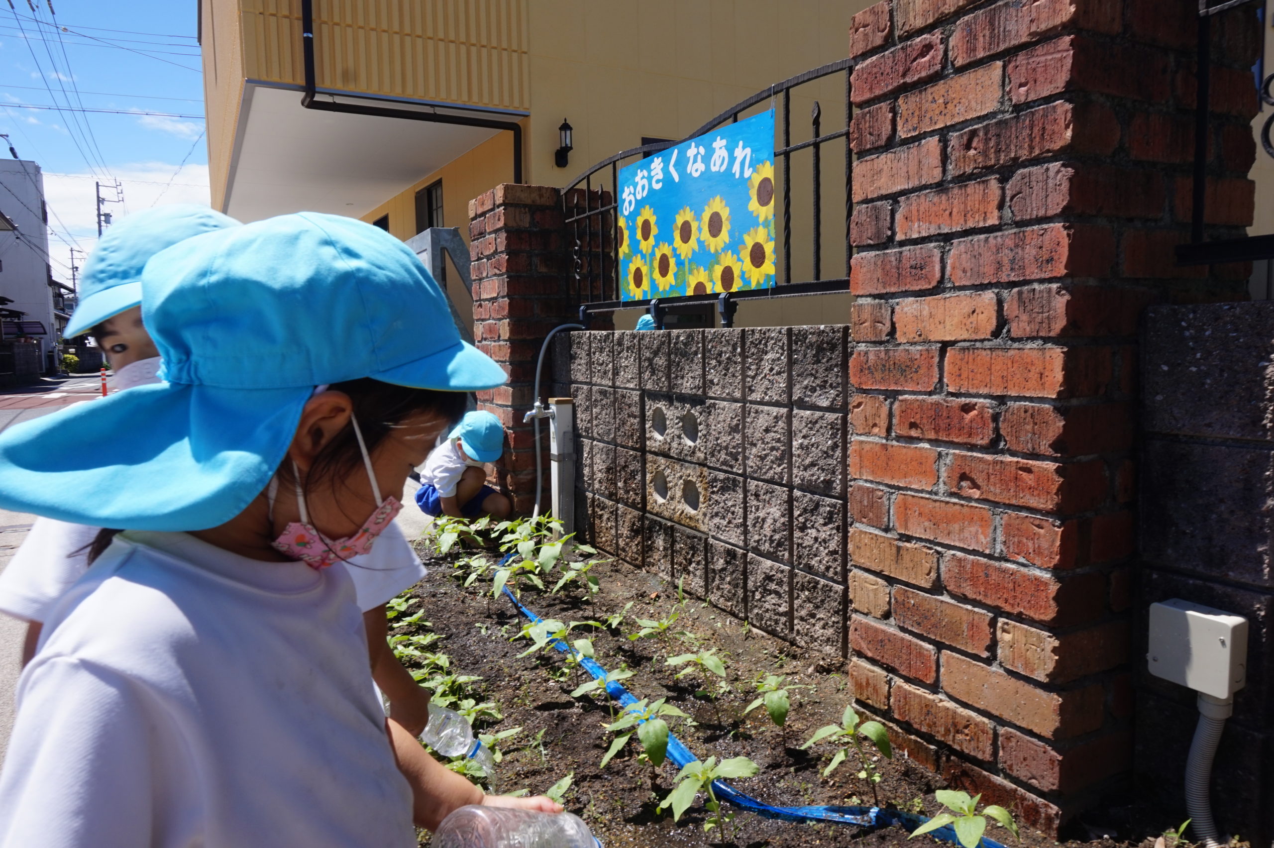 水やり当番の年中さんは園庭を駆け巡りせっせとお水やりをしてくれます。