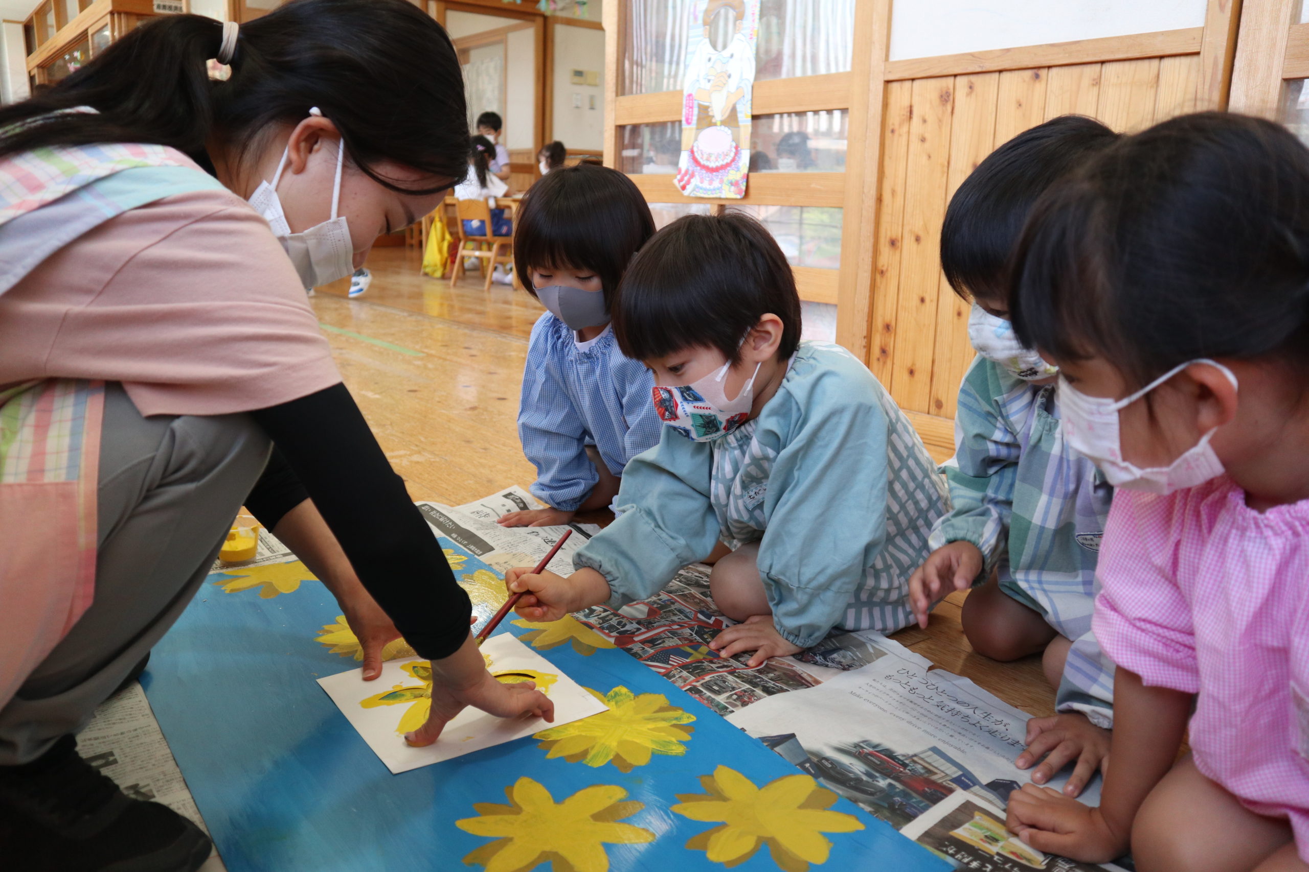 ひまわりのお花がみんなのお顔のようで、