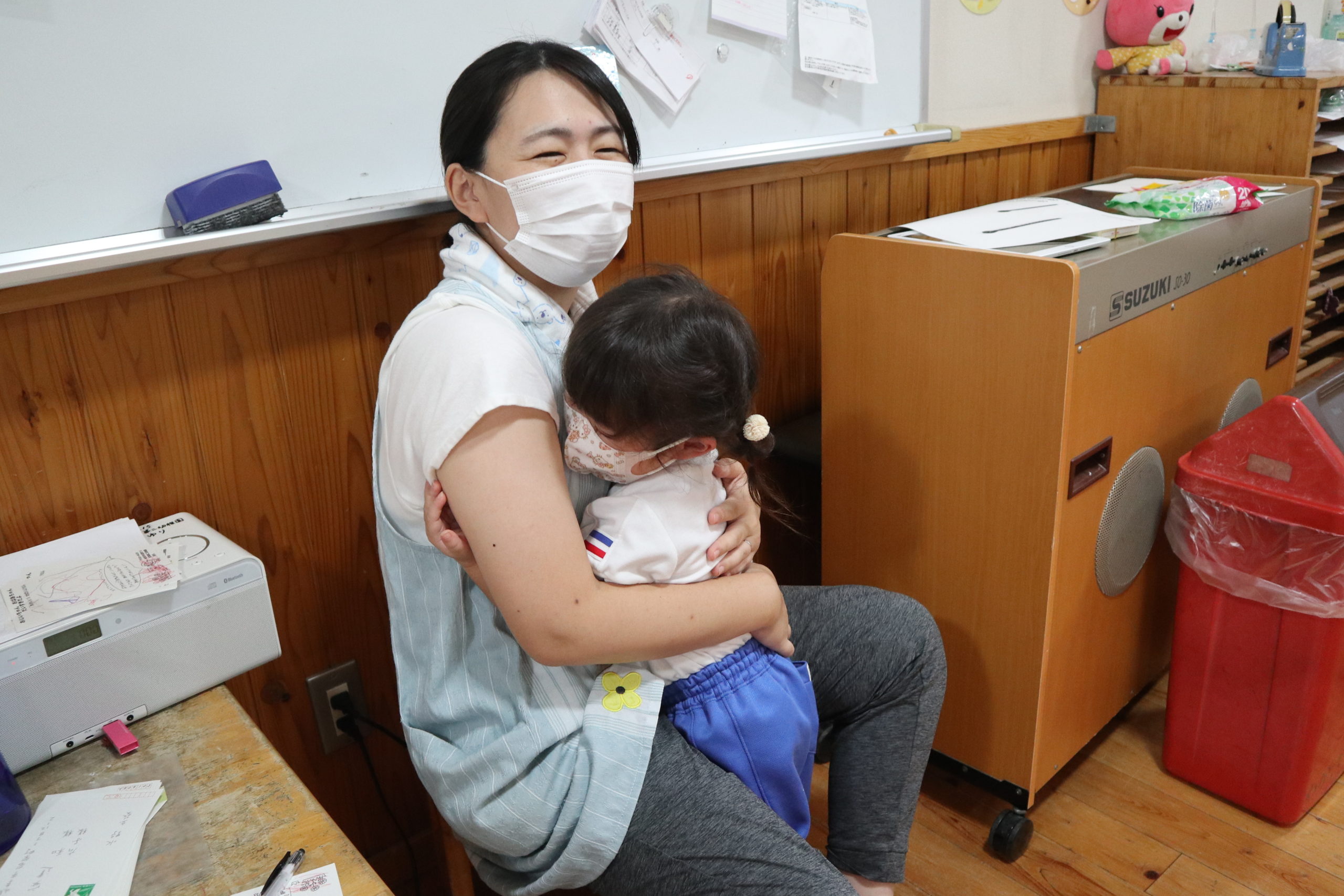 先日、雷が地響きのように幼稚園の空で暴れました。「こわかったね・・・、だいじょうぶだよ。」
