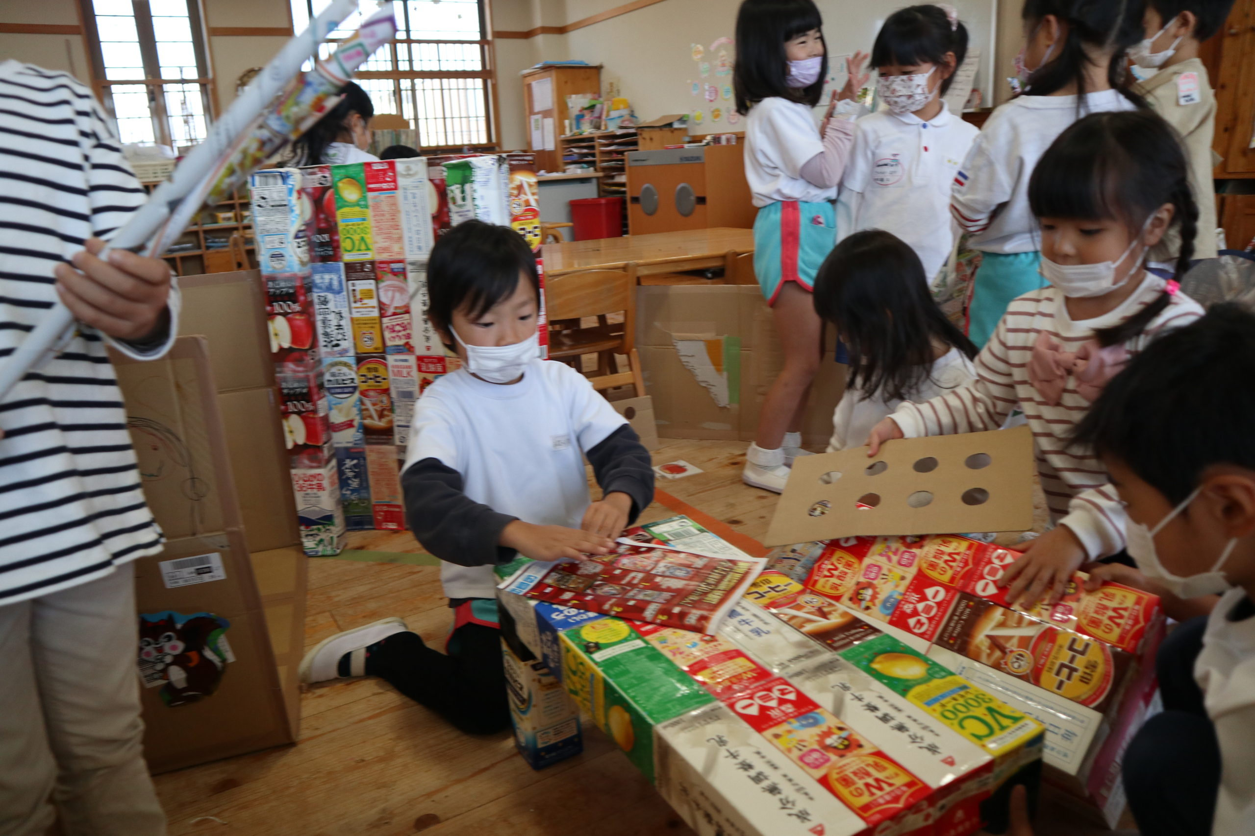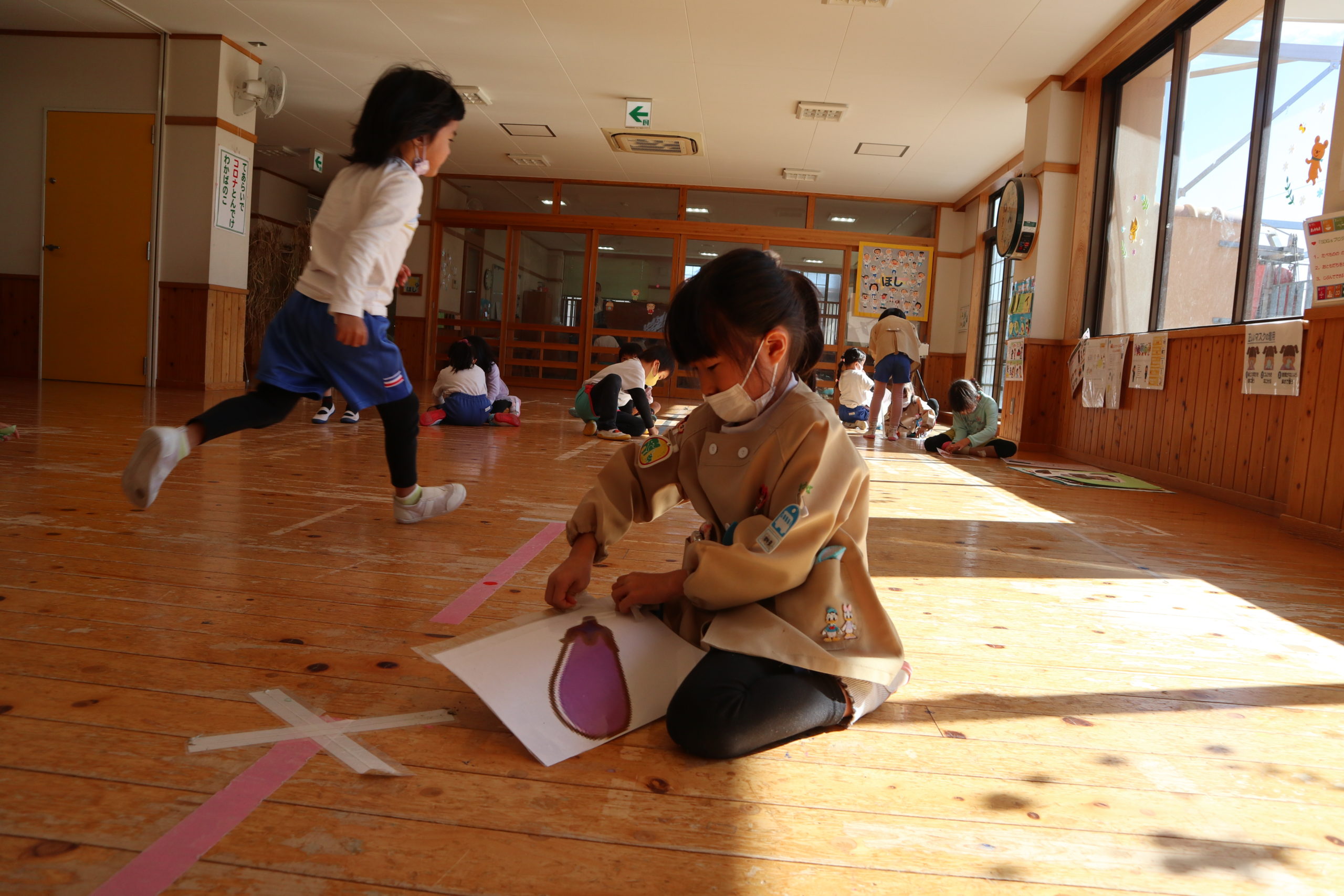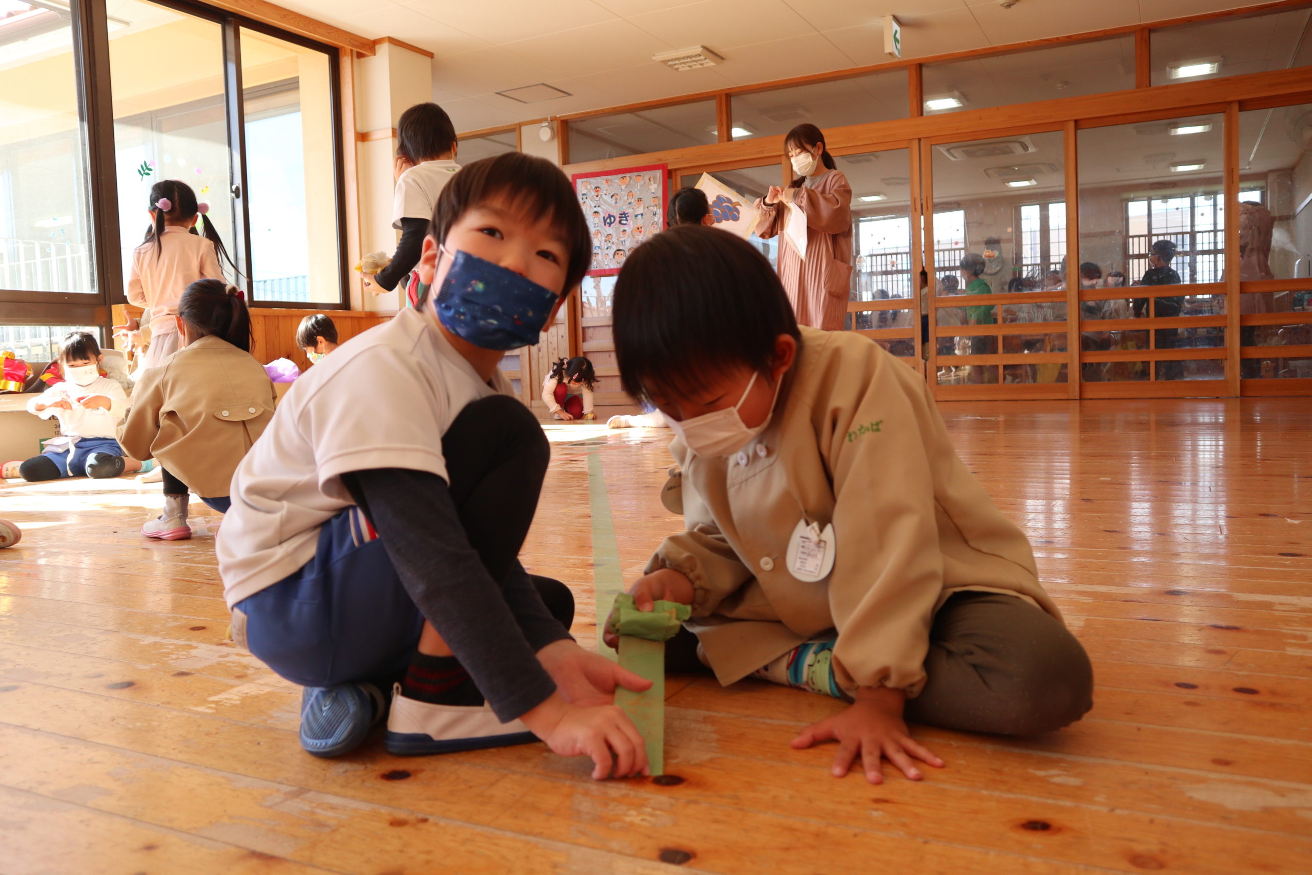 そして支えてくれた目印になるラインをにじ組とすみれ組のみなさんが丁寧に外してくれました。