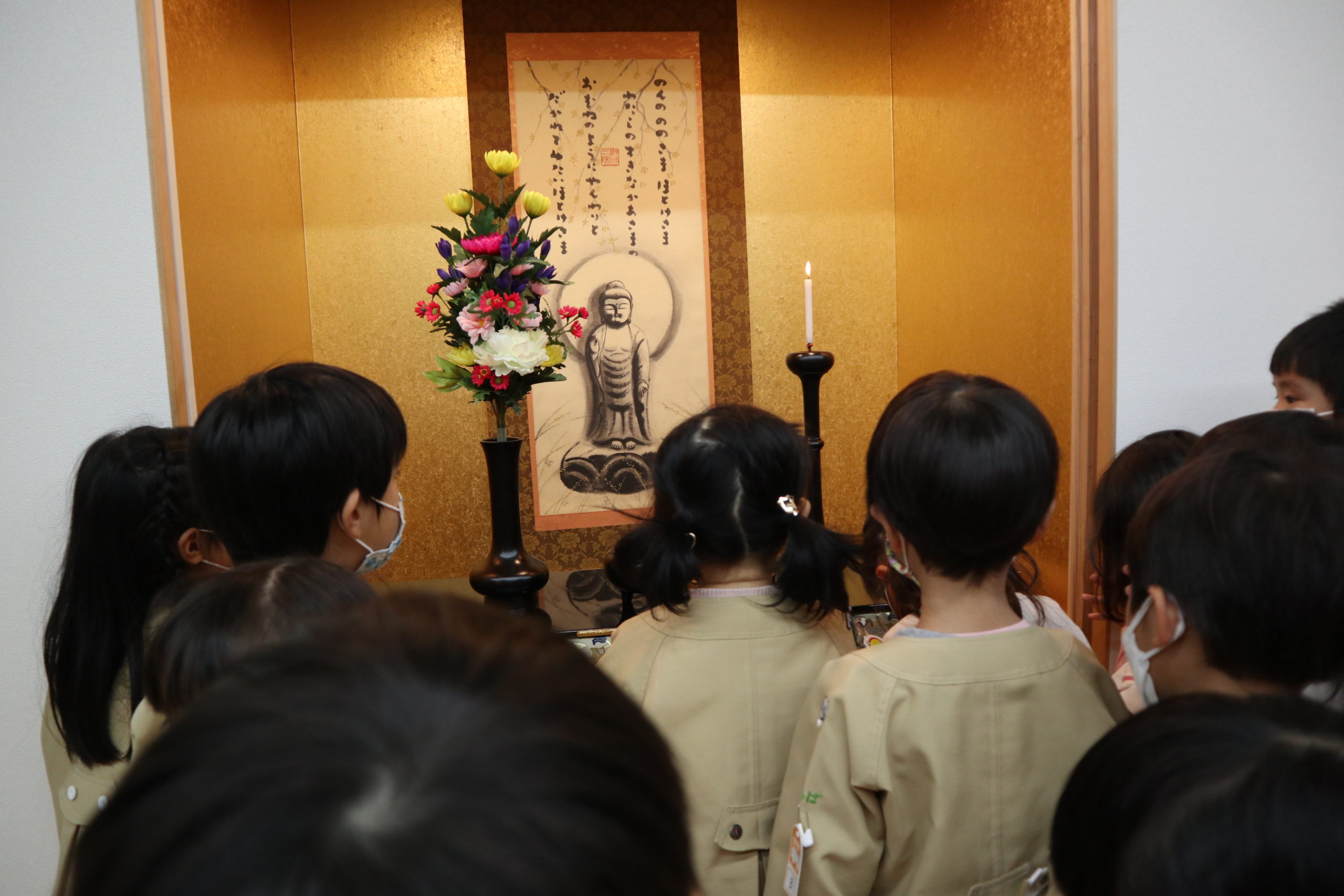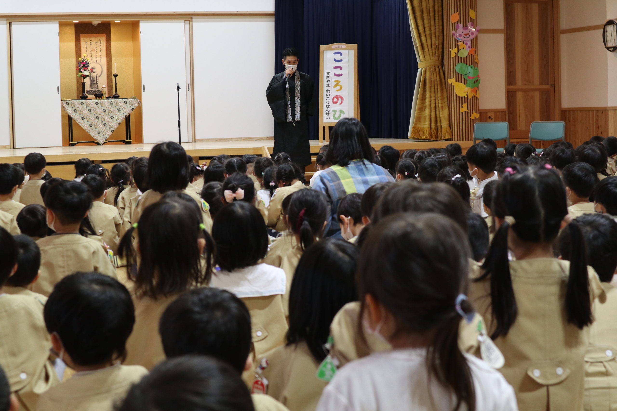 最後に「こころの日にののさまにあいにきてください。ののさまは『なむあみだぶつ』と挨拶されることがだいすきなんだよ。ののさまに挨拶をして、嬉しいことや寂しいことや頑張りたいことを報告して、『みまもっていてね、おうえんしてね』とお話してください。」と結ばれました。