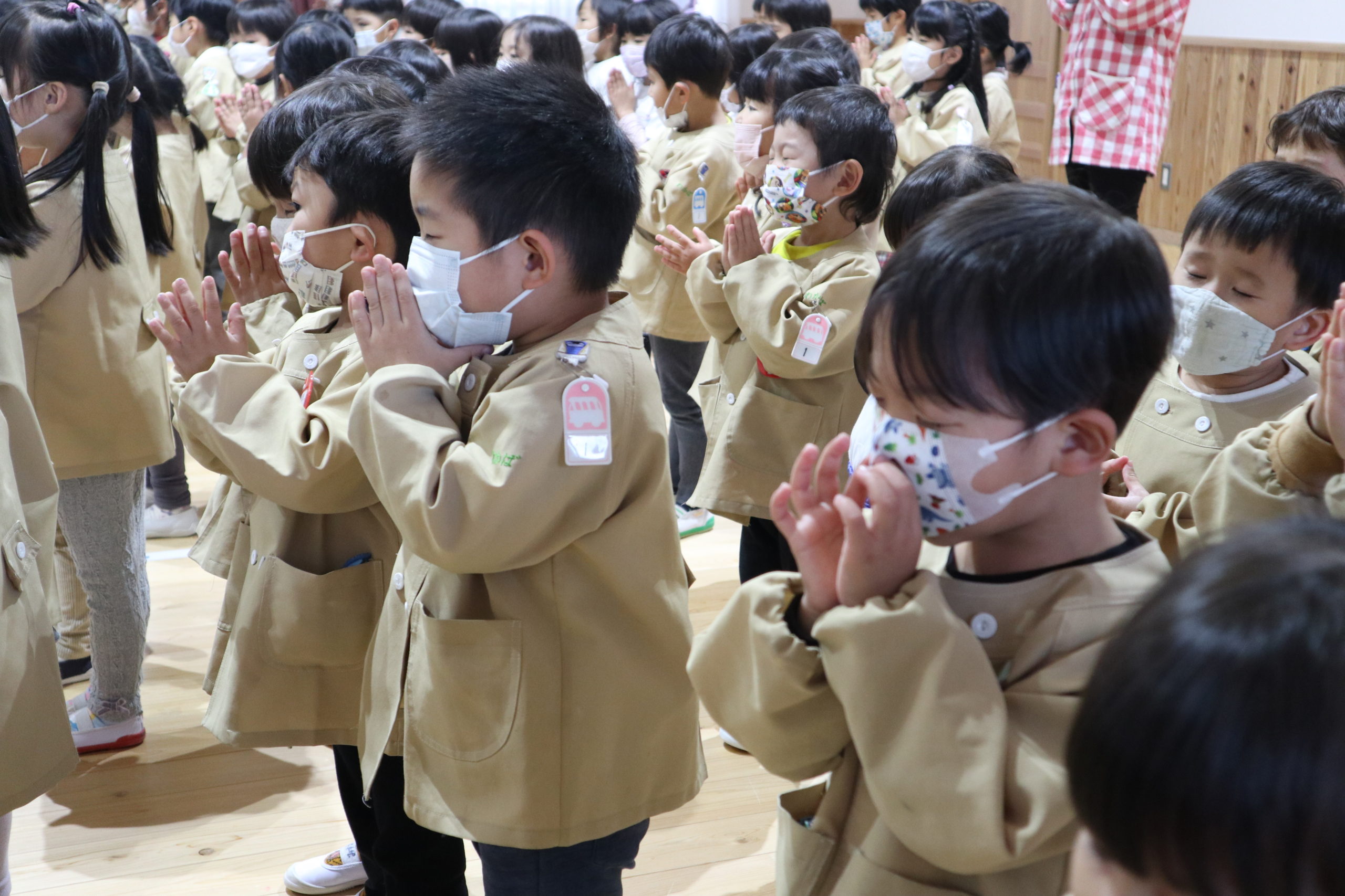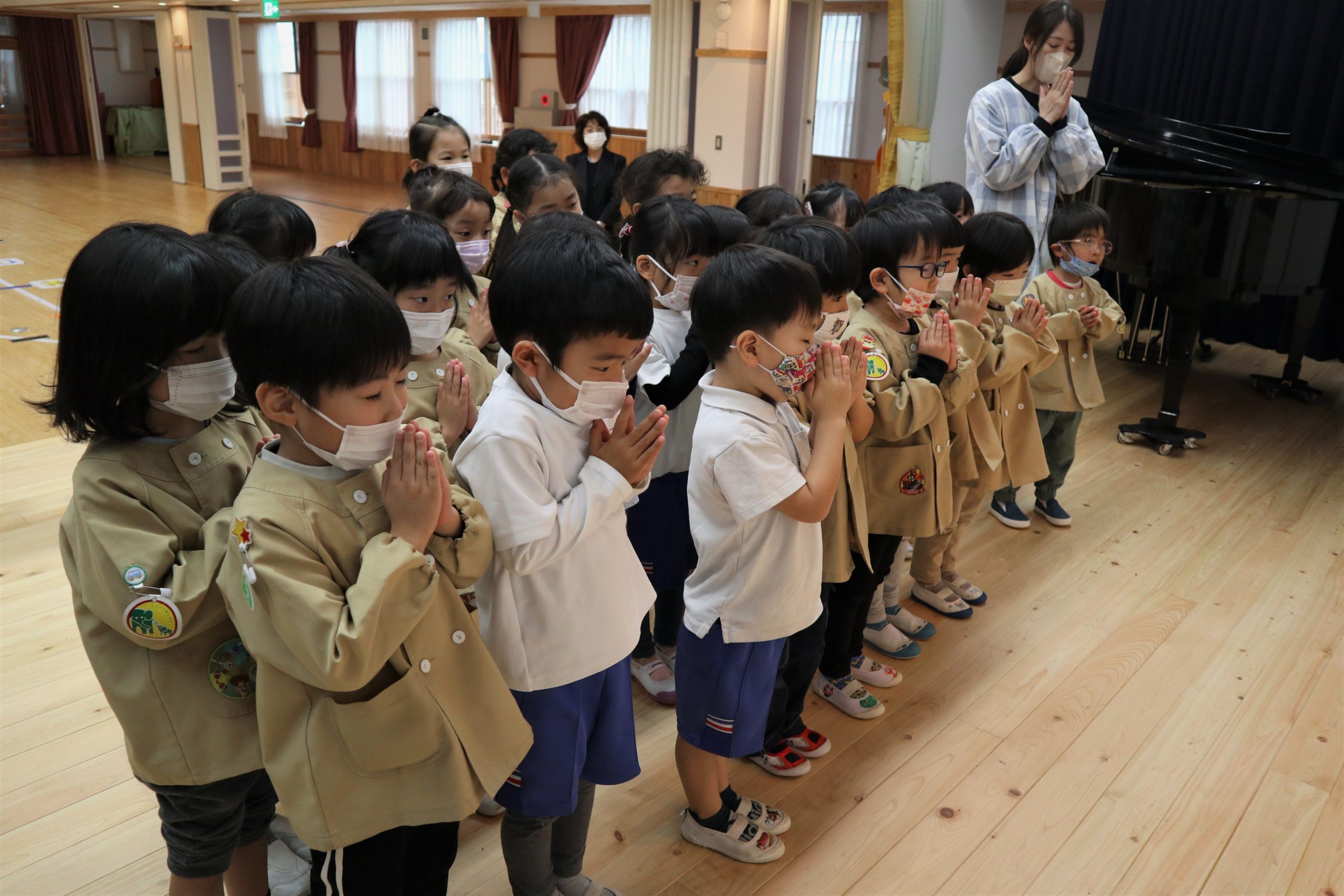 はじめに、「ののさま」の歌をみんなで合唱しました。年少さんから年長さんまでみんなが揃って歌う姿にまず!です。そしてその歌声に感動しました。