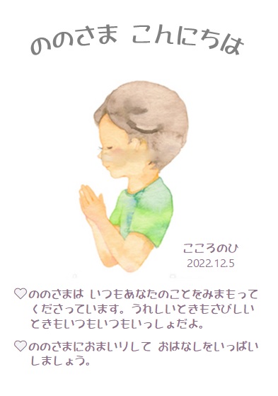12月第一月曜日、今日は12月の「こころのひ」、はじまりの日です。
