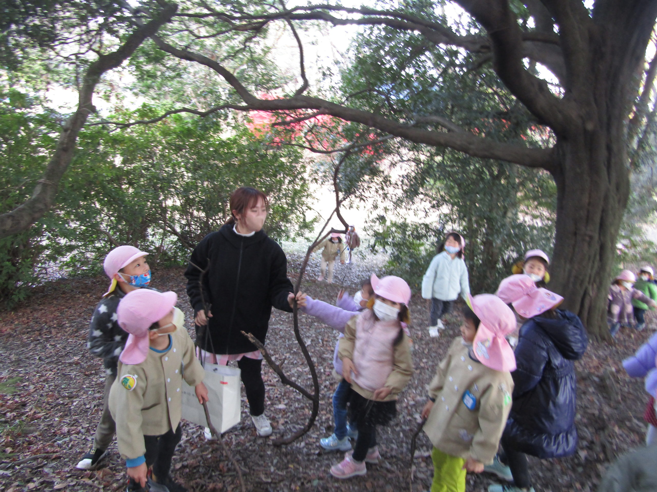 つるとえだの区別がつかなかったり、長さはうでとくらべて「これなら・・だいじょうぶ」と、思い思いの枝を探してにぎやかな枝取りになりました。