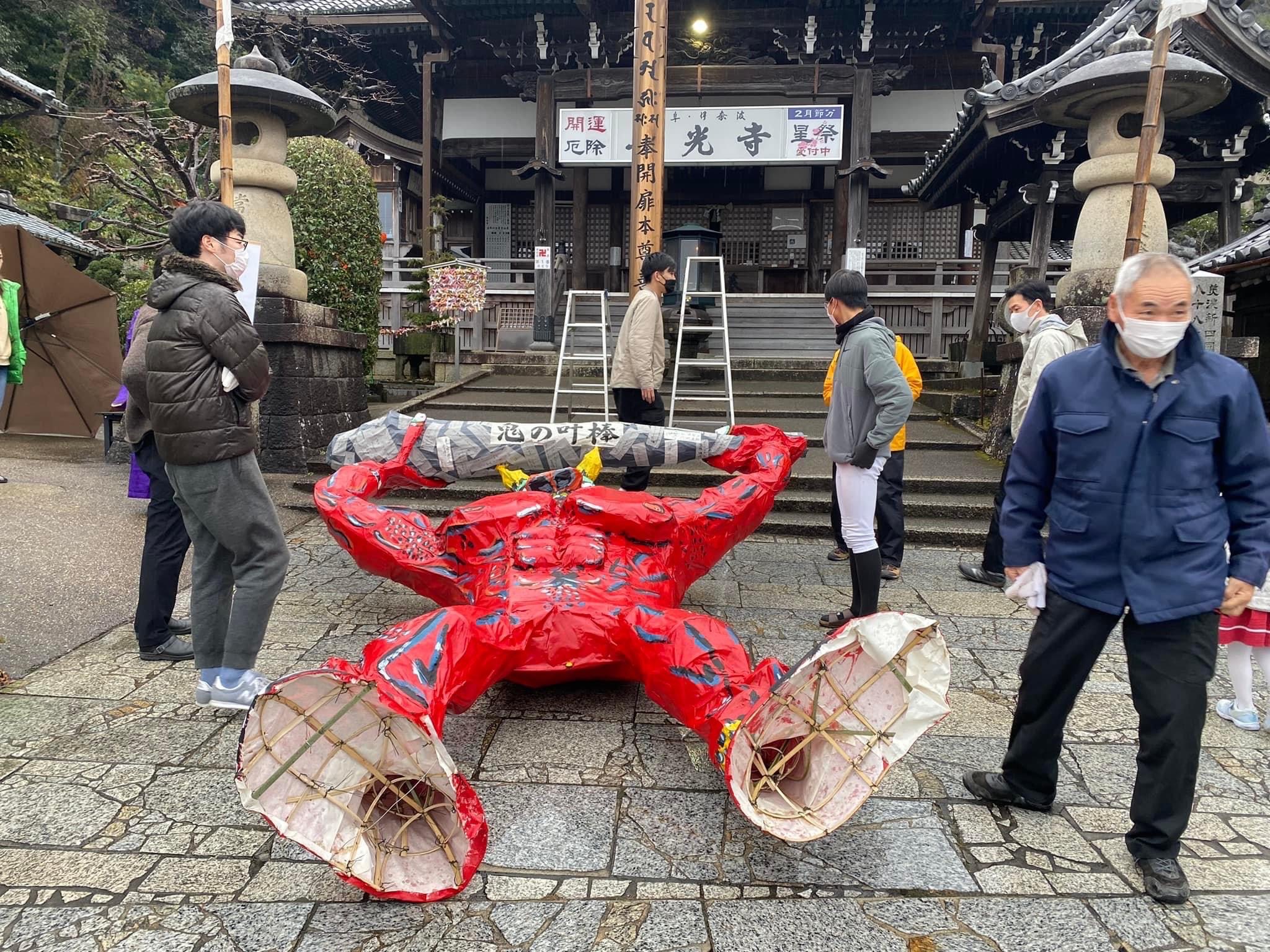 加納桜道に名物の玉性院の赤鬼が建立されました。松の内を開けたばかりで早くも節分の準備です。