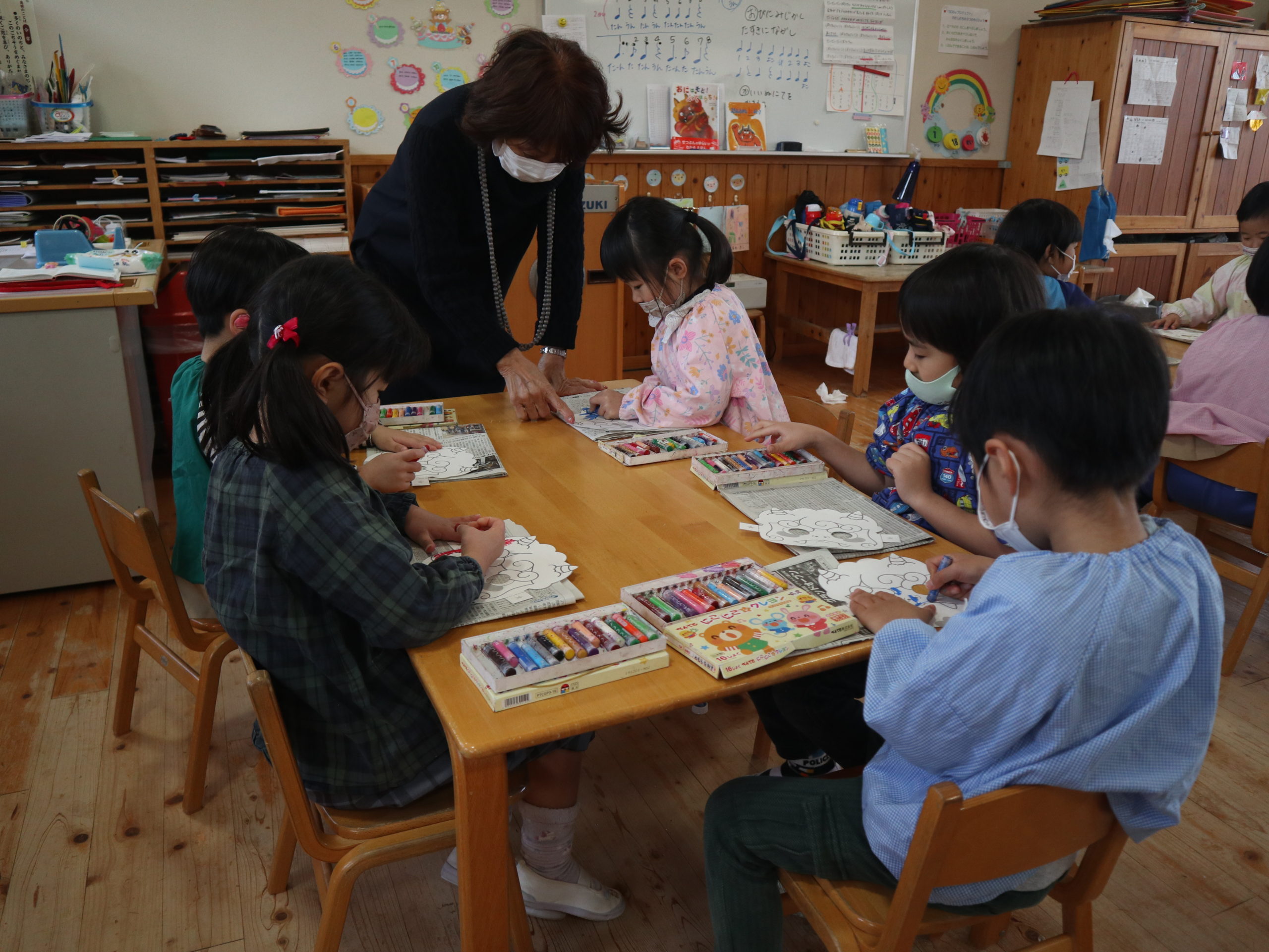 「とけいの3がきたらみんなそとへいくよ」「おわったらこれをどこにおく?」