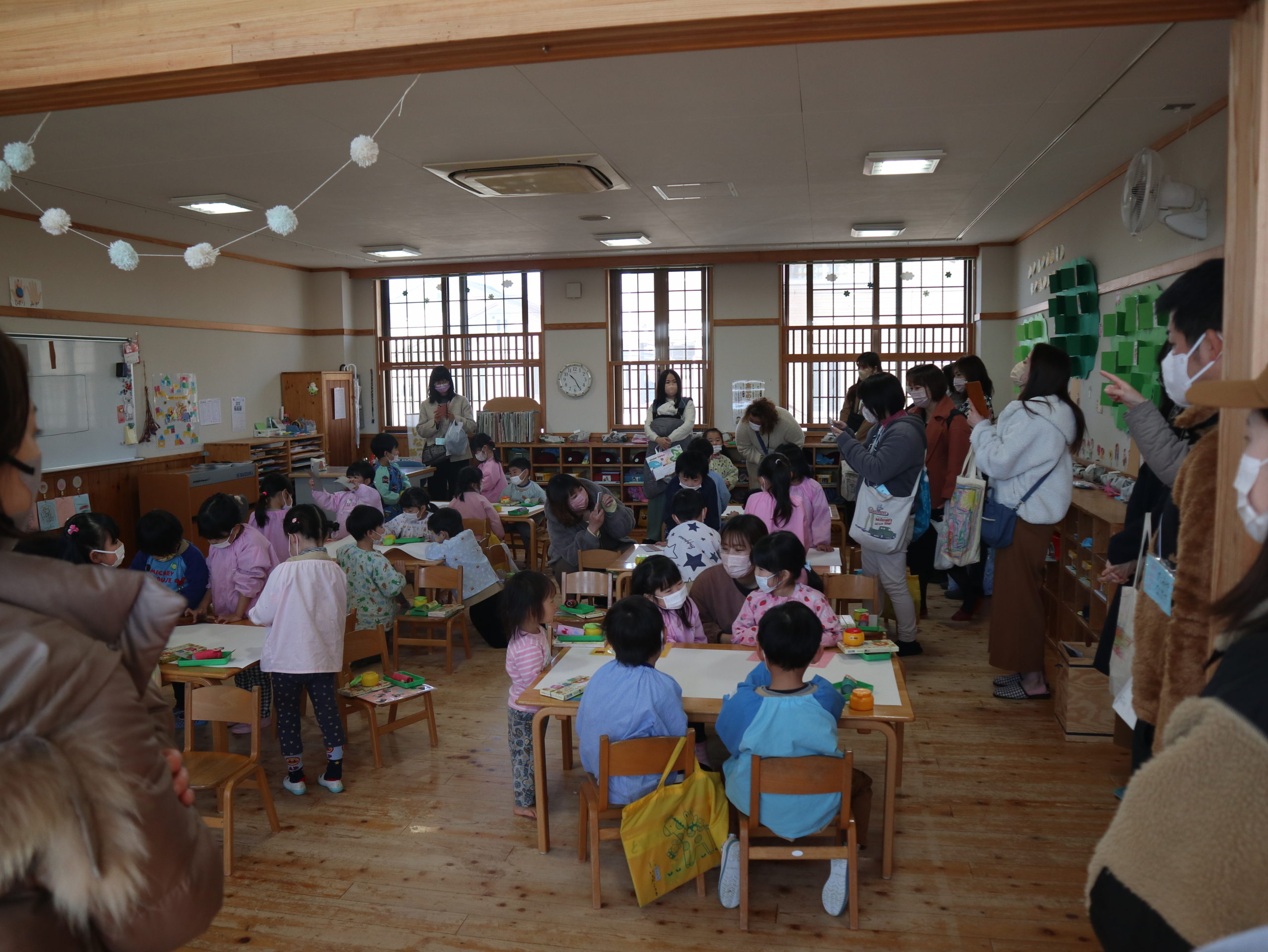 課内レッスンの参観を除き、幼稚園としての最後の保育参観を4日間に亘って行いました。
