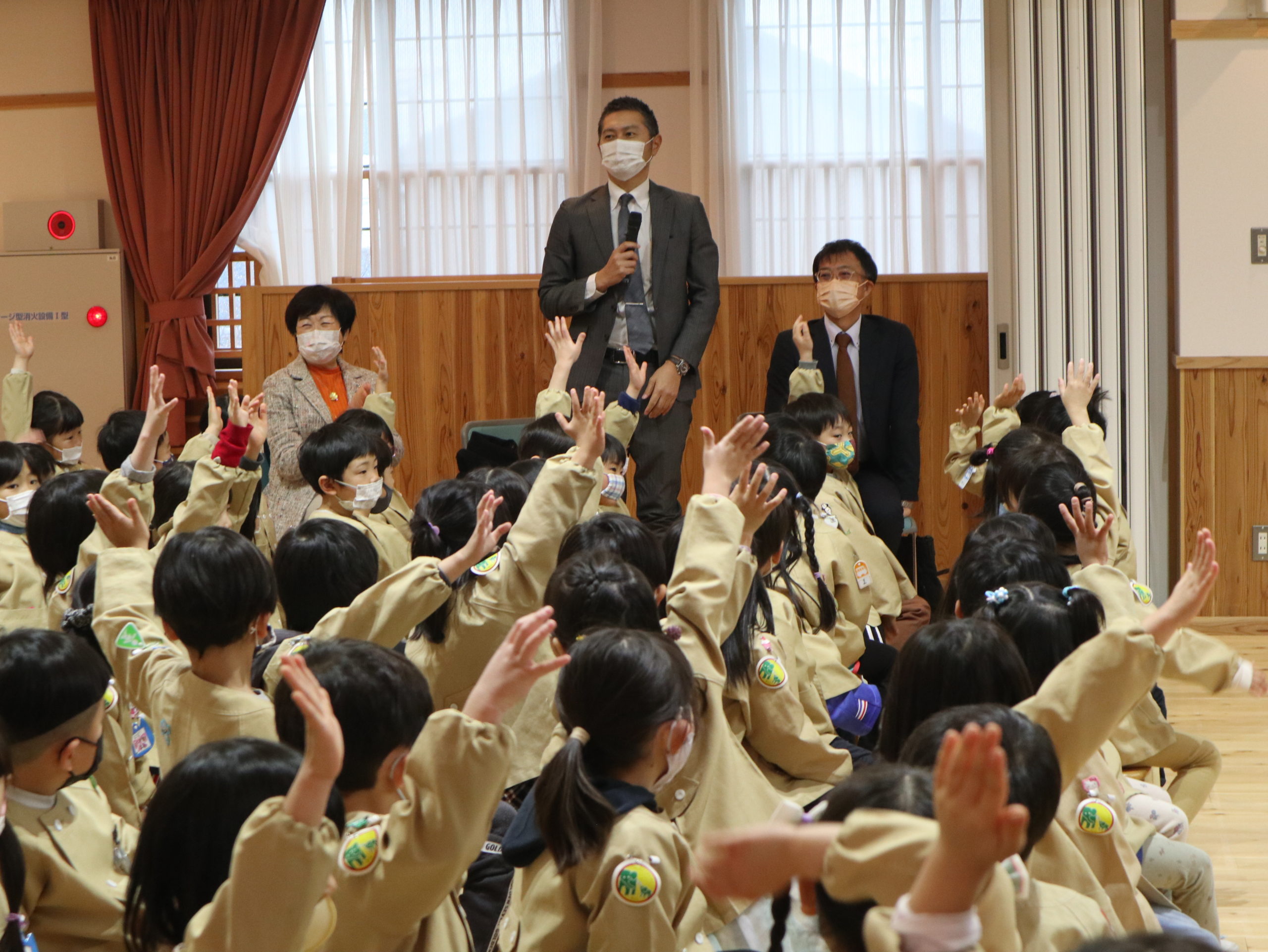 「私は税金を払わない悪い人をやっつける仕事をしています。税金のことわかったお友達?」「はーい!」とたくさんの手が挙がりました。「大きくなったら、いっぱいお仕事してお金持ちになって税金をたくさん払ってくださいね。」と未来の日本を背負って立つこどもたちにエールを送ってくださいました。