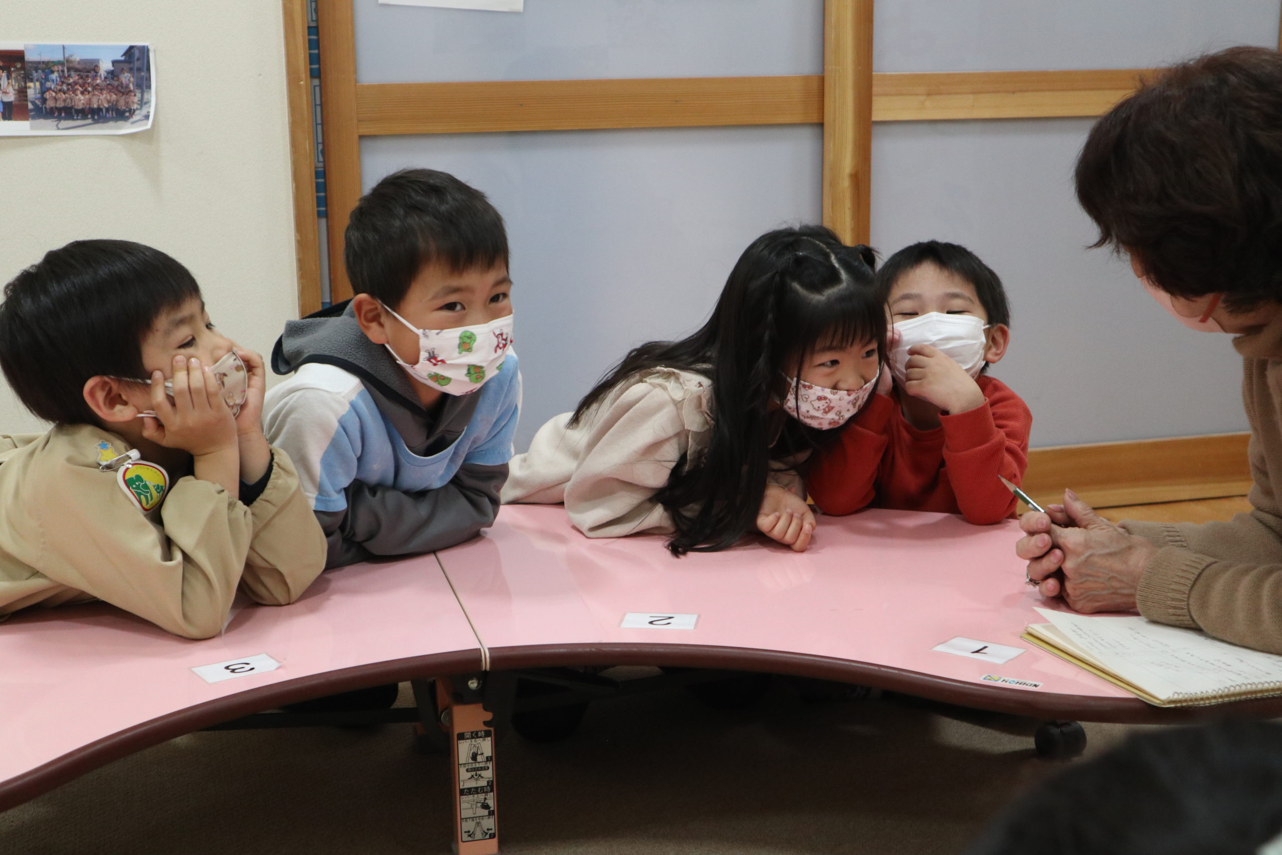 人前になると恥ずかしくなってしまう子もありますが、おともだちのお話はよく聴いてくれています。