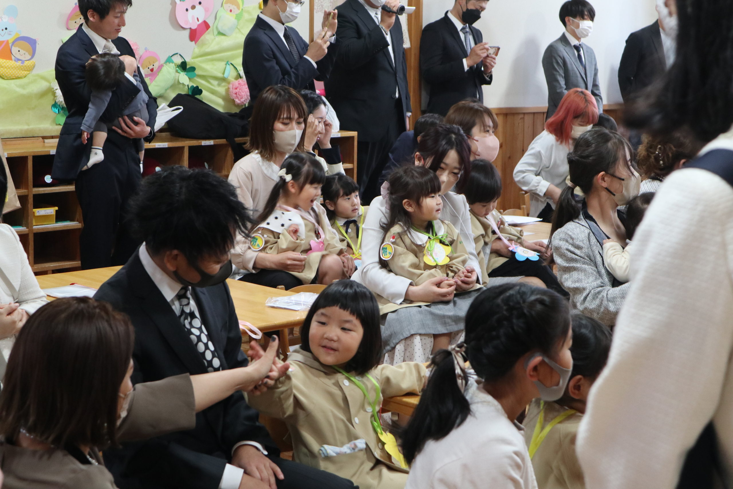 今日から始まる社会生活への第一歩、嬉しいことや楽しいことや乗り越えなくてはならない寂しいこともあるとは思いますが、私たちを信頼してお預けいただいた皆様の気持ちを胸に、はぱやままの一番の代わりとなって、これからの成長を見守り手をつないで歩いていきたいと改めて心する入園の日となりました。