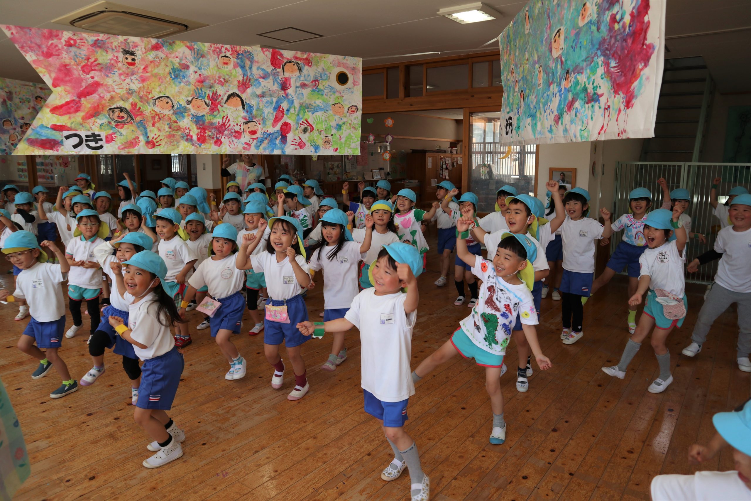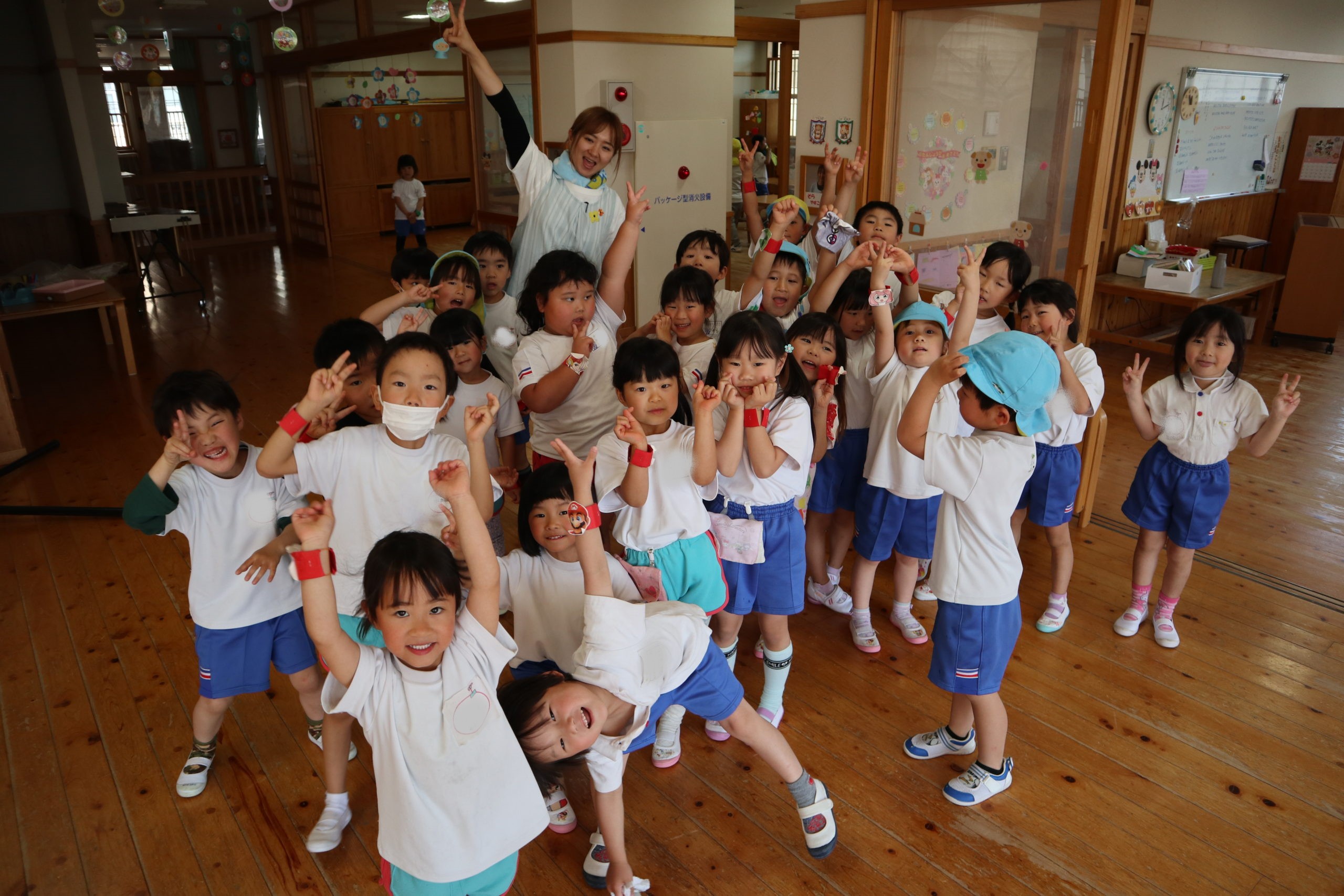 そこで先日、ホールで年中組のみなさんと遊びました。初めに年少さんのクラスで並んでみました。