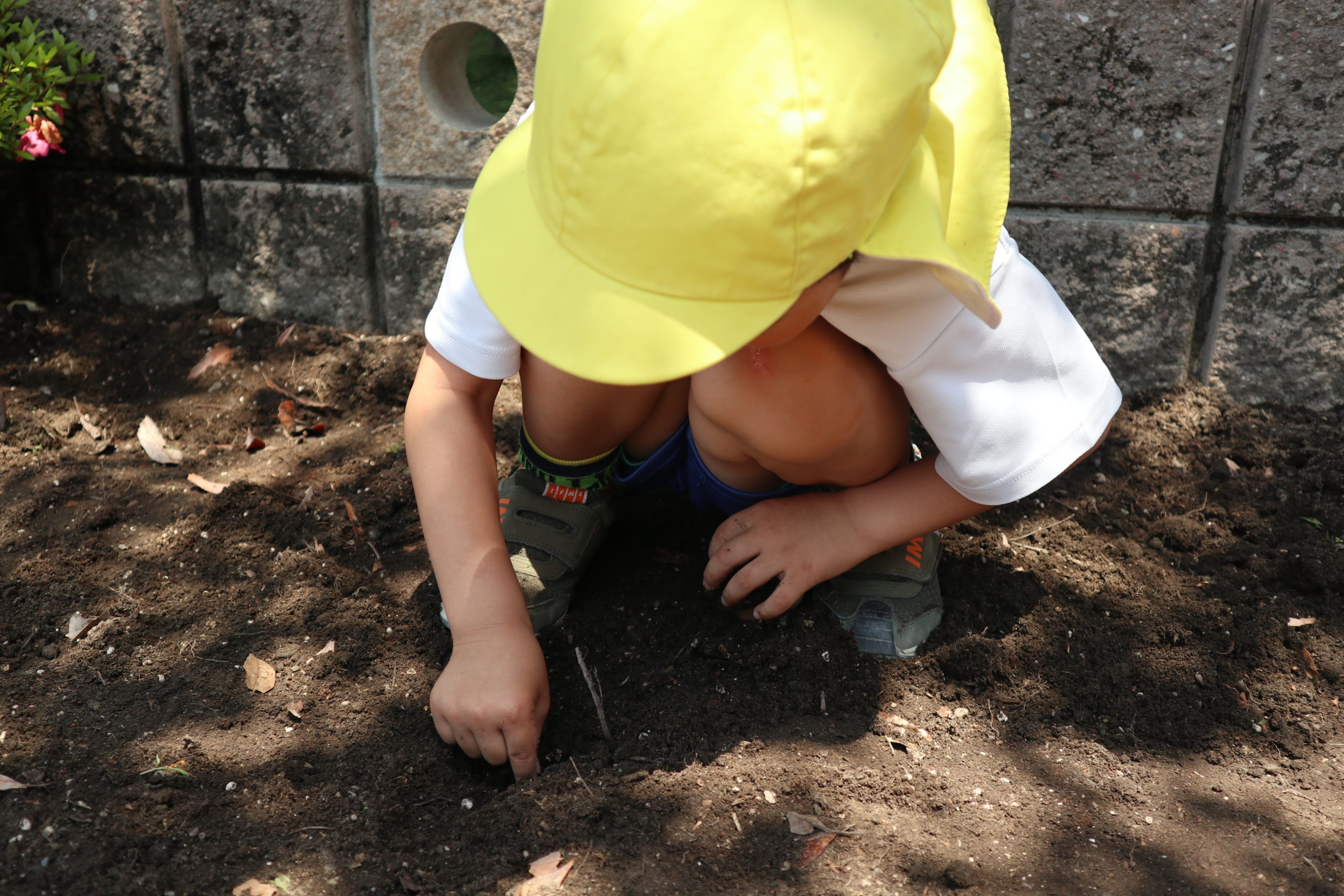 とっても楽しみです。種まきは年中組さんの当番です。