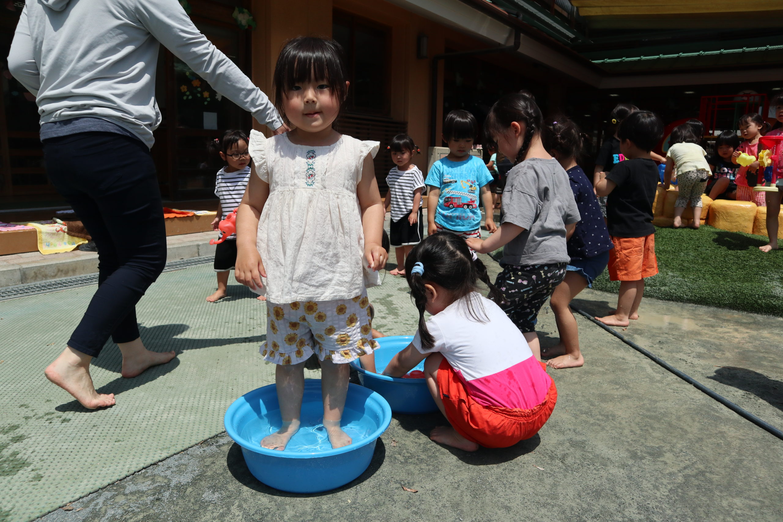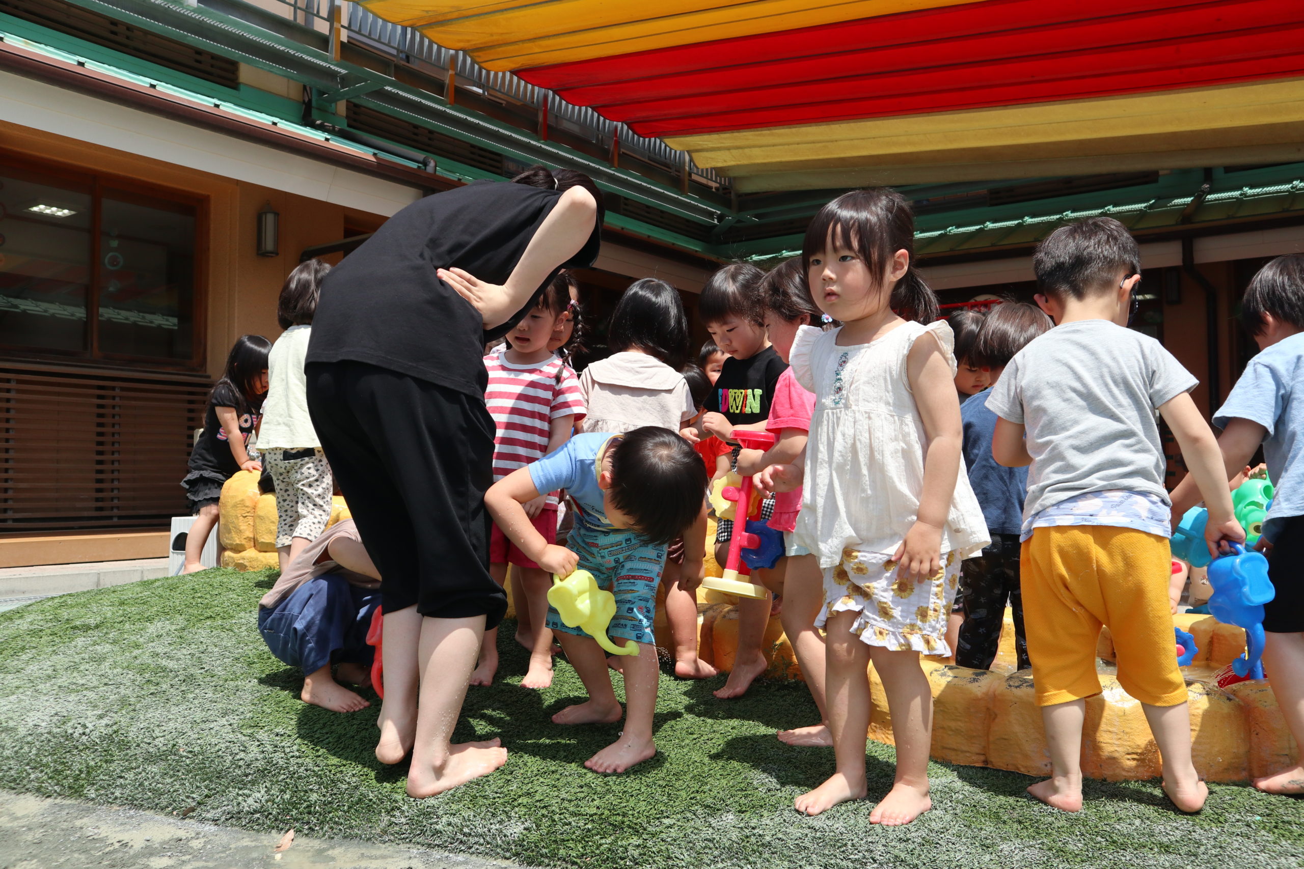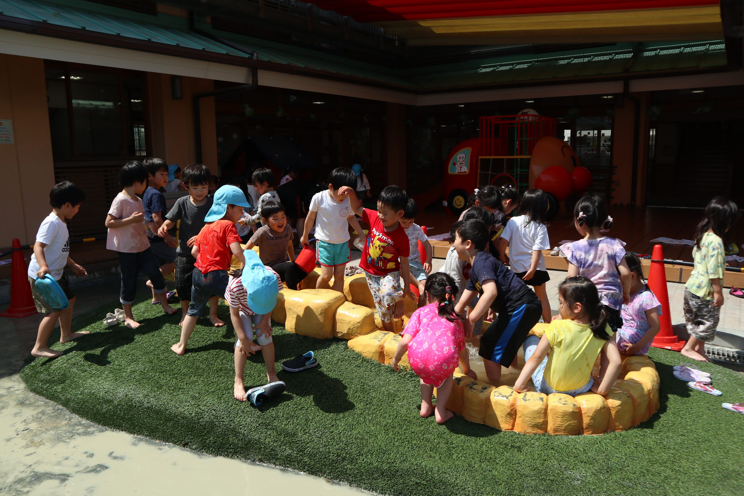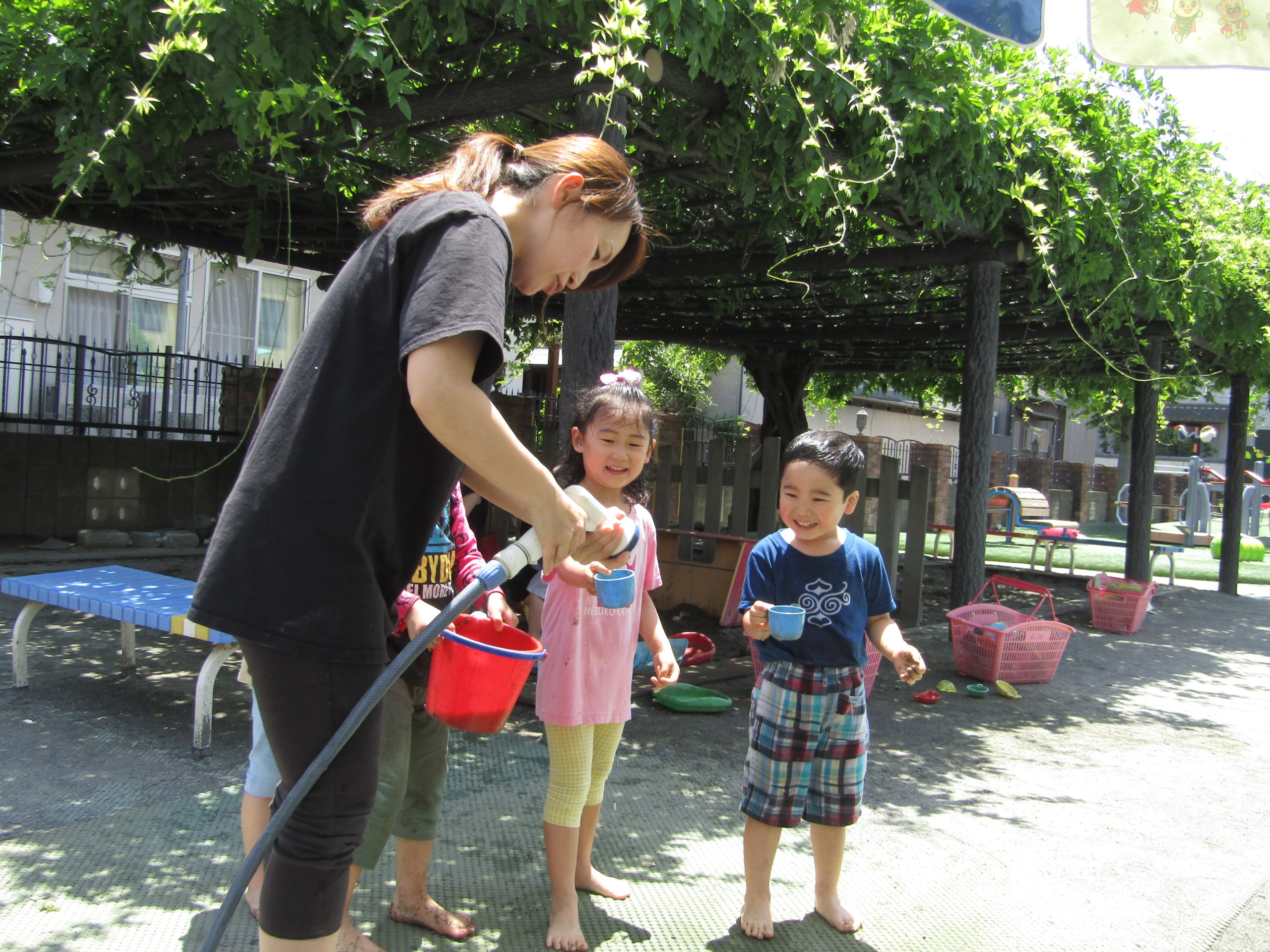 「きょうね、みずあそびするよ。」こどもたちが教えてくれました。