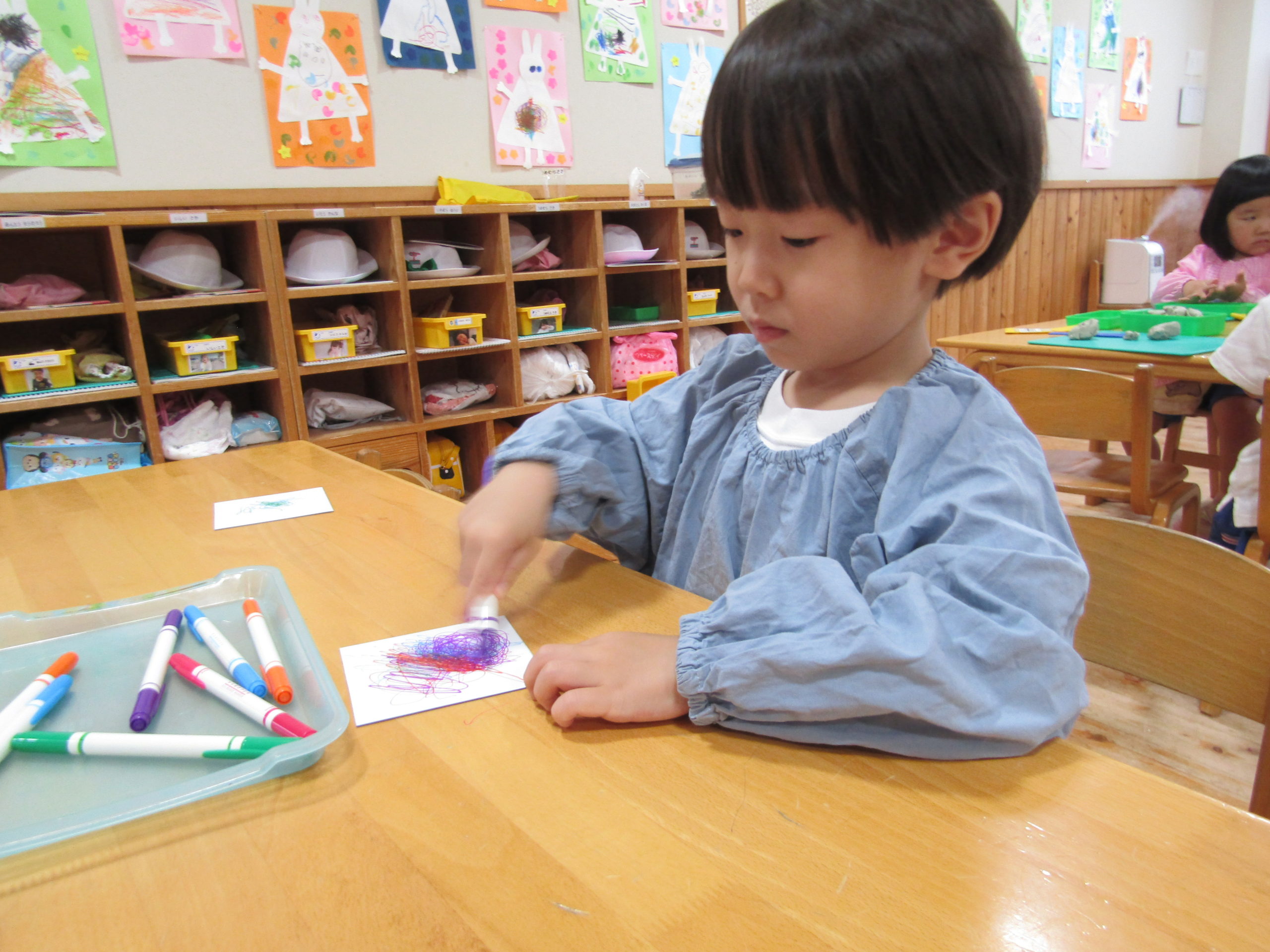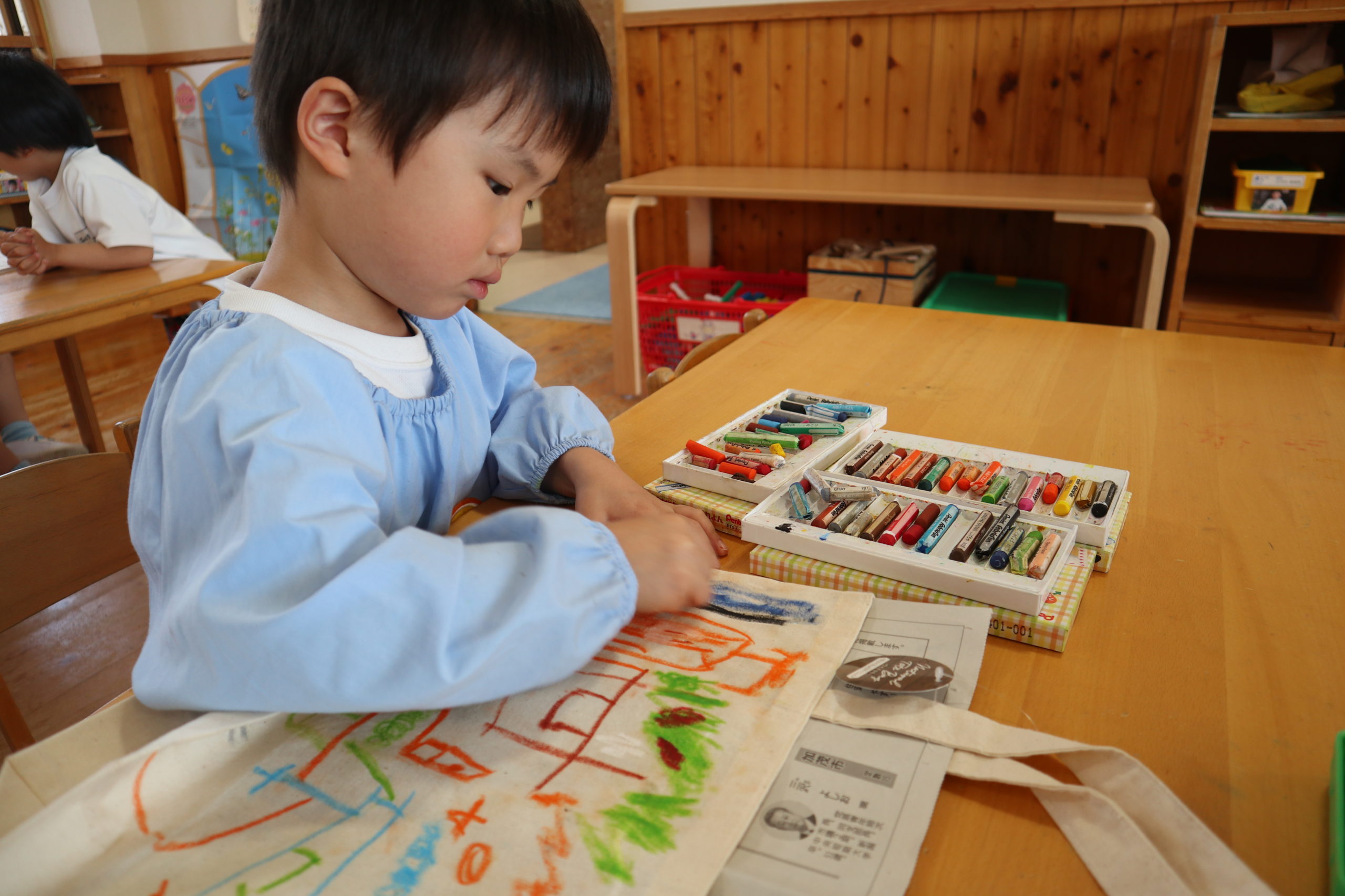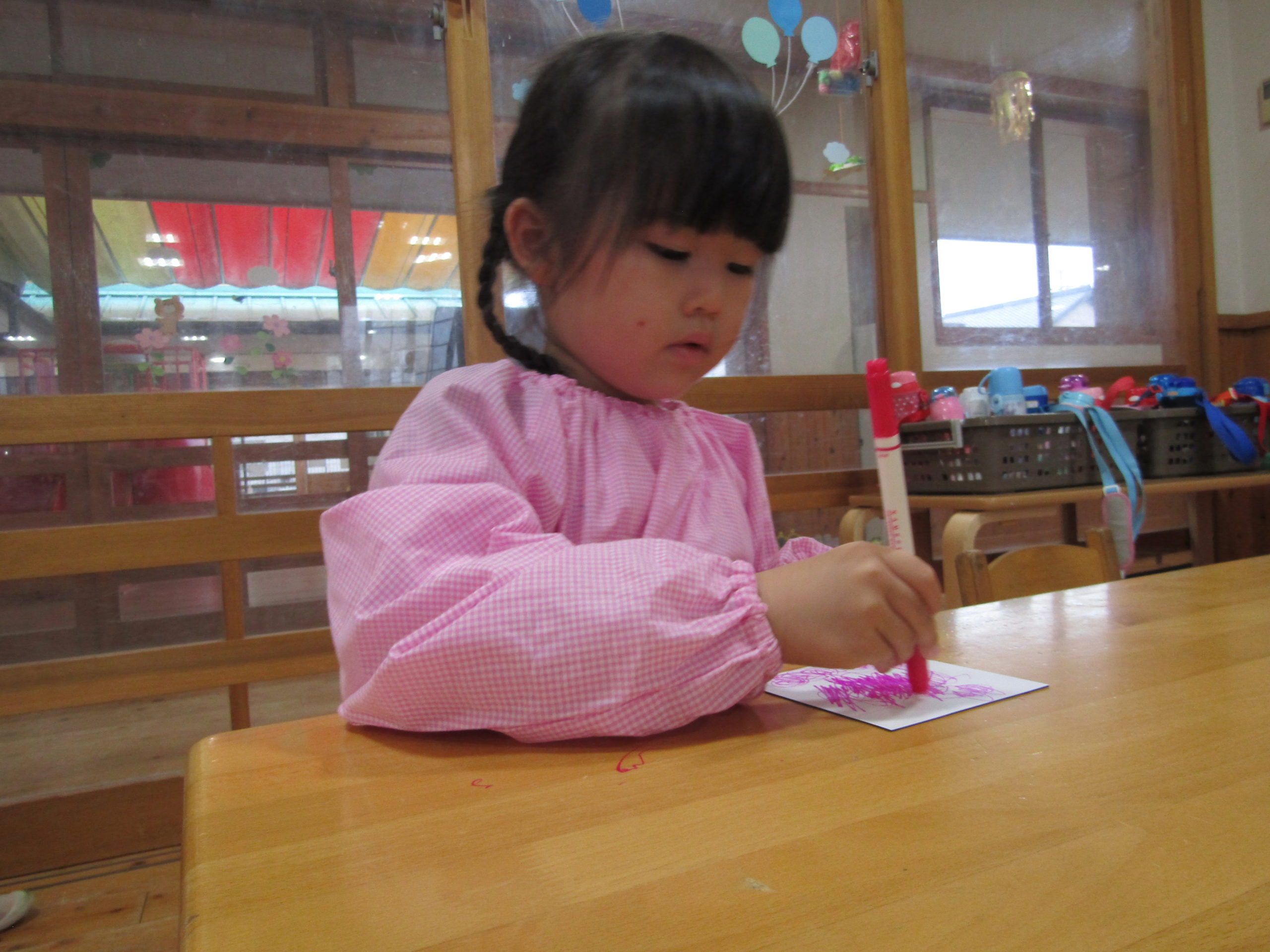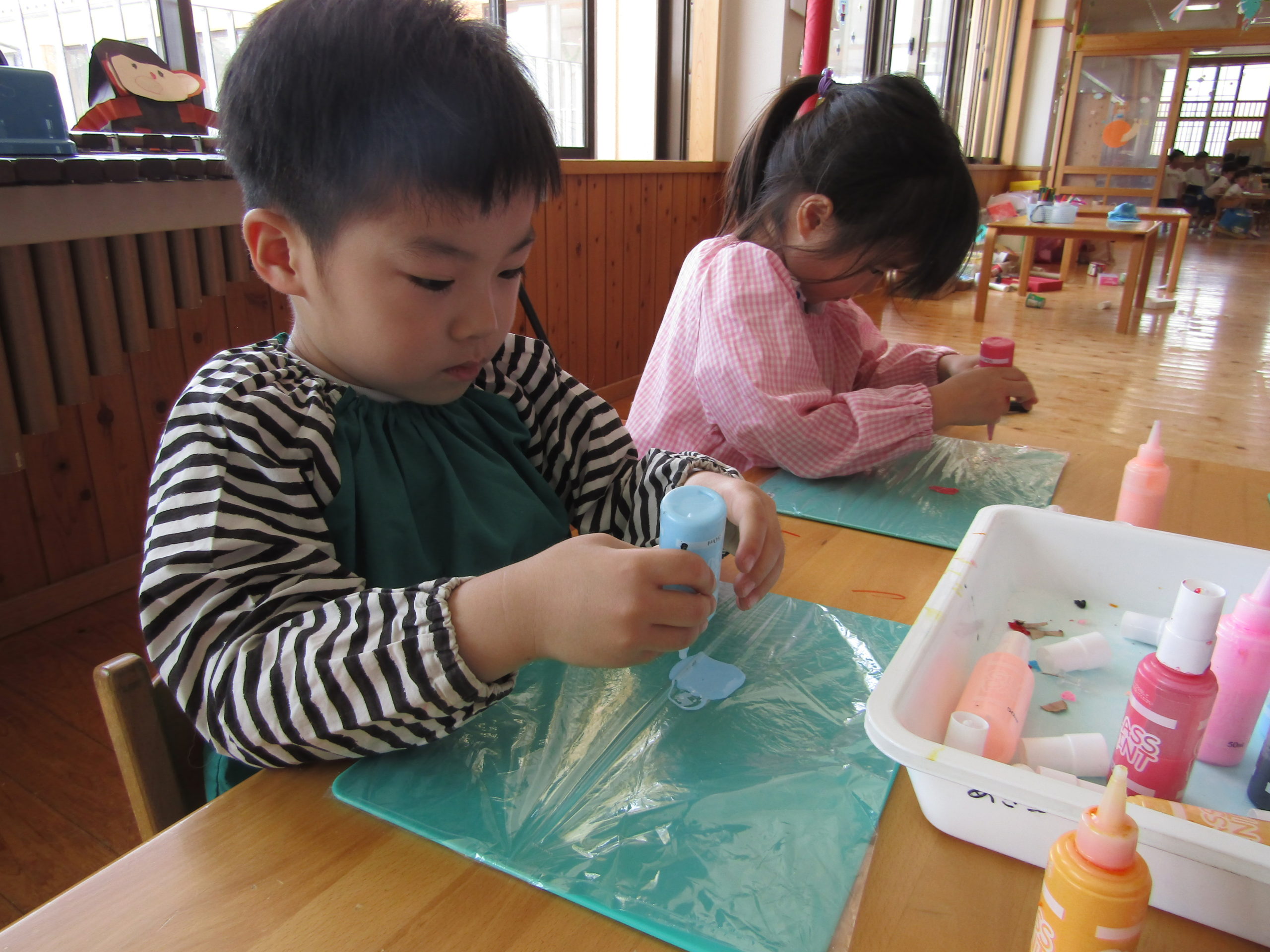 ファミリーデーのプレゼント作りです。なにができるのかな? 年少組