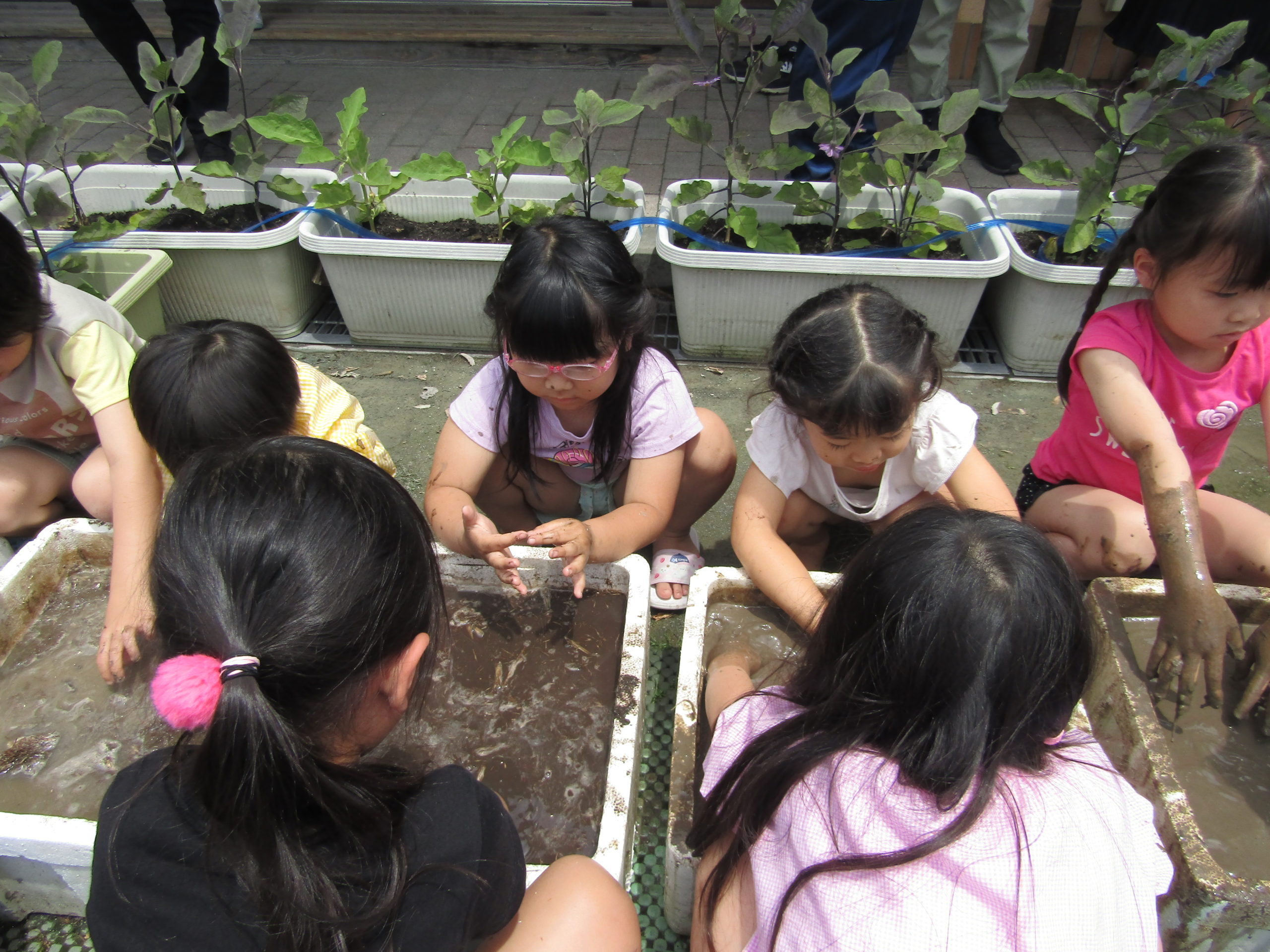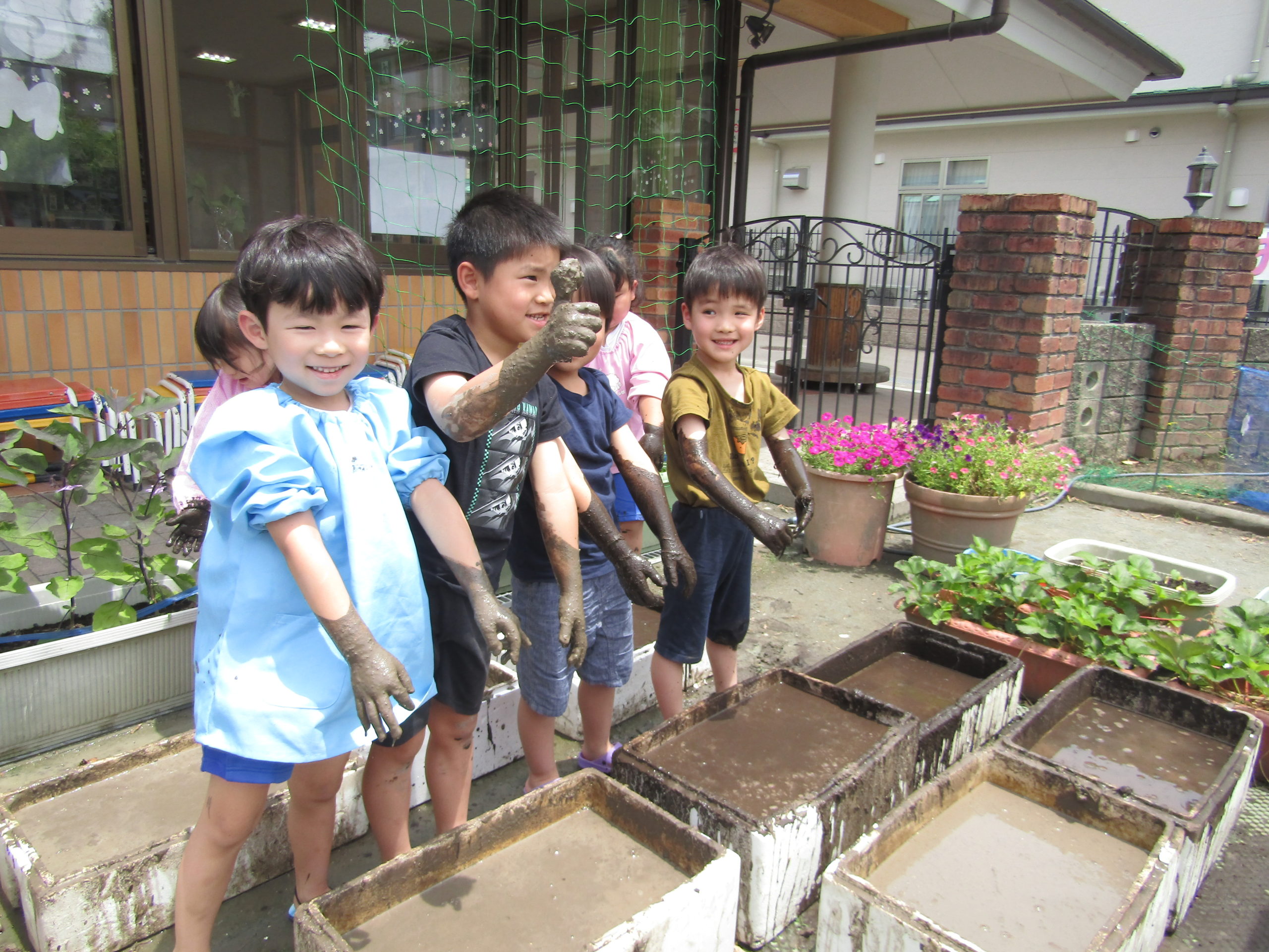 泥んこあそびで慣れたものです。