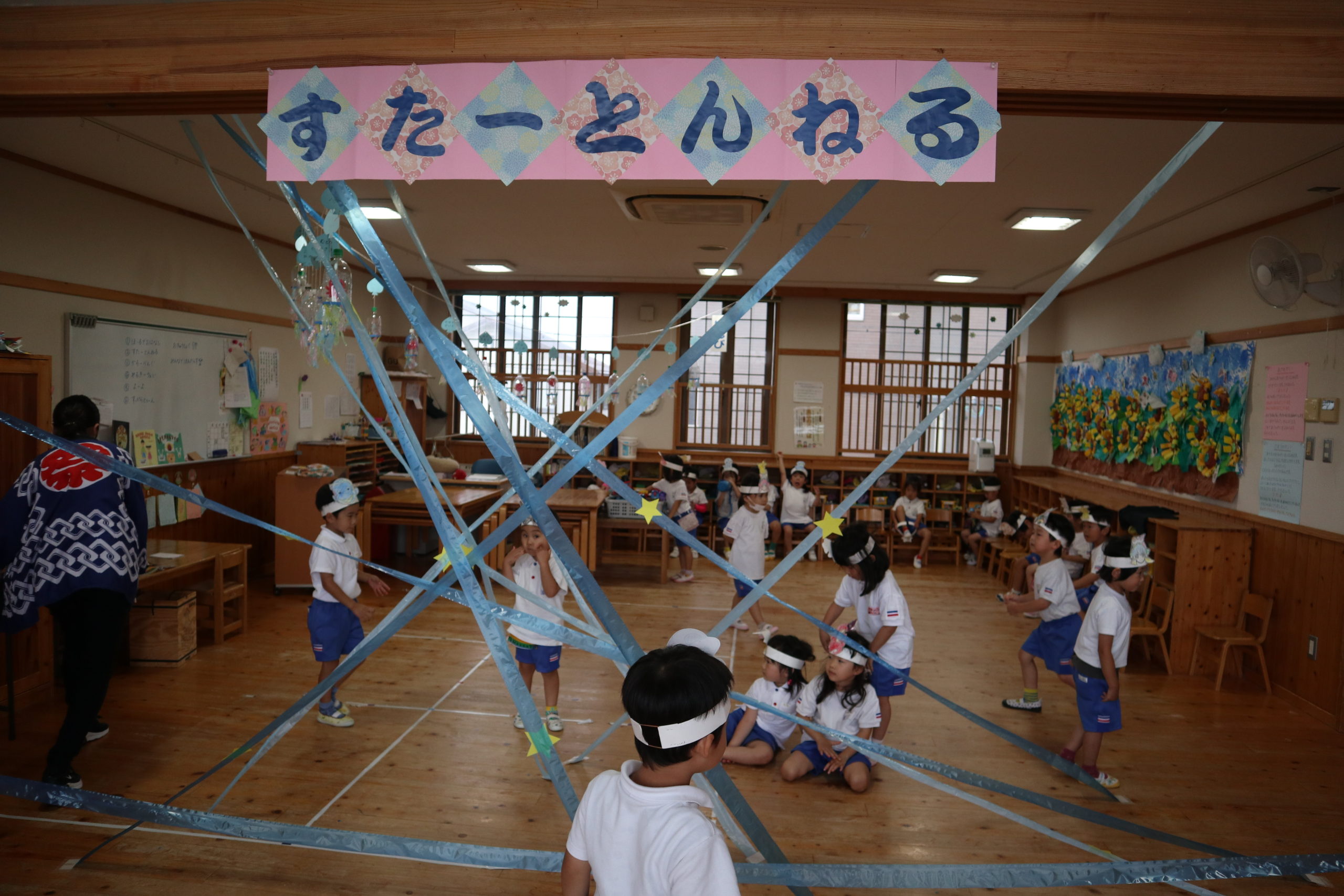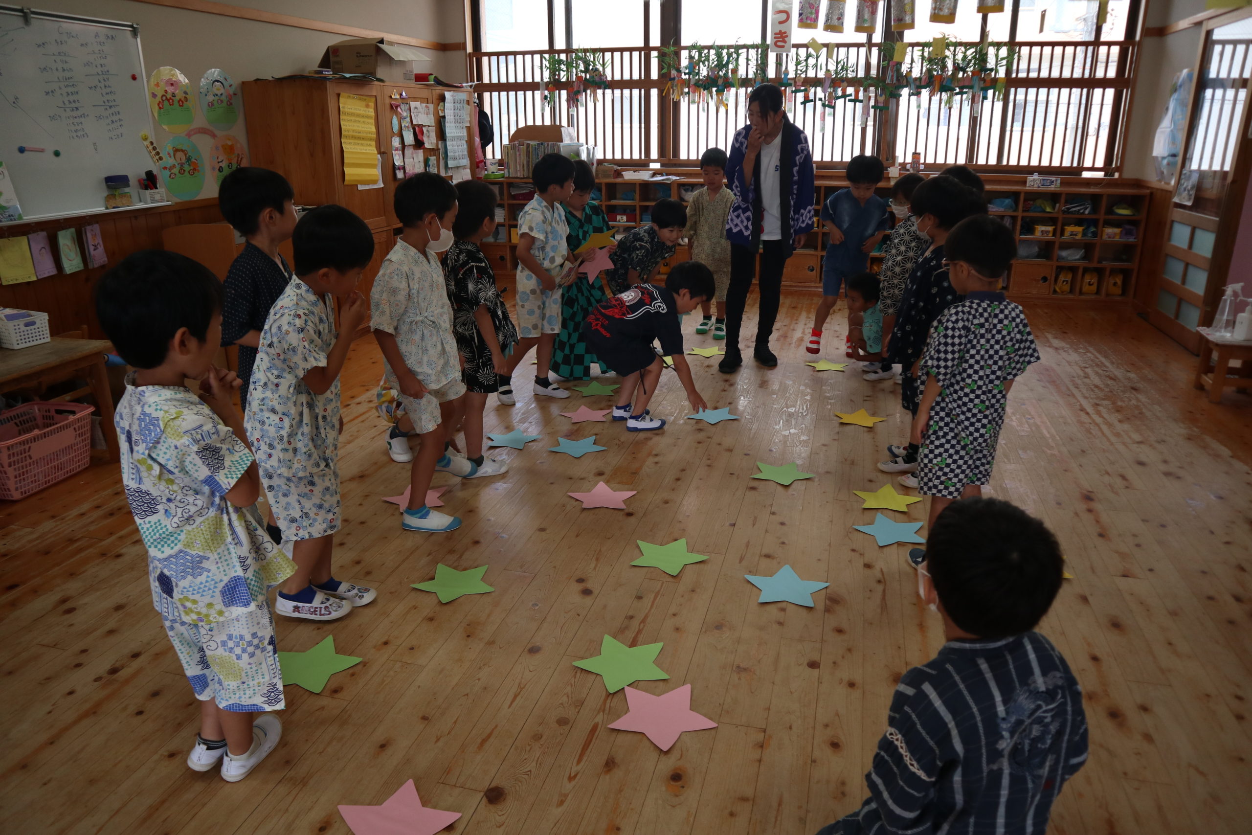 盆ダンスを踊ったり、ヨーヨー釣りをしたり、おまつりの屋台にあるような射的のげーむをしたり、冷たいキャンディーを食べたり、お星さまに例えたゲームで普段味わえない特別な日を過ごしました。