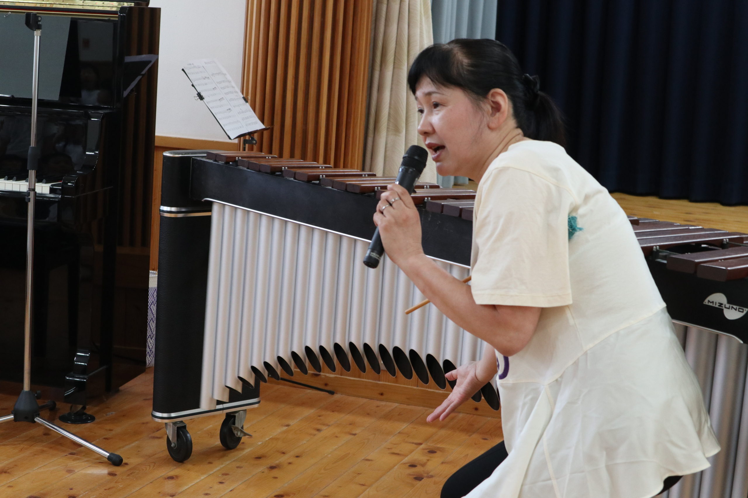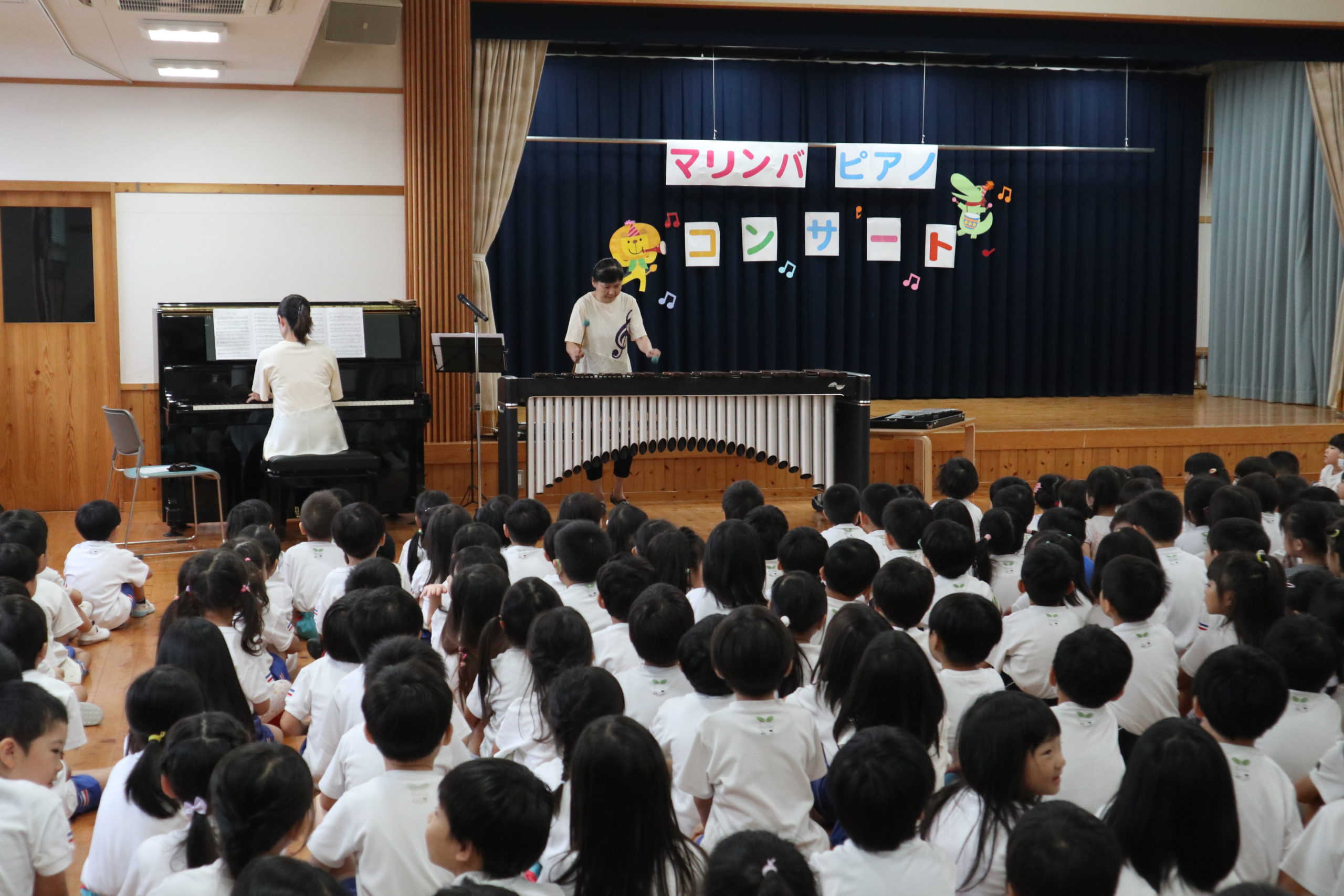 そのお二人が一学期を頑張って過ごしたみなさんに、今日の日のために、わざわざ白井先生ご自身のマリンバを運んでいただき、「ライブハウス23☆リンドンベル」のコンサートを開いてくださいました。