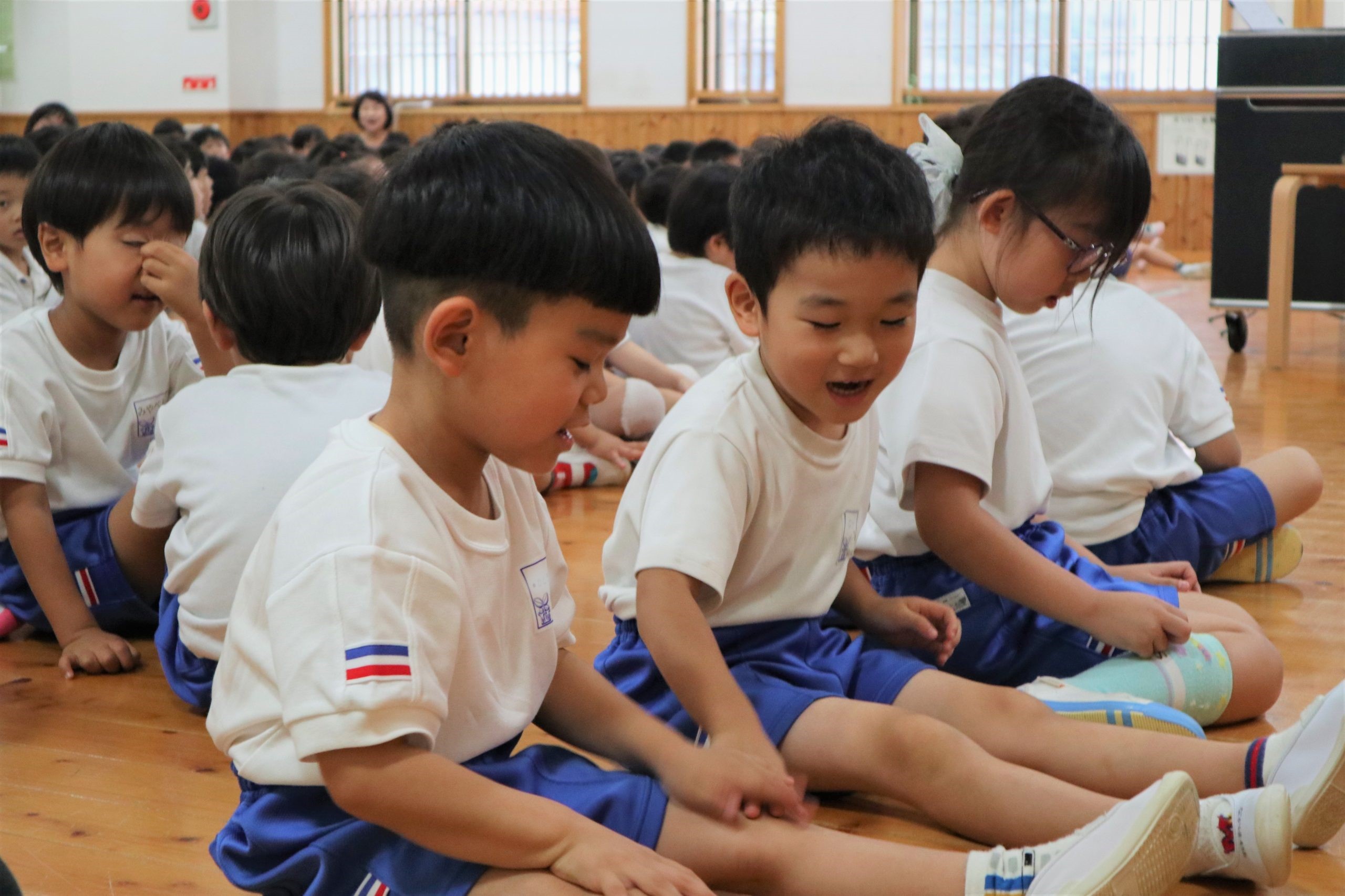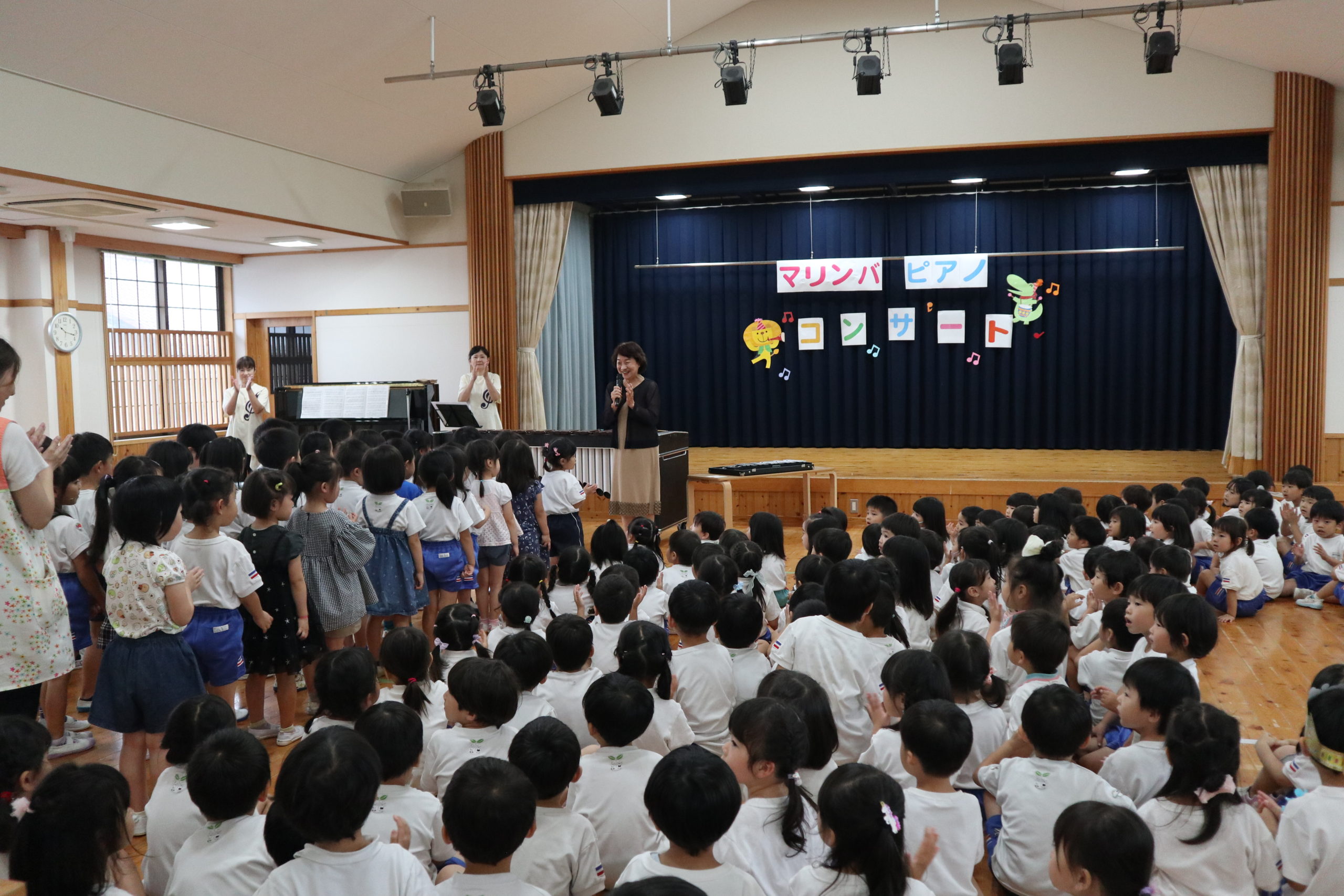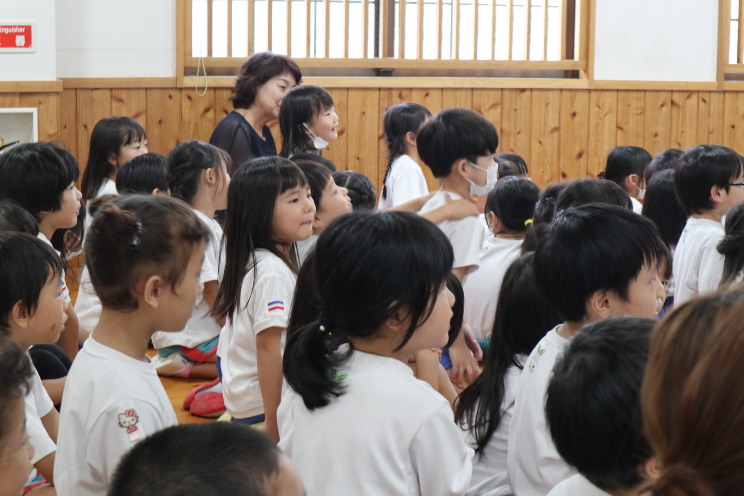 今回は、幼稚園のちゅうりっぷ組から年長組のみなさん、わかば保育園の年長組と年中組のみなさん、み~んなが聴かせていただきました。