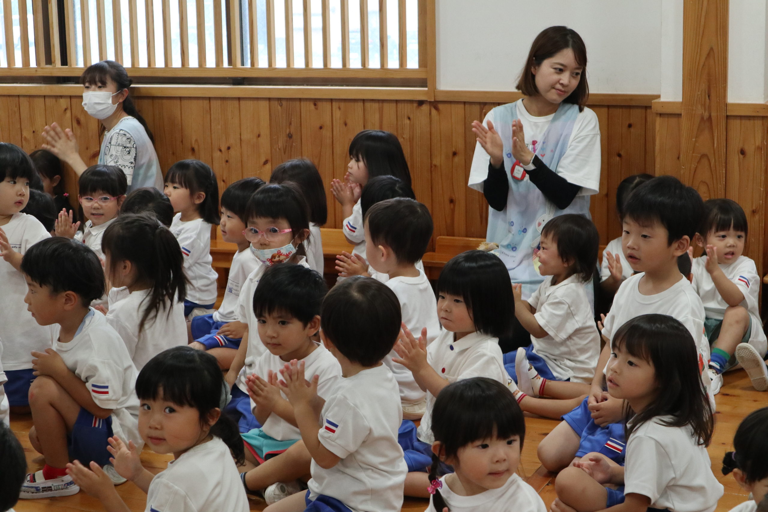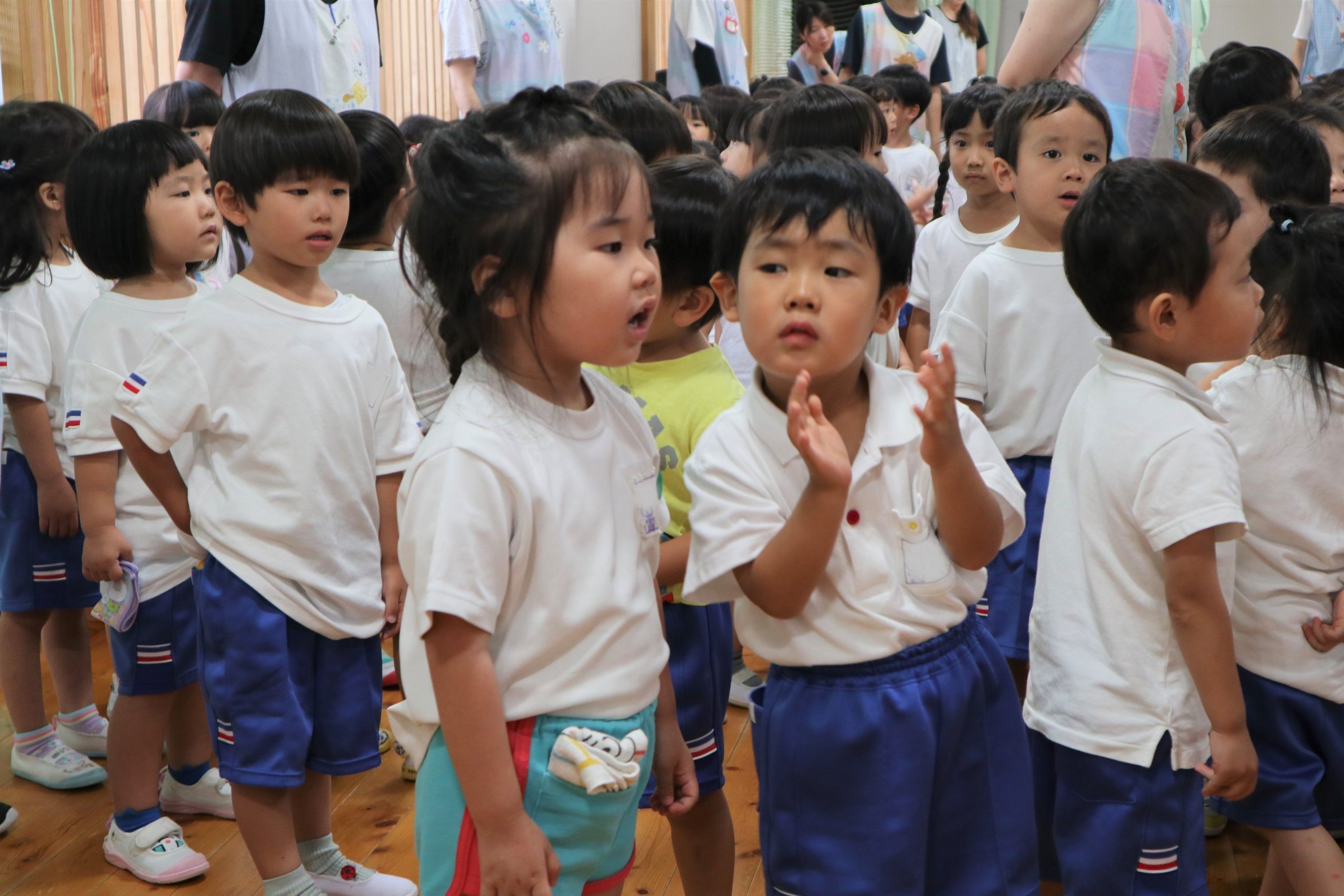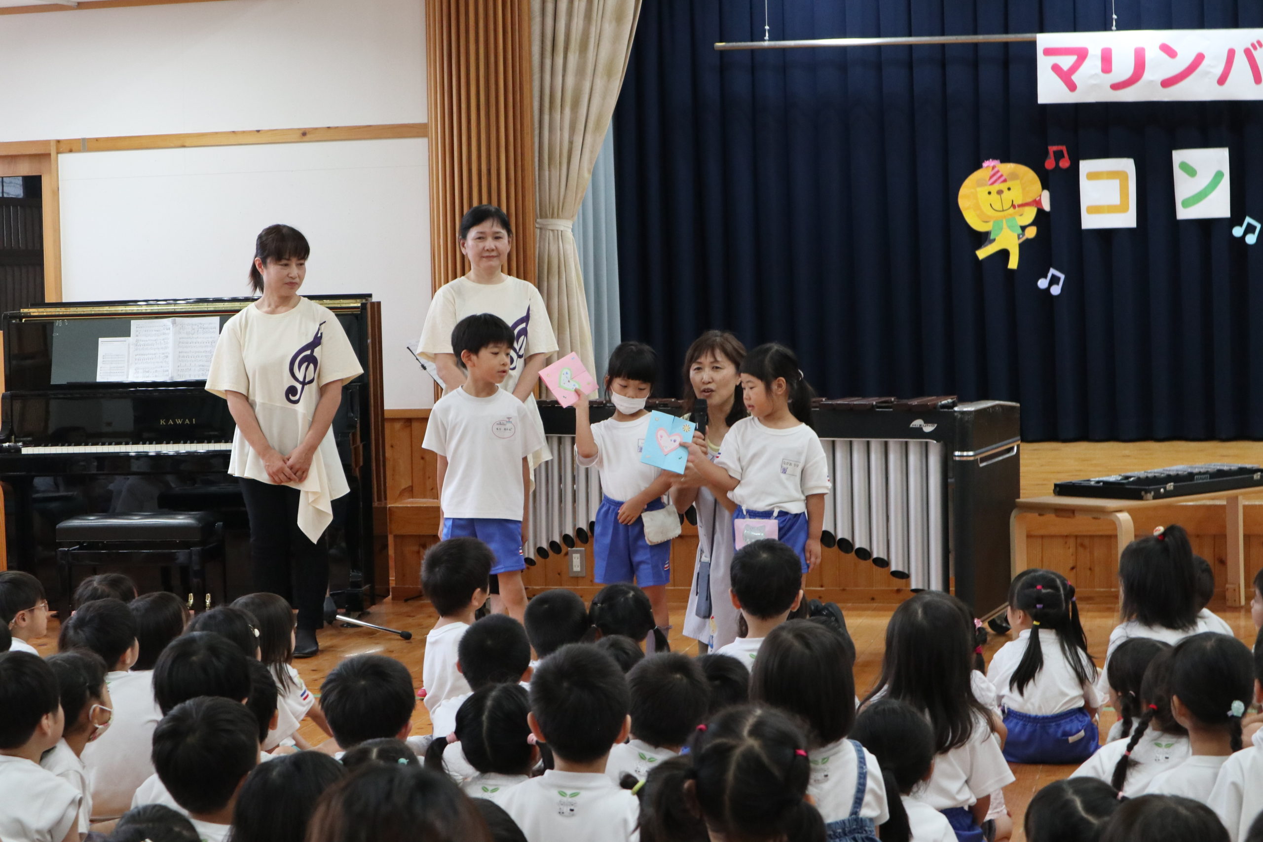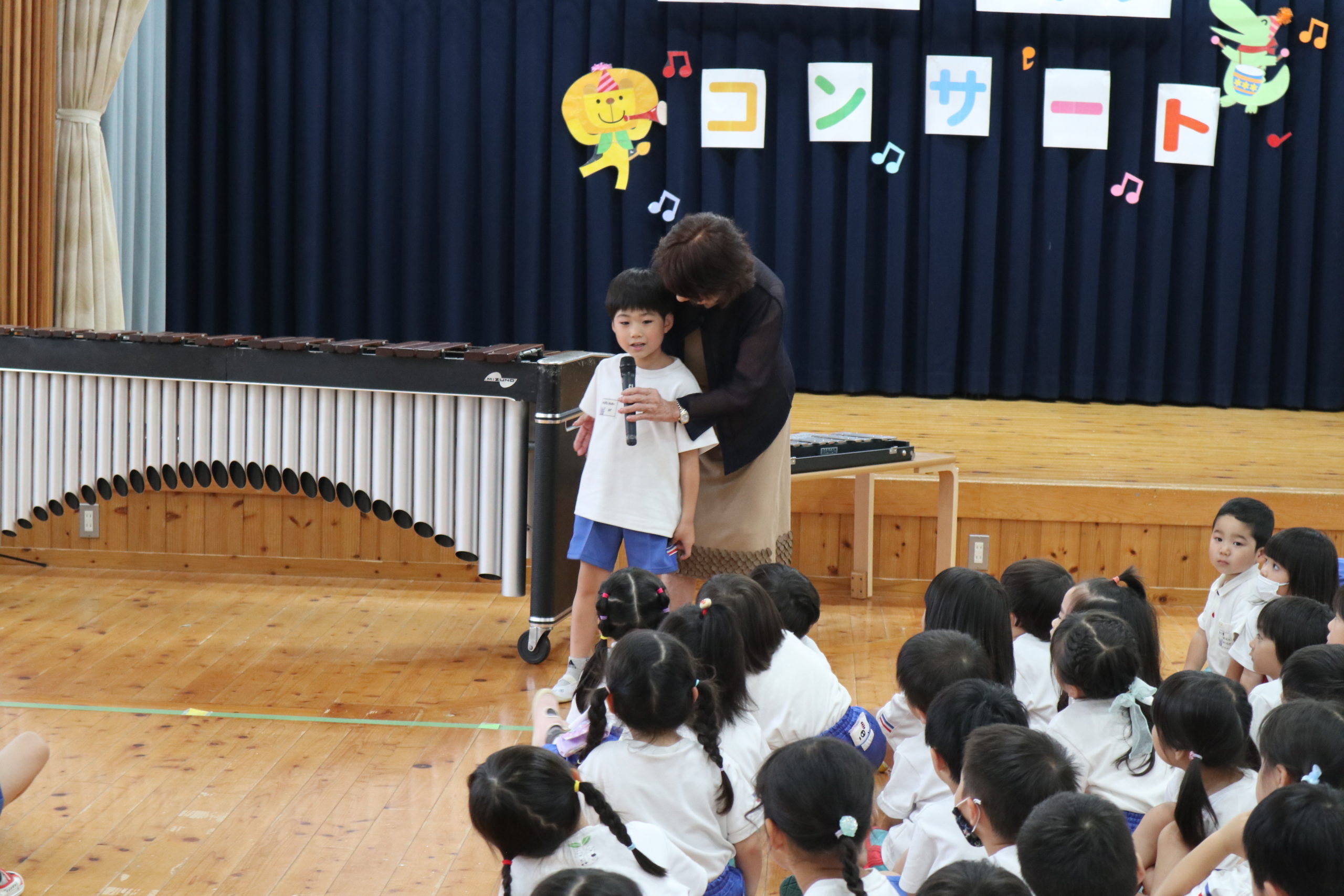 今回は、幼稚園のちゅうりっぷ組から年長組のみなさん、わかば保育園の年長組と年中組のみなさん、み~んなが聴かせていただきました。